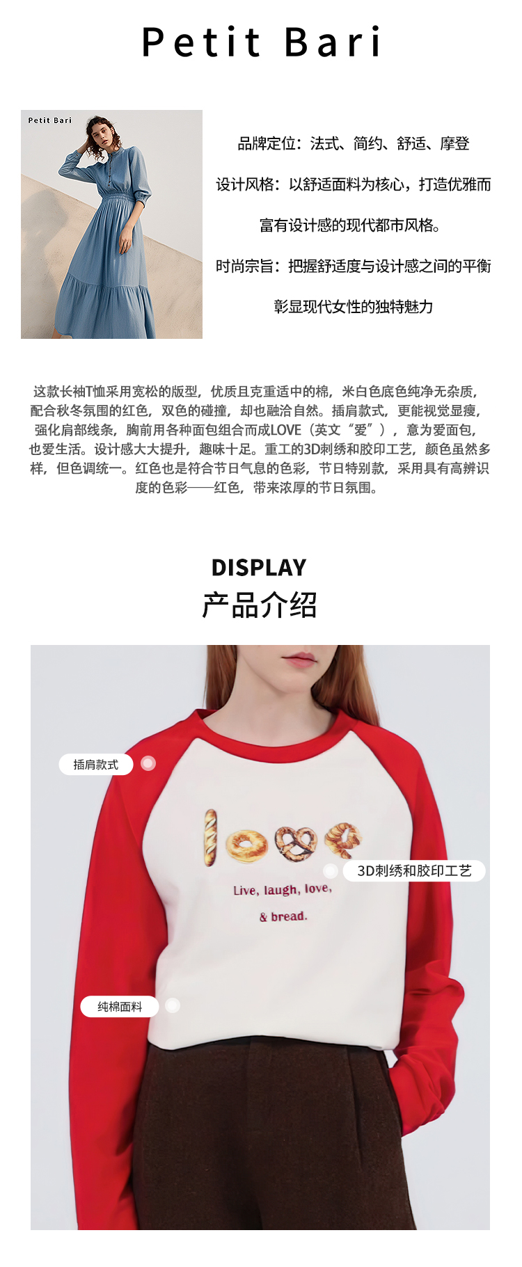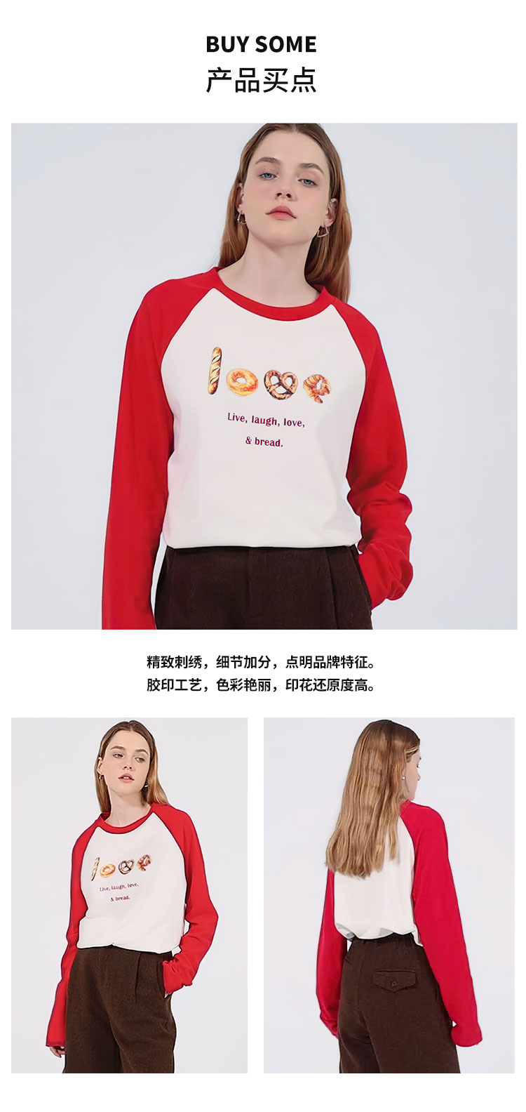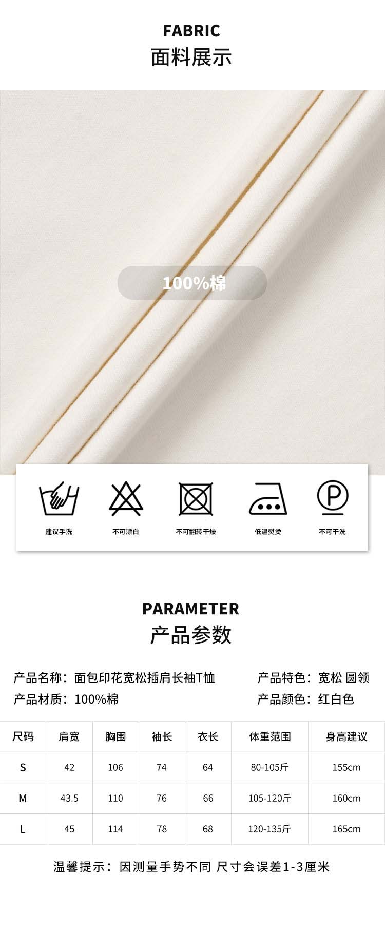 【2件9折】【Petit Bari】面包印花宽松插肩长袖T恤休闲