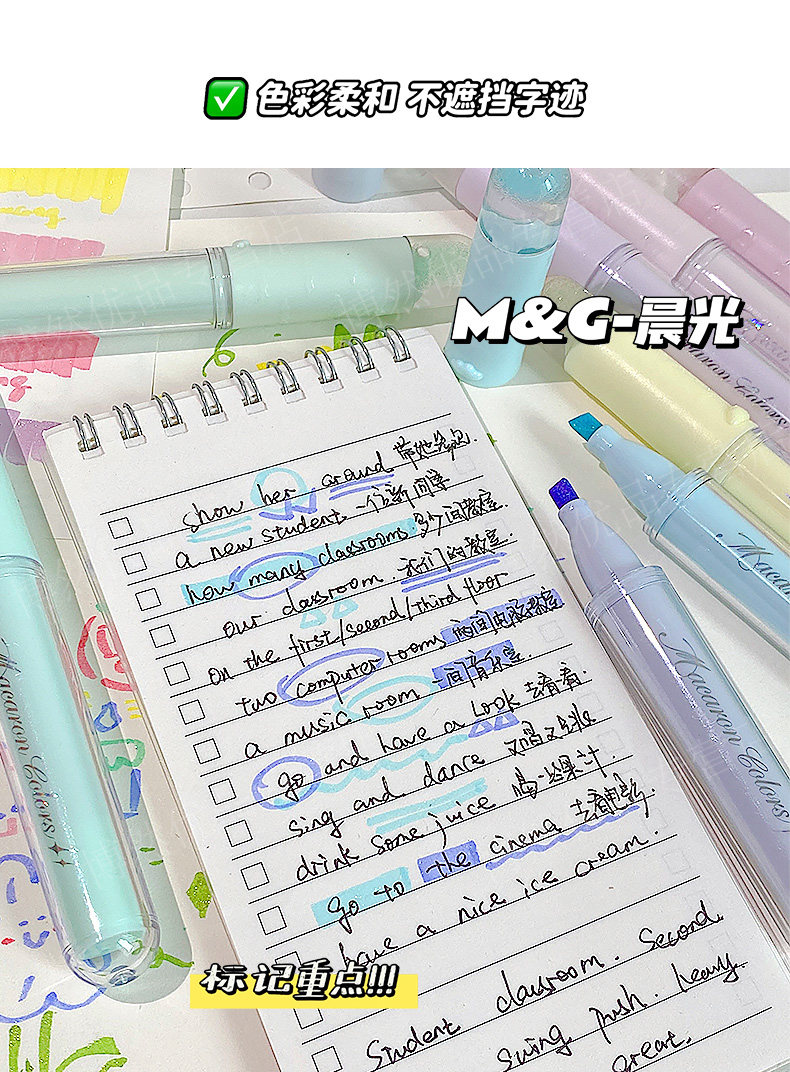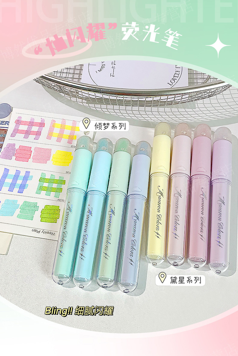 晨光闪耀标记笔单斜头香氛细闪绘画美术流沙顶中小学生儿童手账笔记记号笔手账(颜色自选)