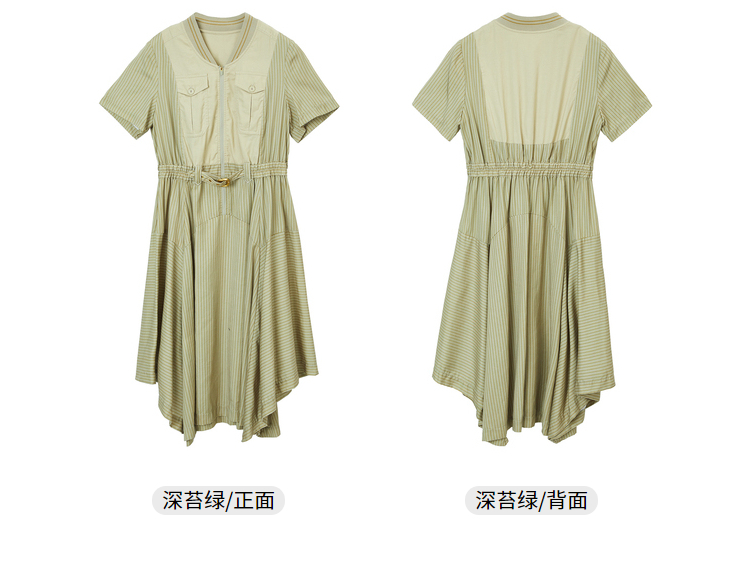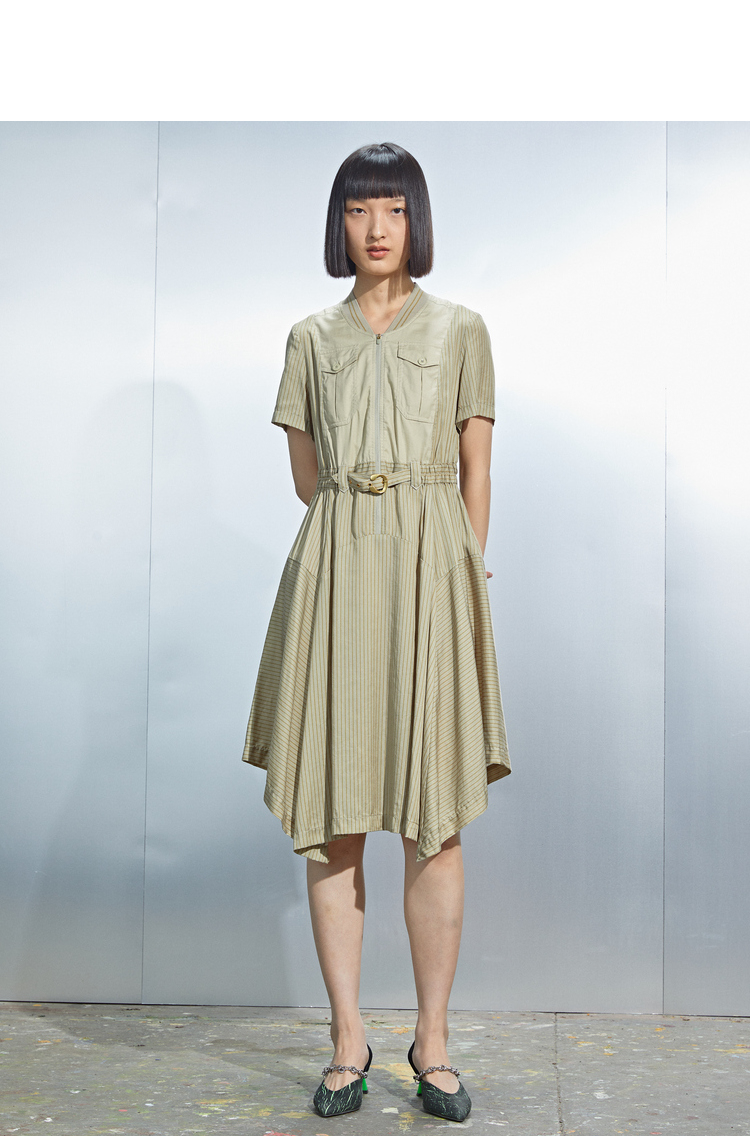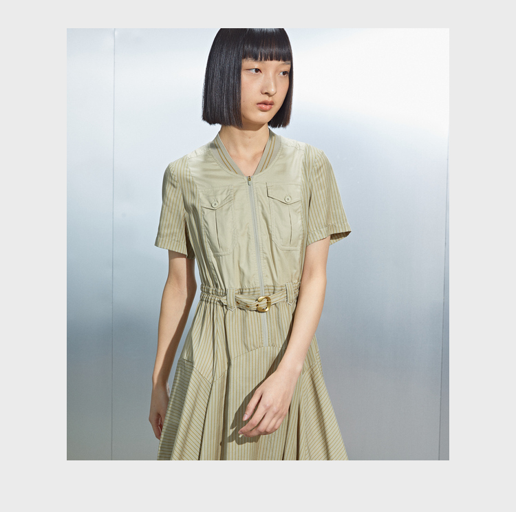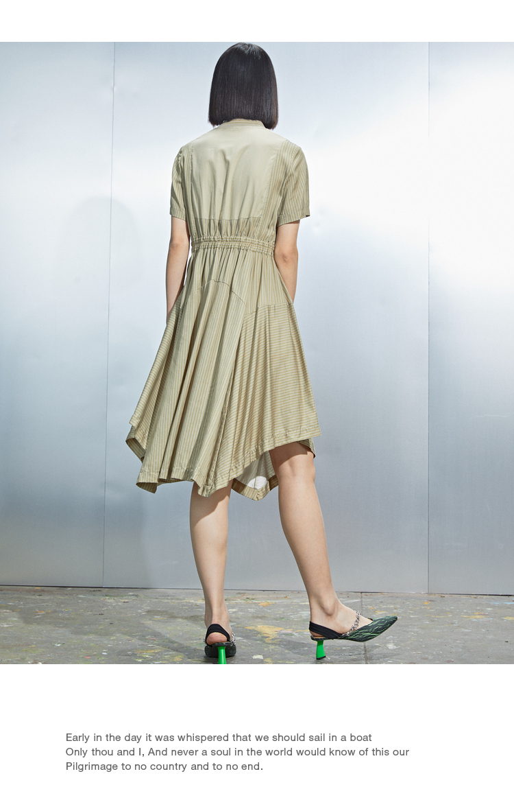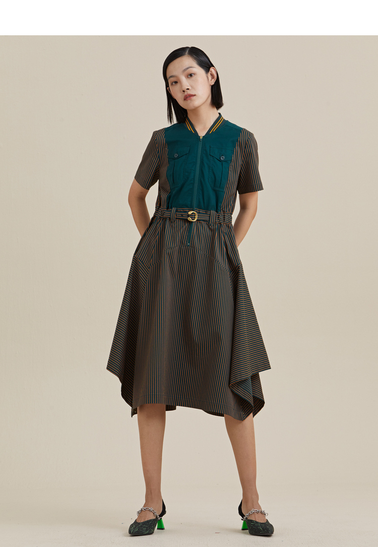 MIIDII/谜底连衣裙21夏新品复古棒球领收腰不规则下摆212ML0859