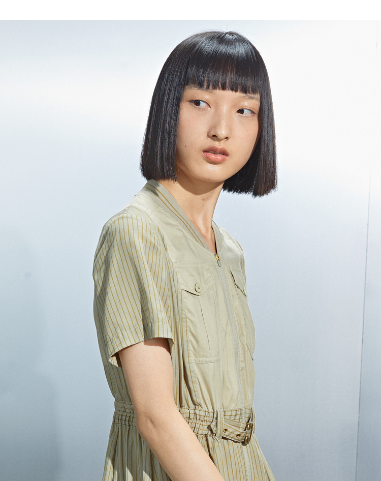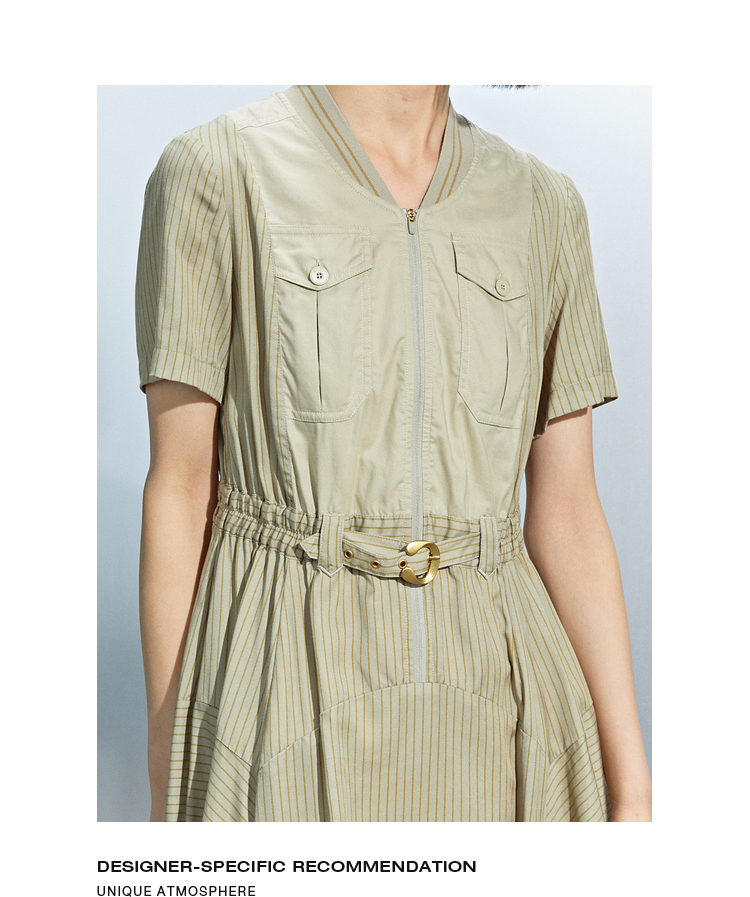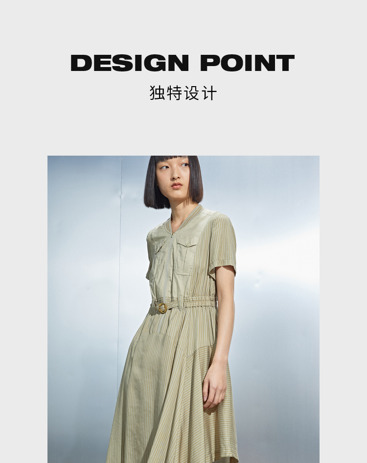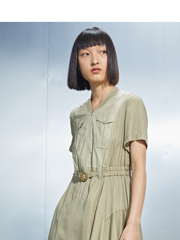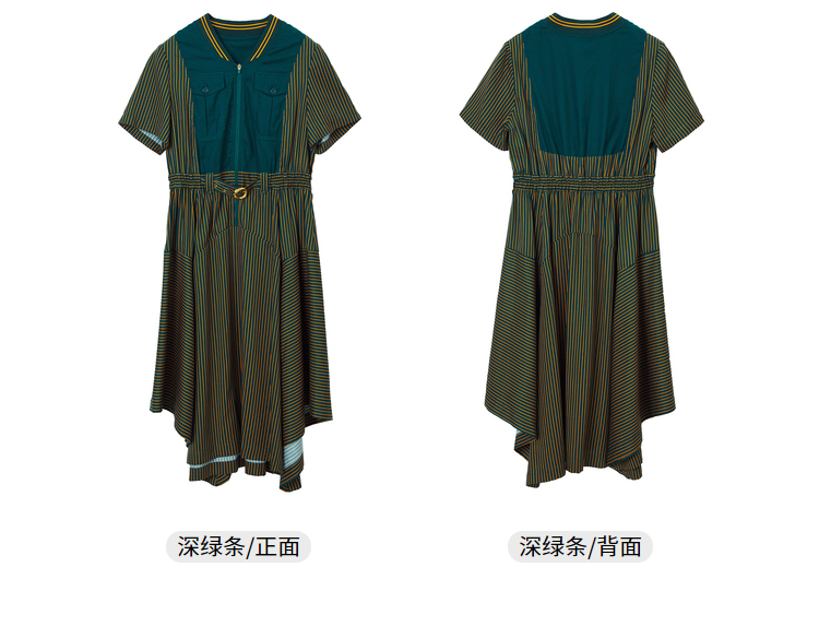 MIIDII/谜底连衣裙21夏新品复古棒球领收腰不规则下摆212ML0859