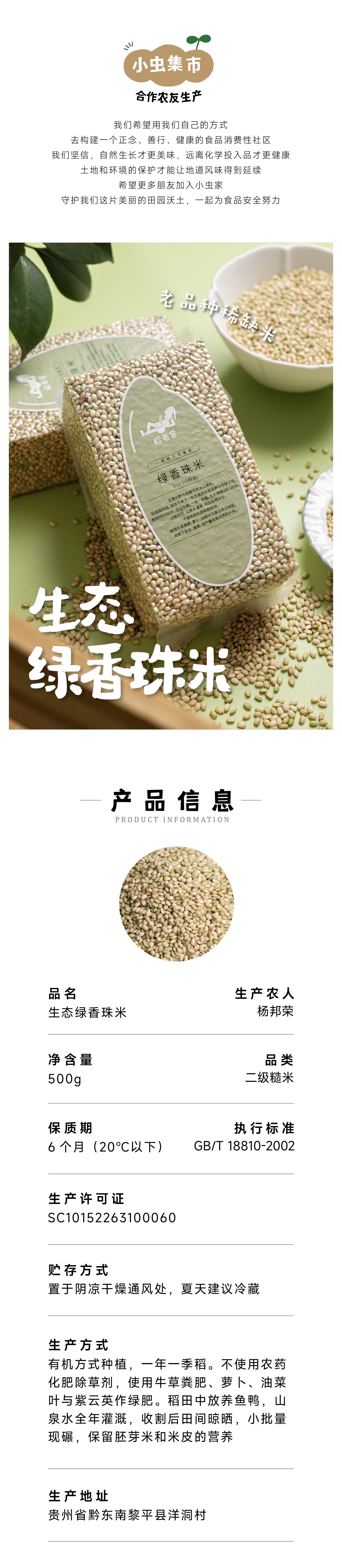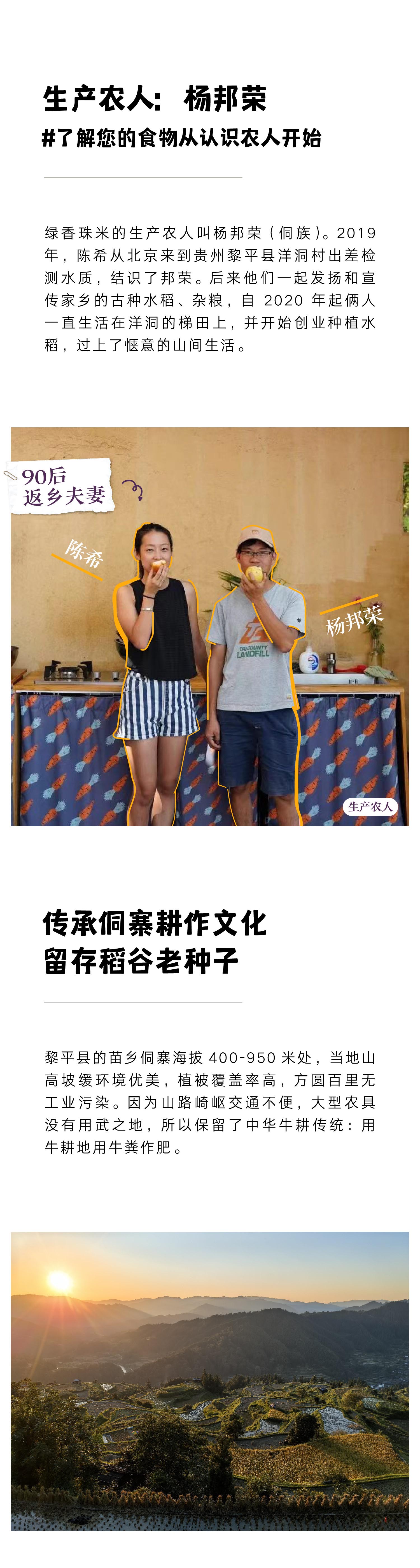 【2025年秋收新米】生态绿香珠米 500g/袋 | 合作农友生产,来自贵州黎平洋洞村,生产者:杨邦荣 &【公平贸易农人定价】