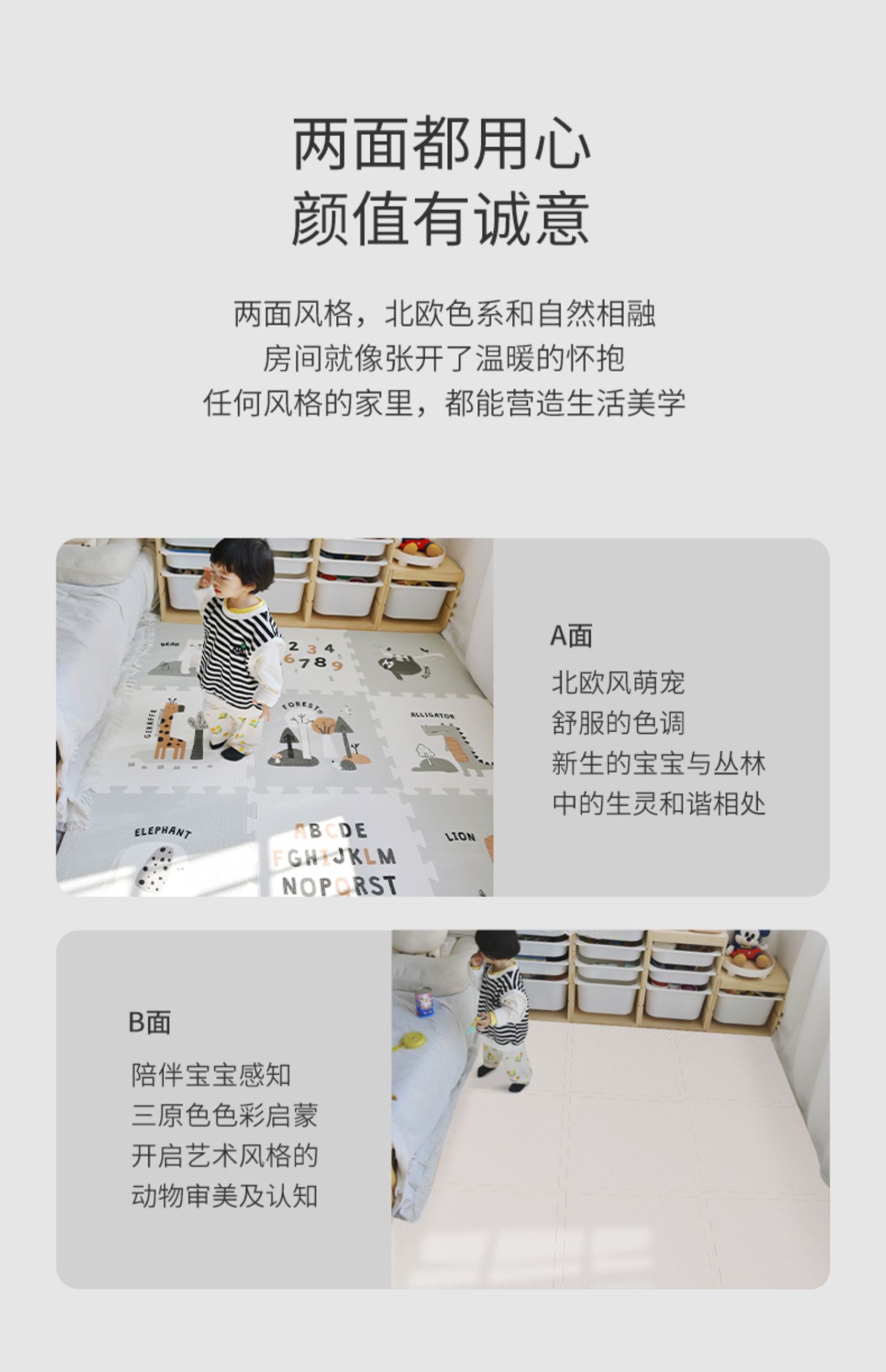 【社群瑕疵秒杀】贝易拼接爬行垫 双面XPE宝宝爬爬垫(存在划痕 脏污 压痕 破洞 缺边条 有误差 色差等 完美主义慎拍,瑕疵商品不退不换~)(仓库发不了会退款,介意勿拍,不同款式不能拼接到一起)