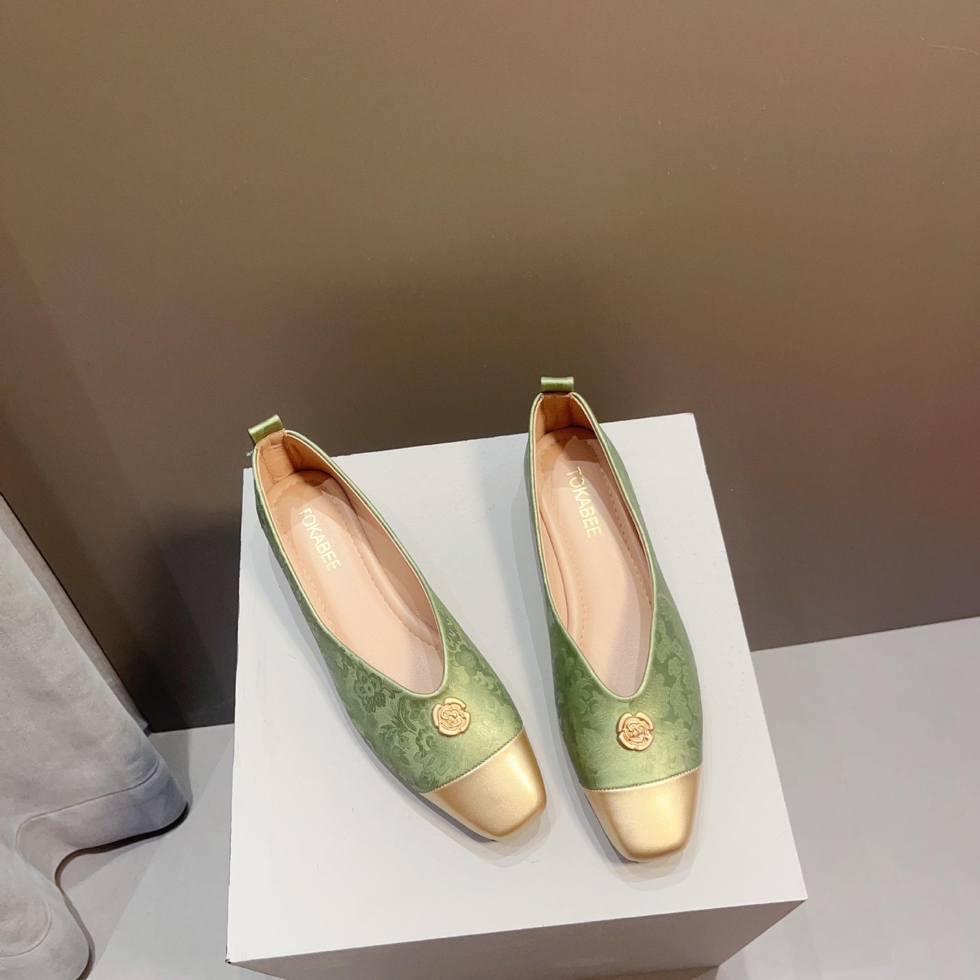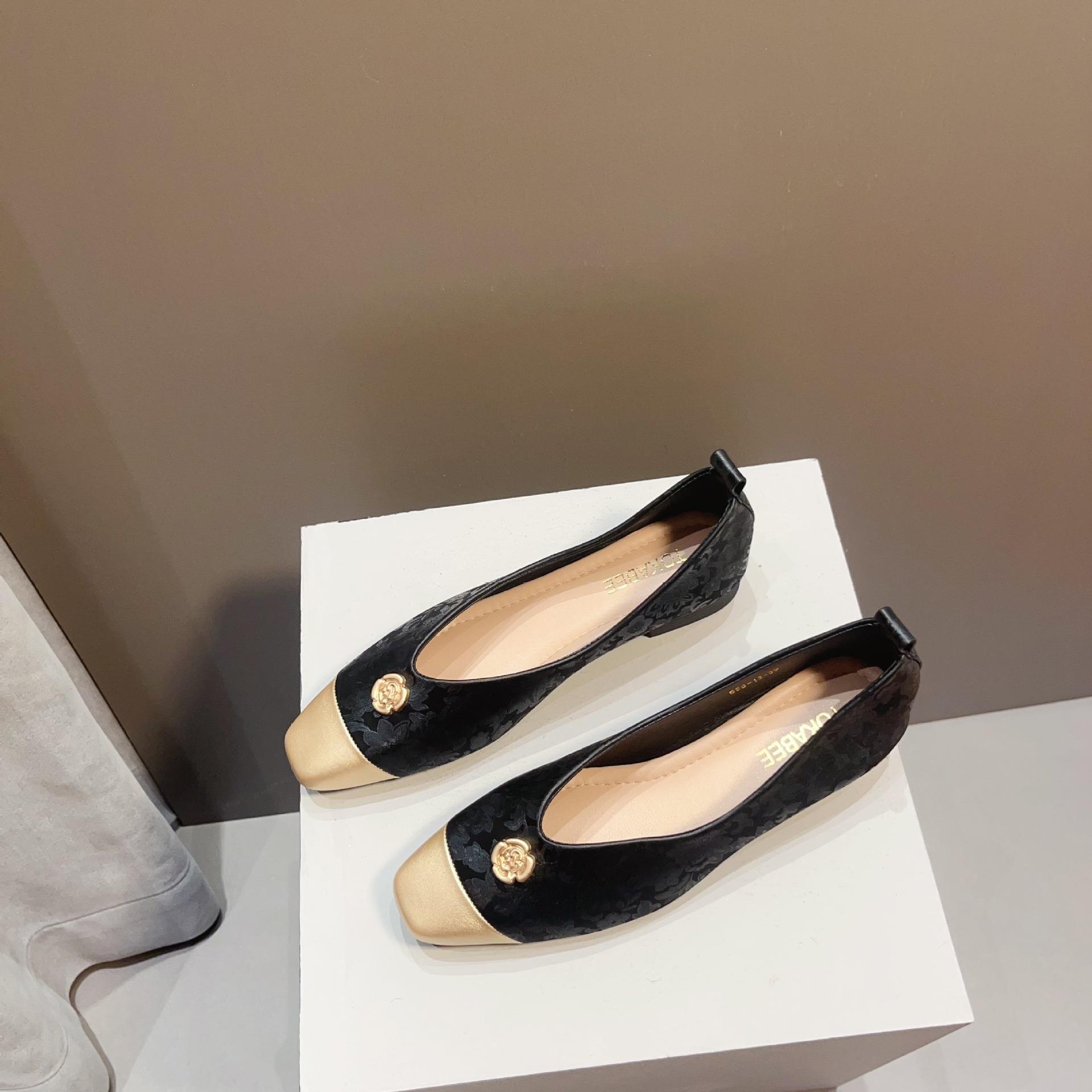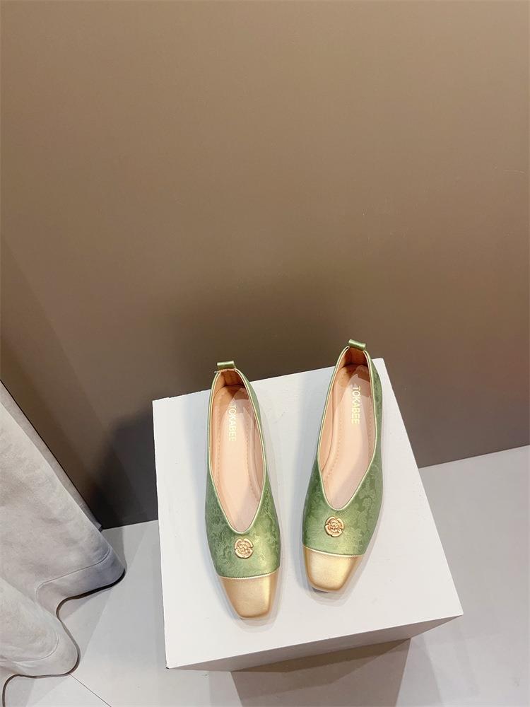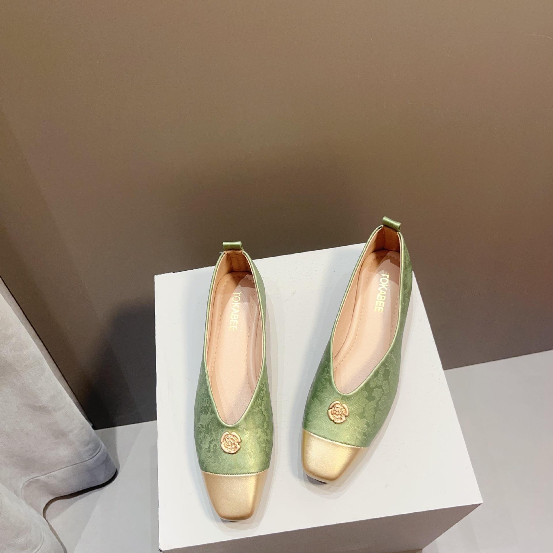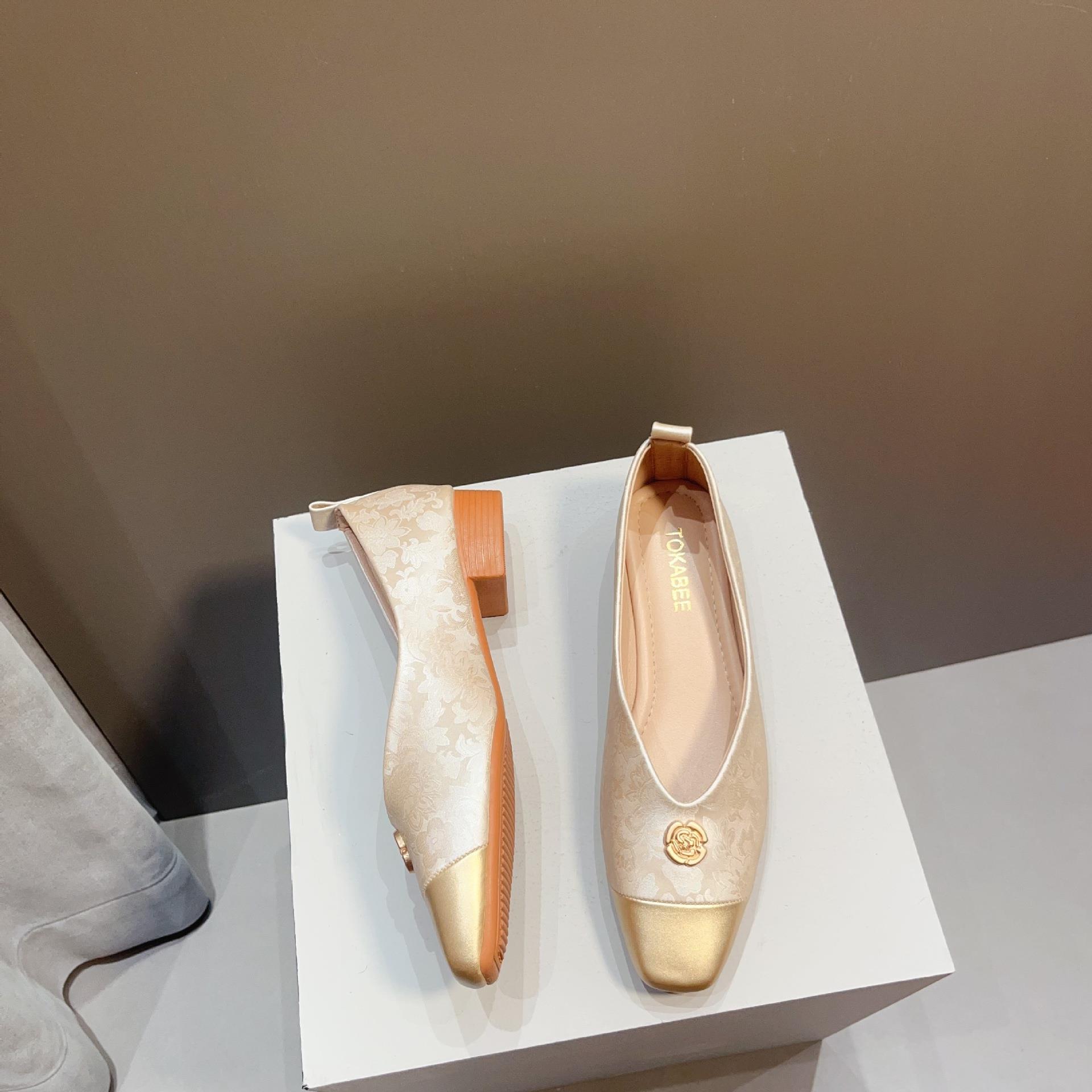 【高定年代】秋季新款新中式鞋子女浅口软底豆豆鞋低跟时尚方头拼接单鞋