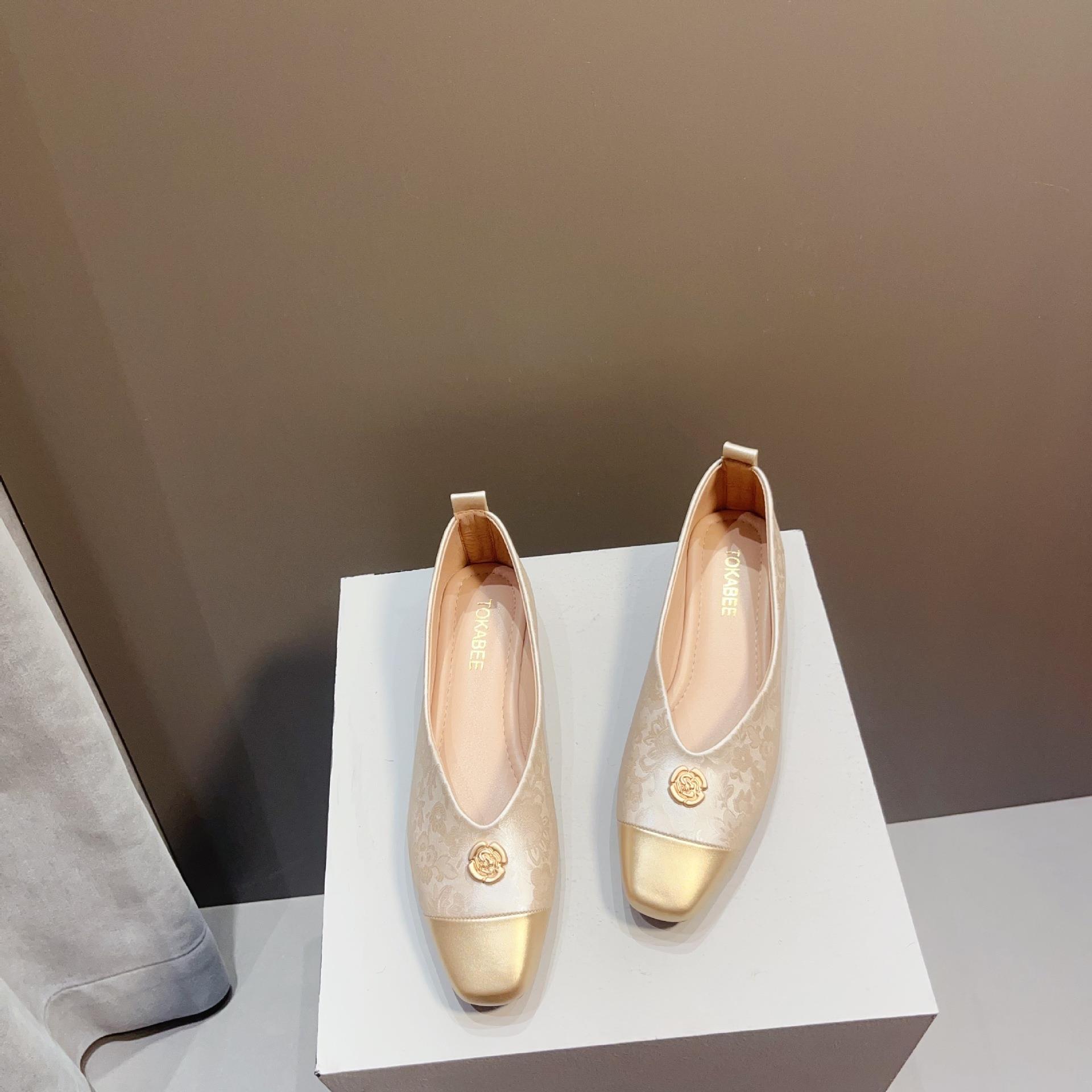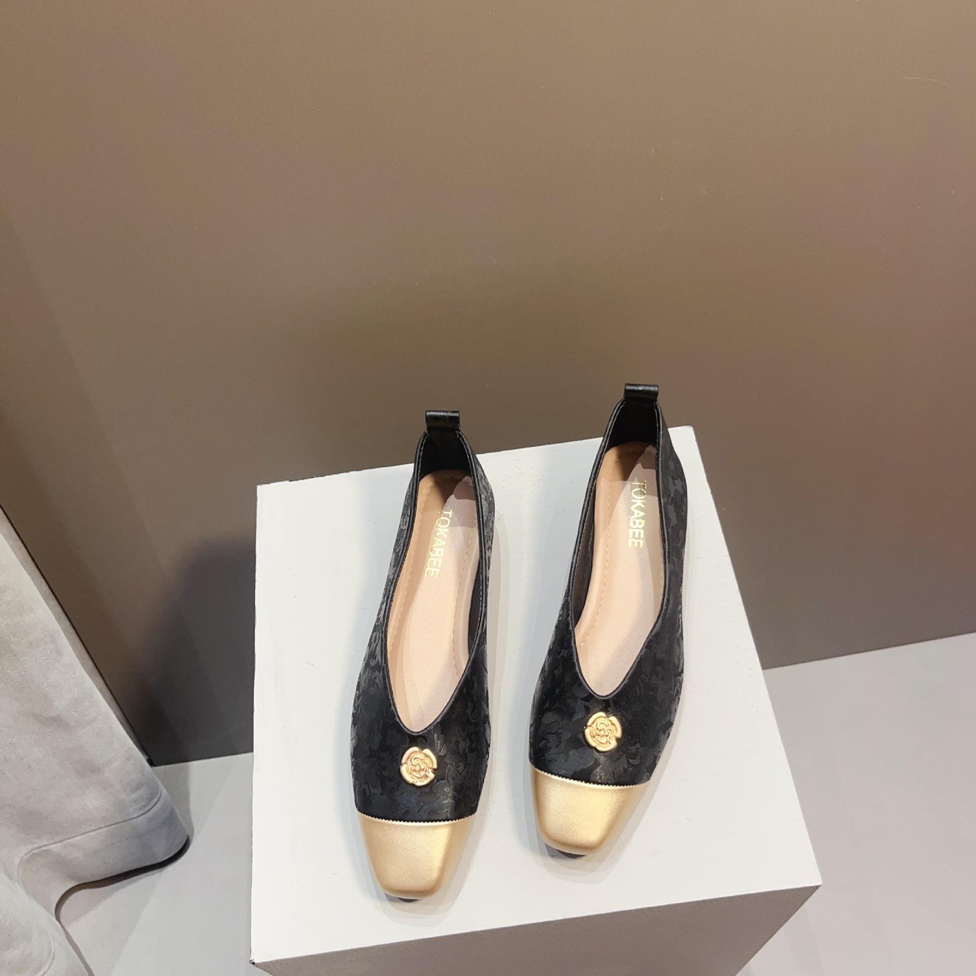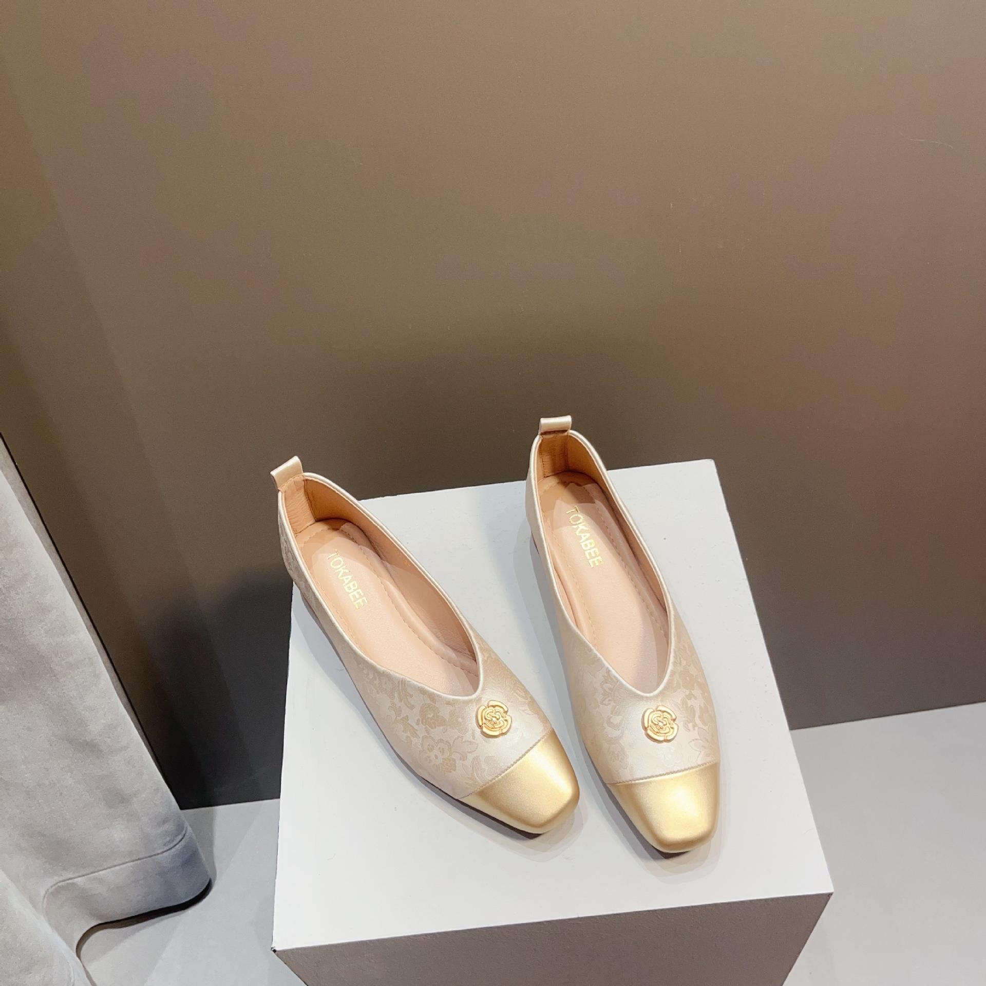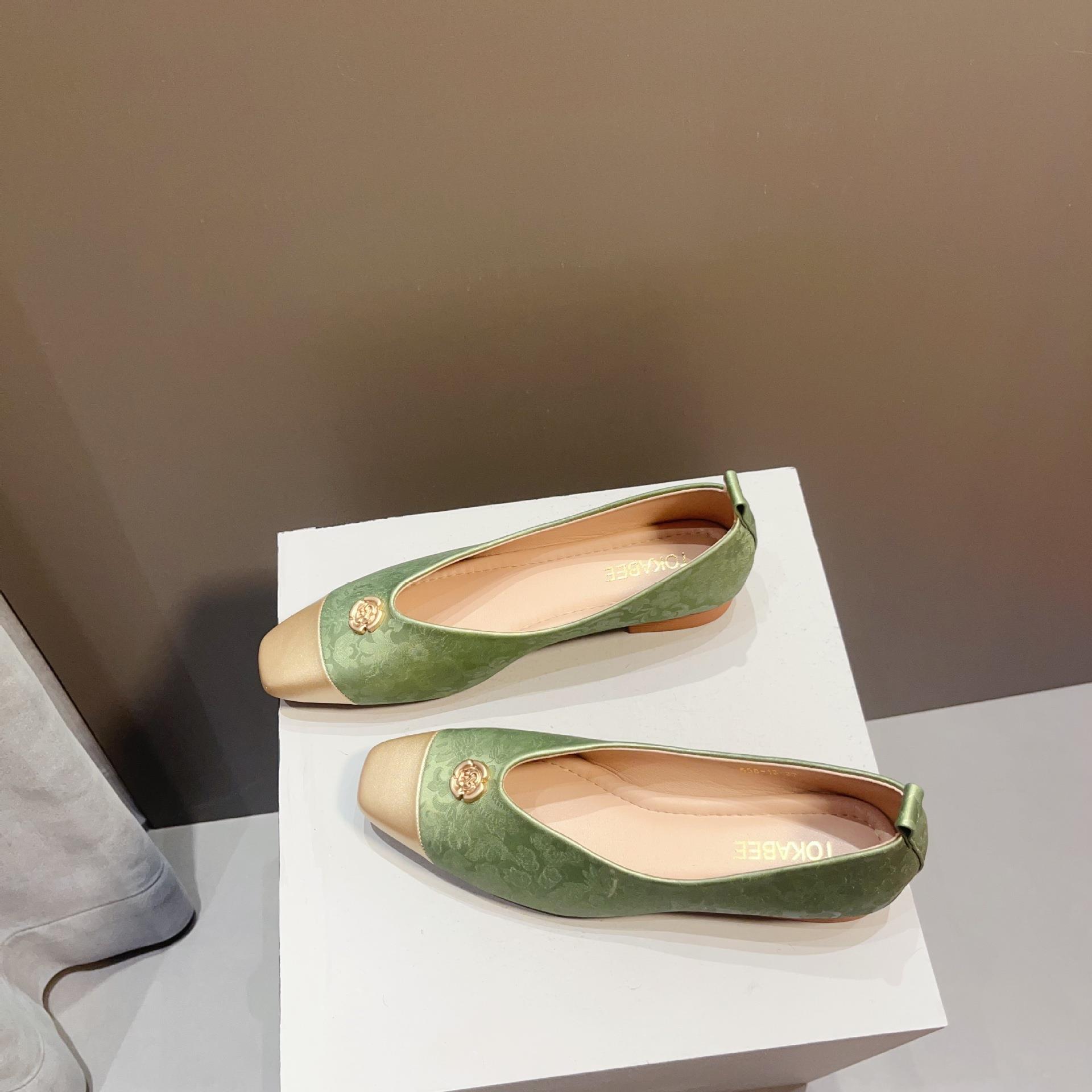 【高定年代】秋季新款新中式鞋子女浅口软底豆豆鞋低跟时尚方头拼接单鞋