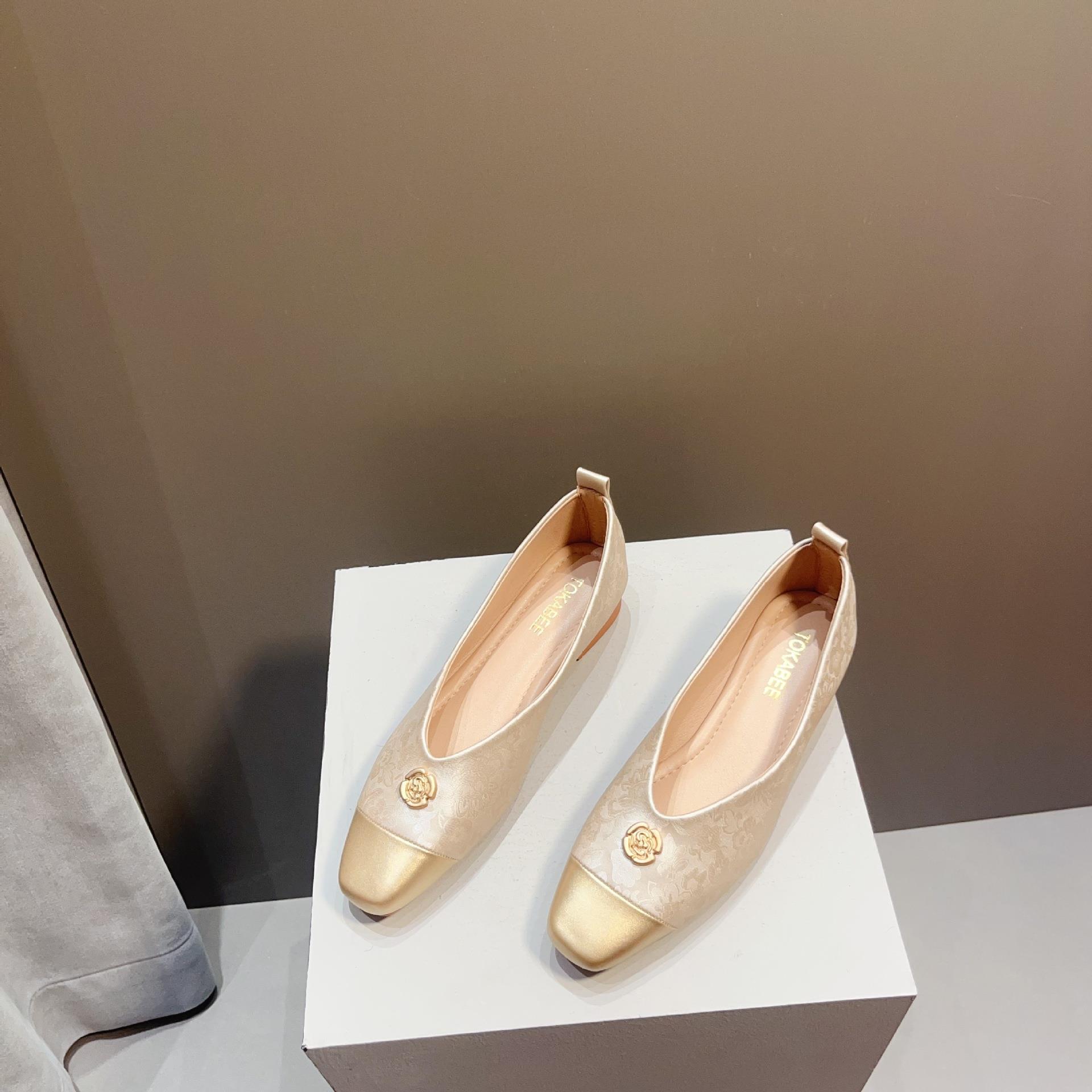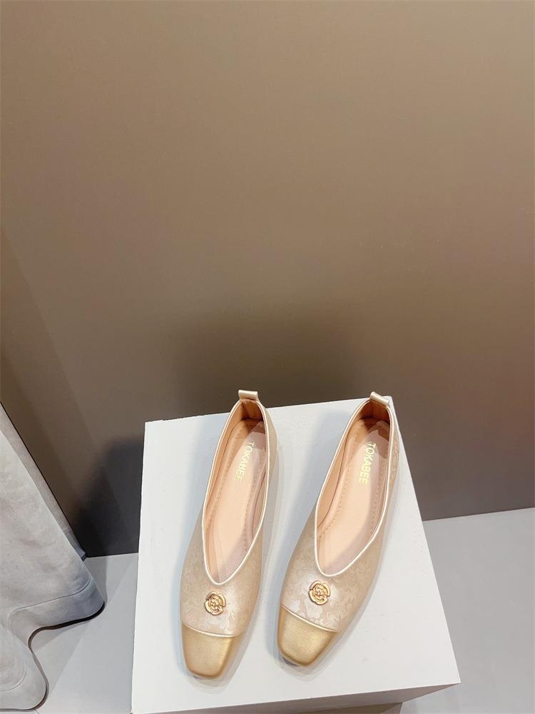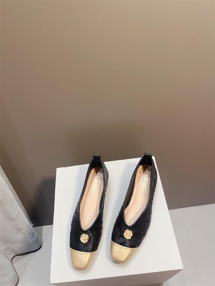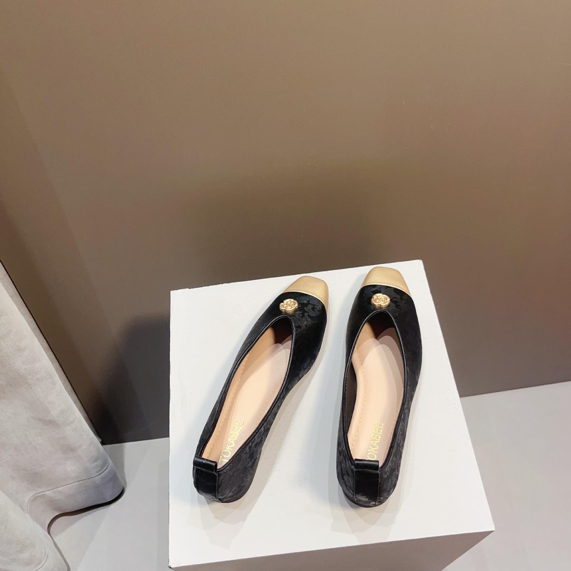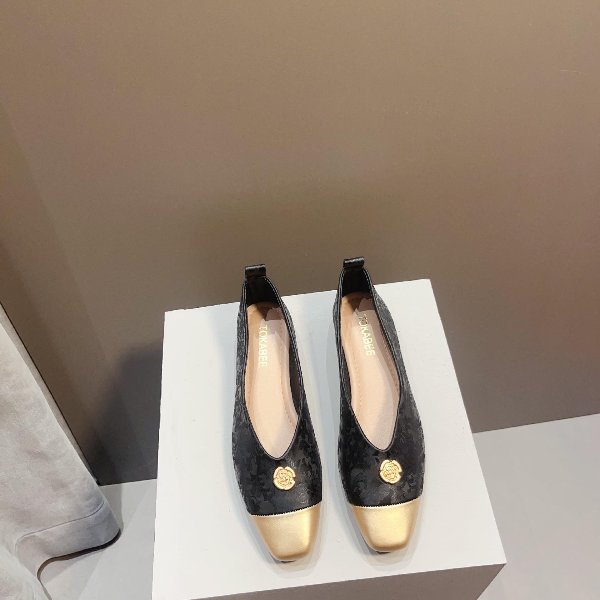 【高定年代】秋季新款新中式鞋子女浅口软底豆豆鞋低跟时尚方头拼接单鞋