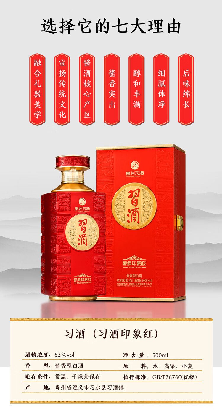 【清仓 无原箱】习酒 印象系列 印象红 酱香型 53度 500ml单瓶