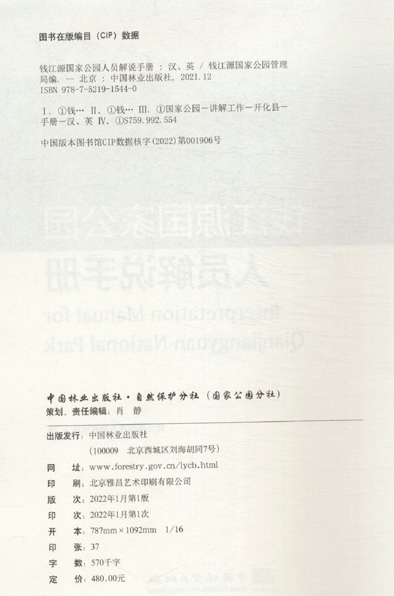 钱江源国家公园人员解说手册(汉英)(精) 雍怡|责编:肖静|译者:张硕朋 1544 中国林业出版社