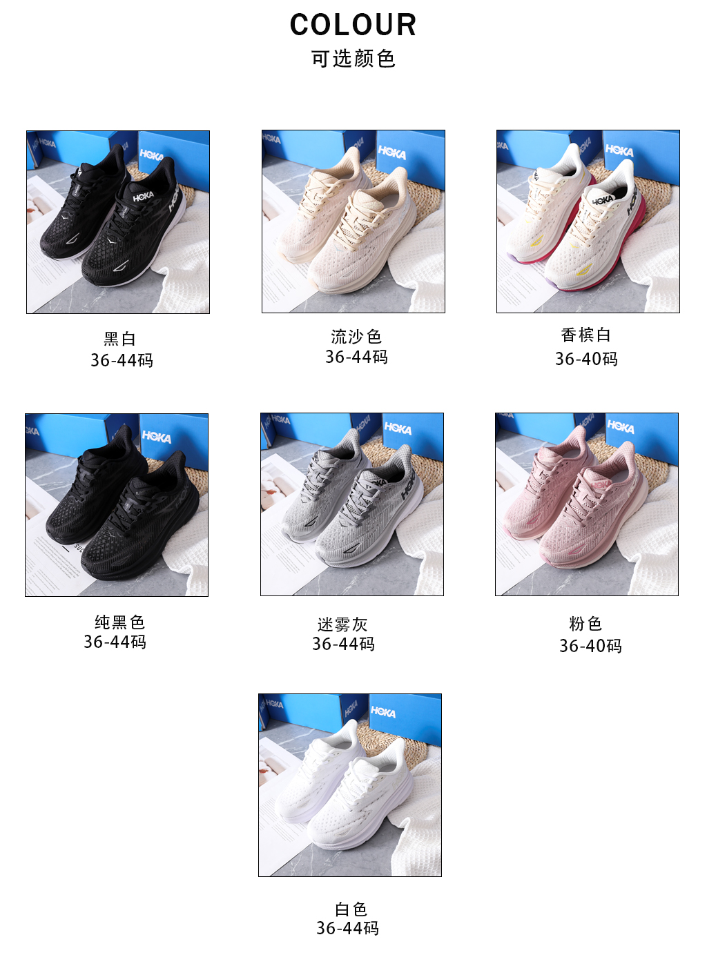 咱们选品火速抢购一批货源【Hoka One One Clifton 9公路鞋】,库存不多,趁现在码数齐全,抢到就是赚到!