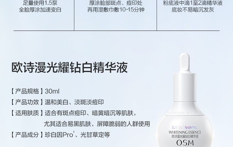 优选丨欧诗漫光耀钻白精华液 美去黄斑 提亮暗沉 哑光包装