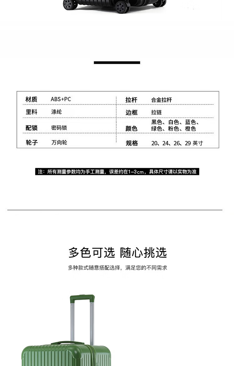 WRC 糖果色宽体亮面时尚旅行箱29英寸 W-9018