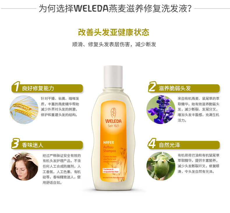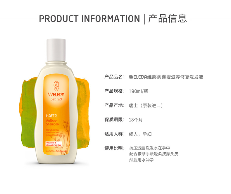 【保税仓】WELEDA维蕾德燕麦滋养修复洗发液190ML