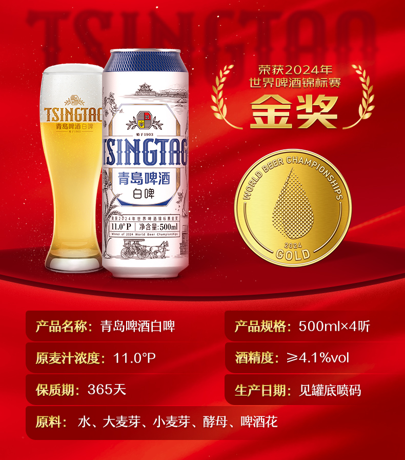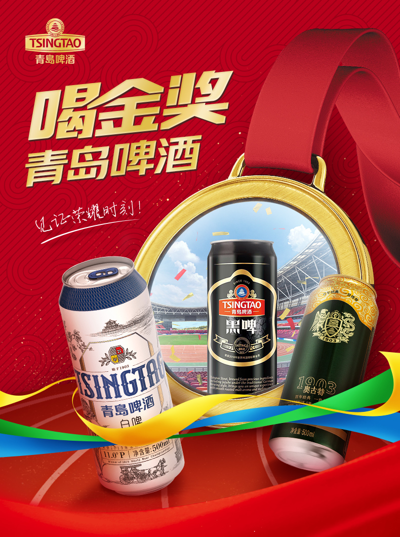 青岛啤酒金奖组合500*10礼盒装罐啤(白啤500*4+黑啤500*3+奥古特500*3)