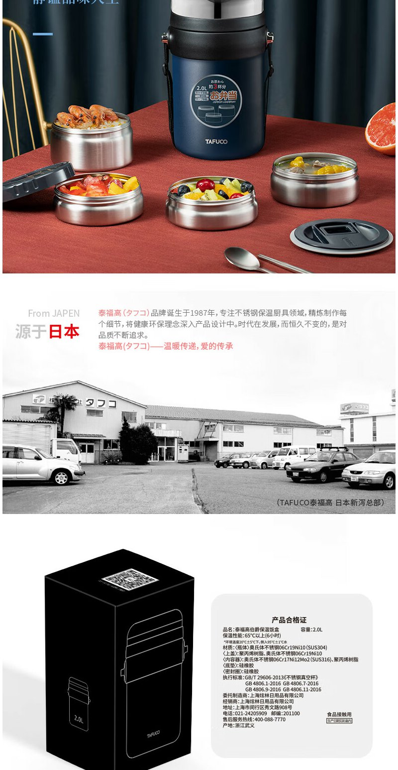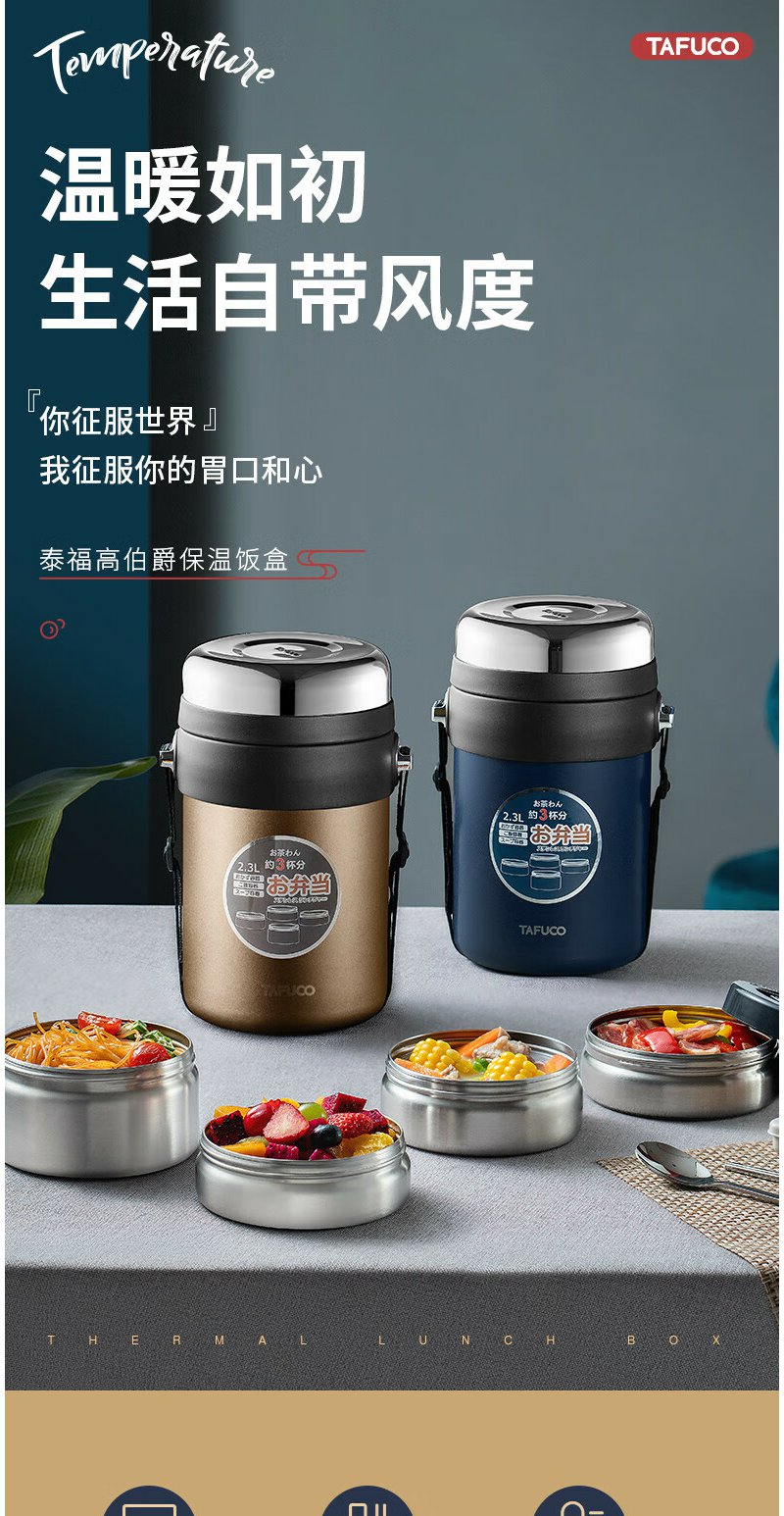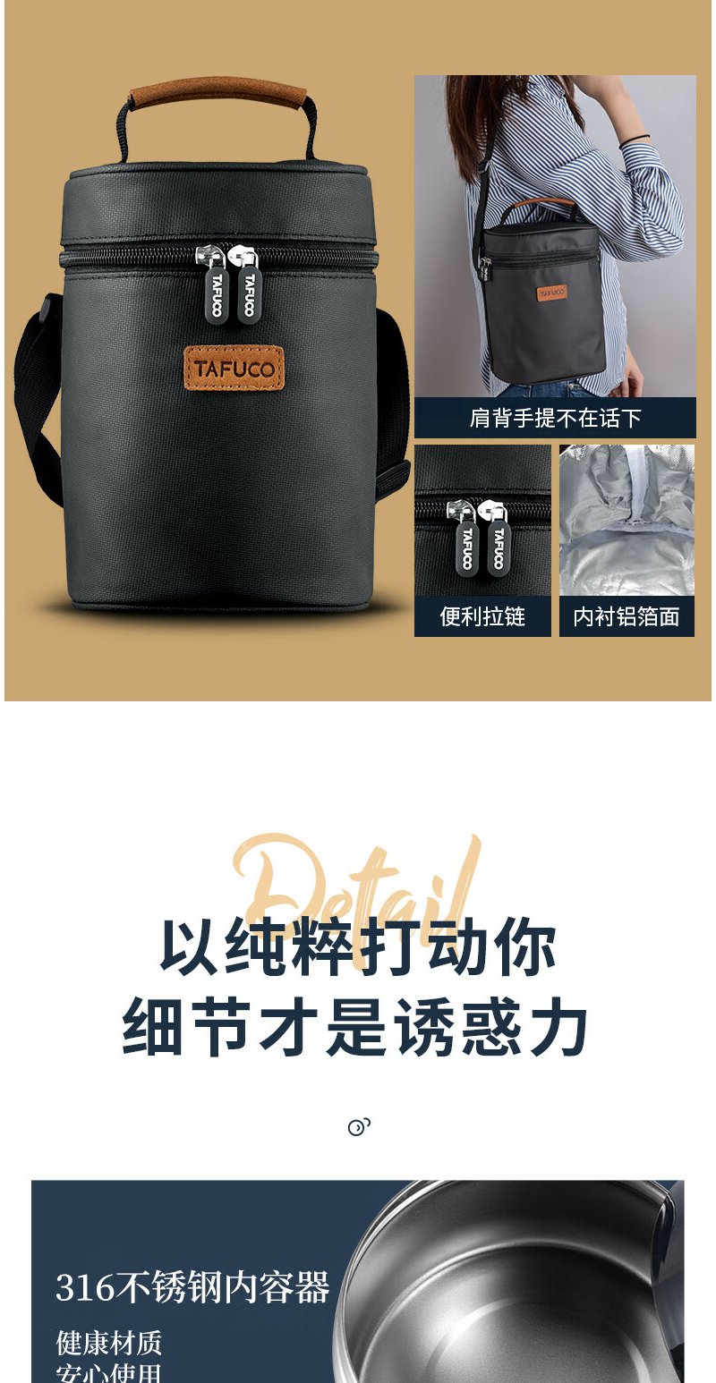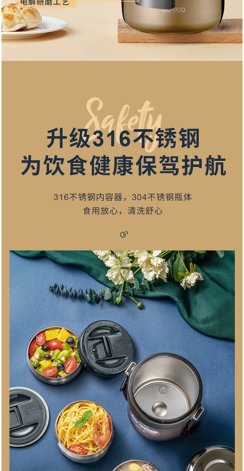 泰福高(TAFUCO) 保温饭盒 多层316不锈钢大容量保温盒