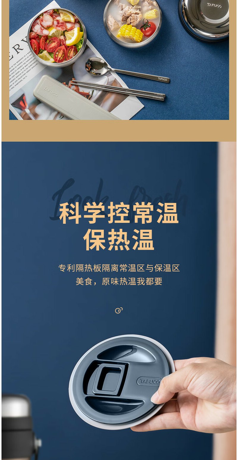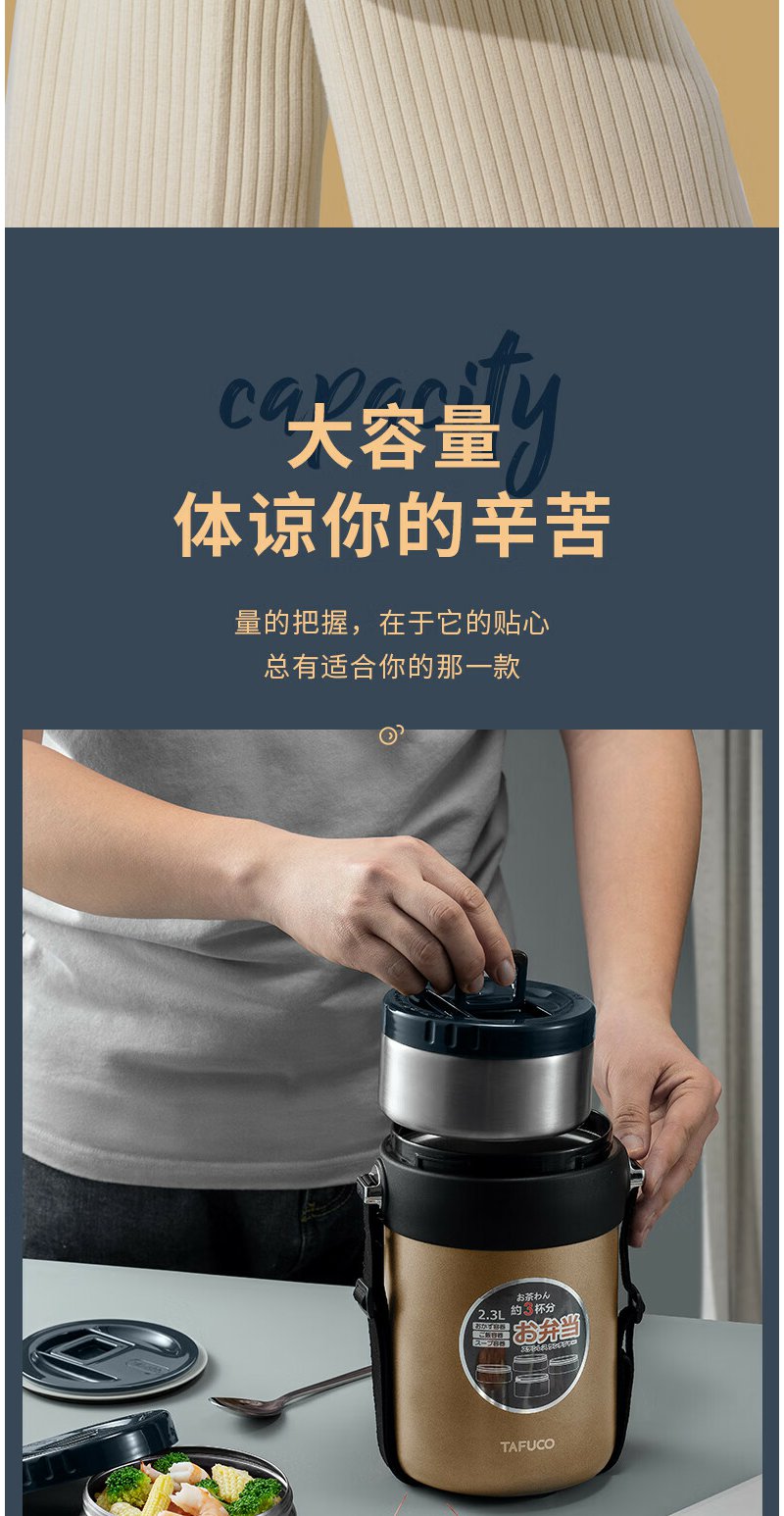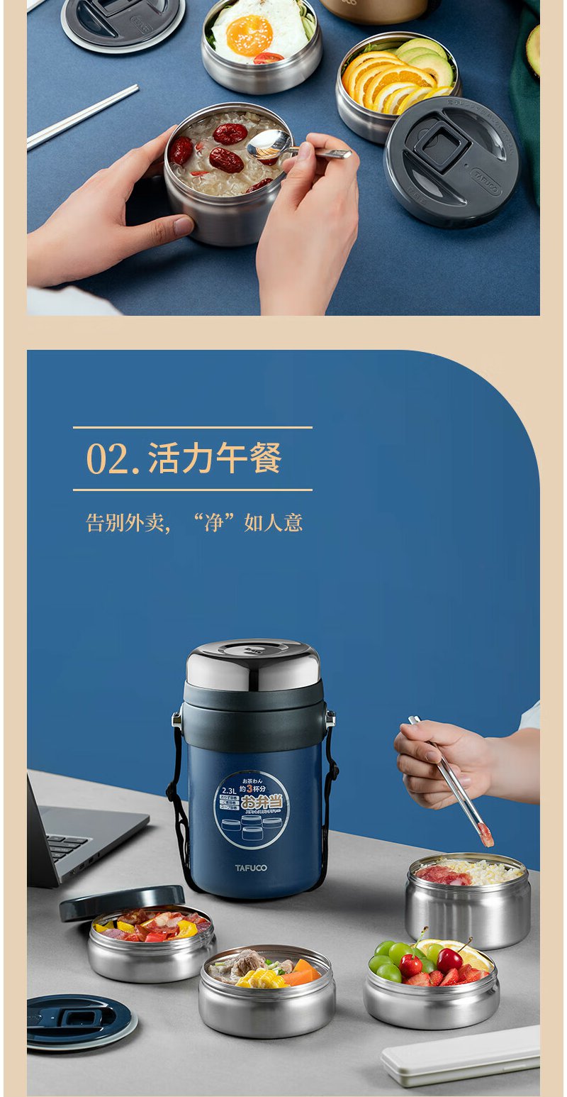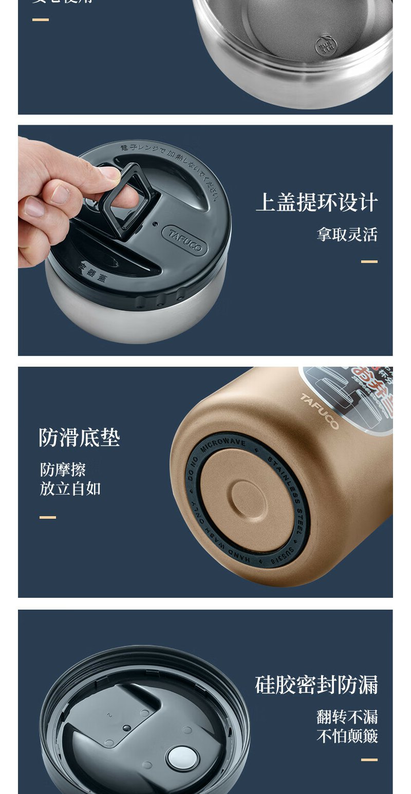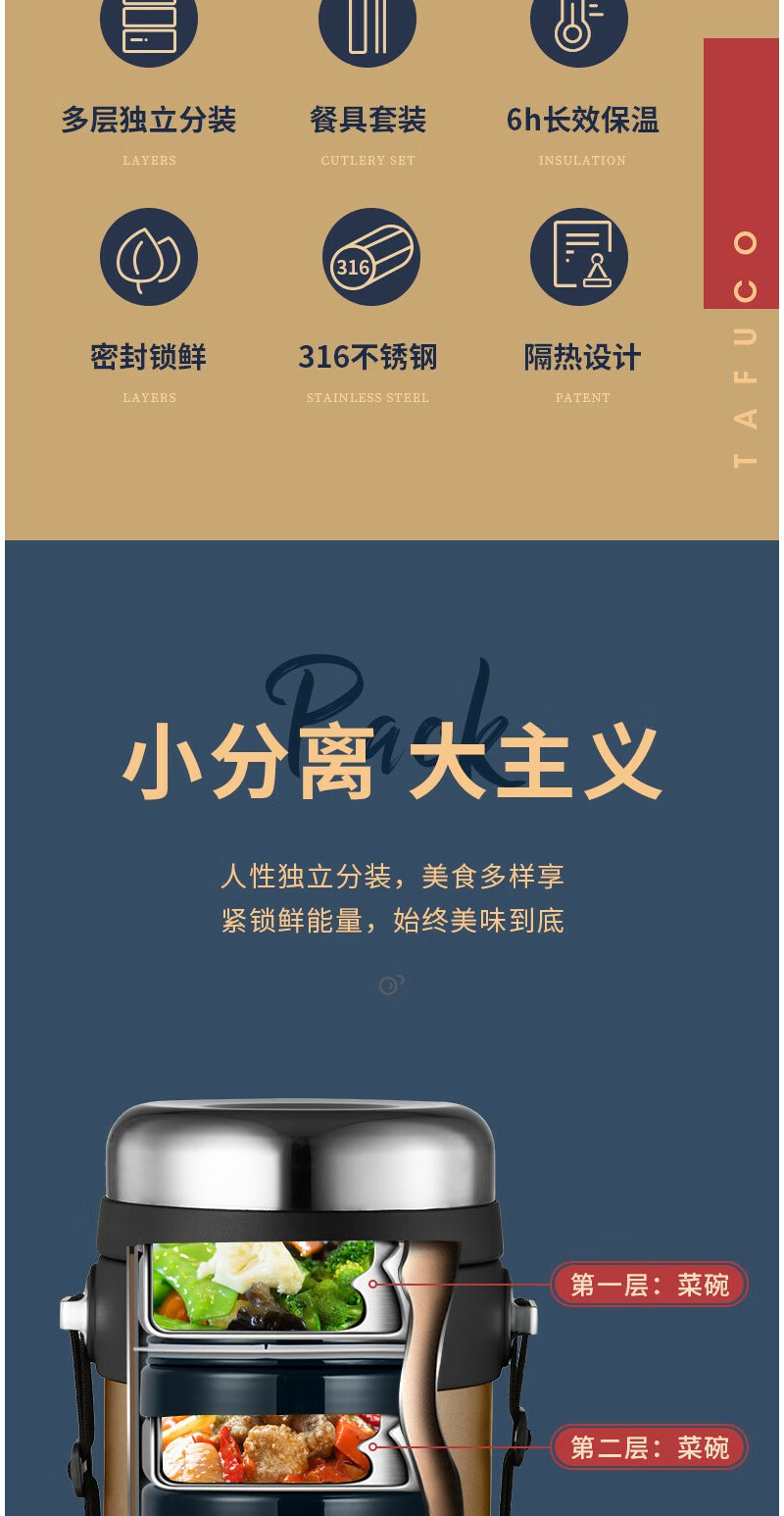 泰福高(TAFUCO) 保温饭盒 多层316不锈钢大容量保温盒