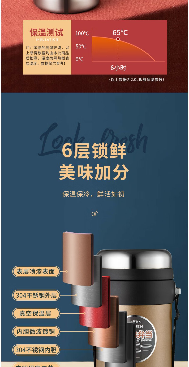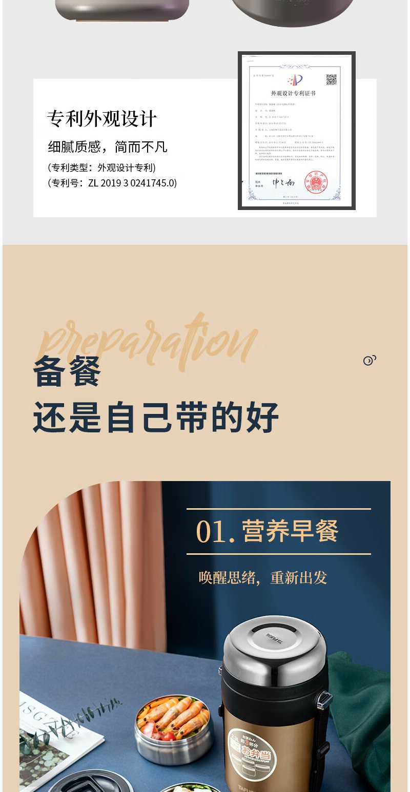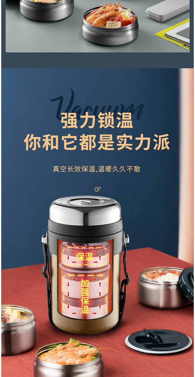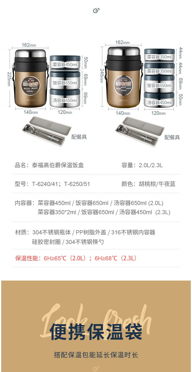 泰福高(TAFUCO) 保温饭盒 多层316不锈钢大容量保温盒
