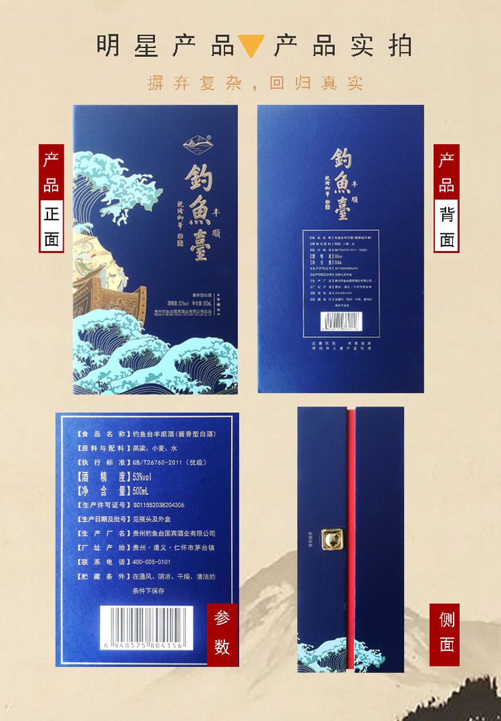 【推荐】钓鱼台丰顺酒酱香型白酒53度500ml*6 整箱装