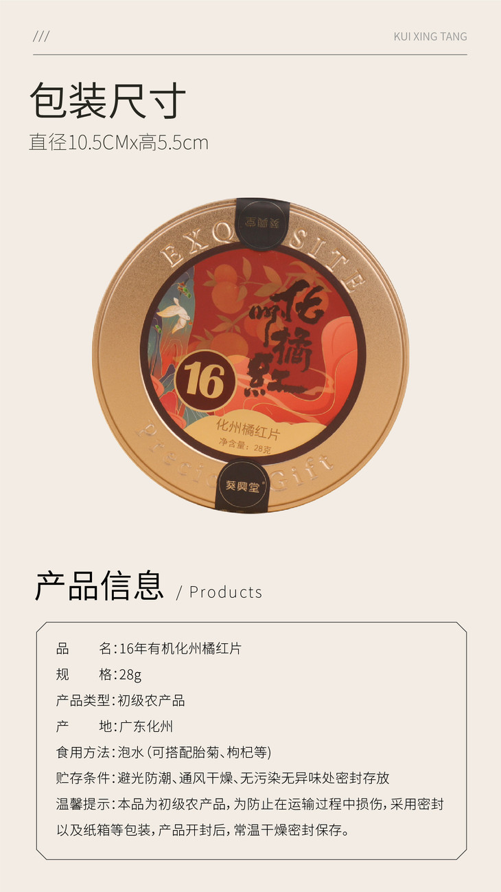 【直送到家】28g葵興堂16有机陈年化州橘红片