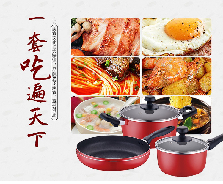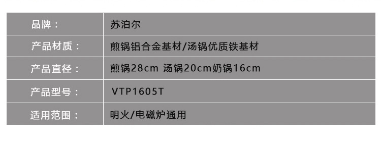 苏泊尔 中国红炫彩炒锅组合三件套 VTP1605T