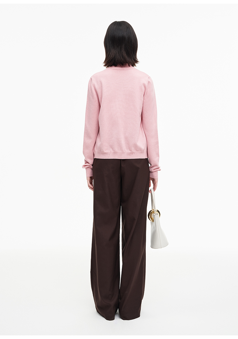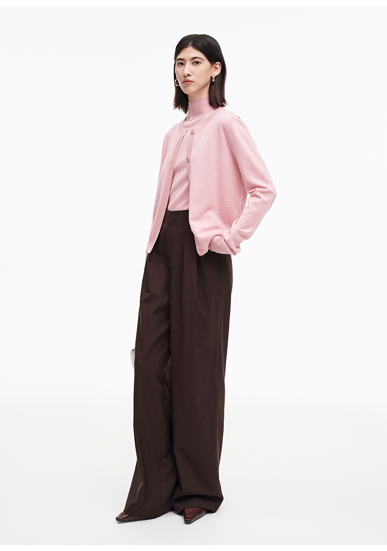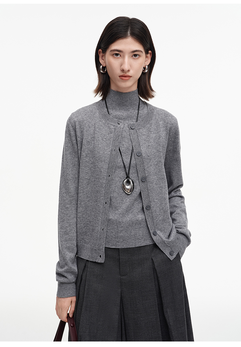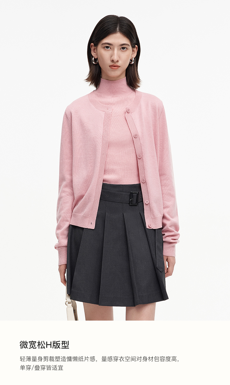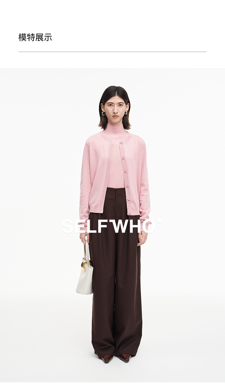 SELFWHO绵羊毛混纺经典圆领针织开衫女2025秋季新款宽松毛衣外套