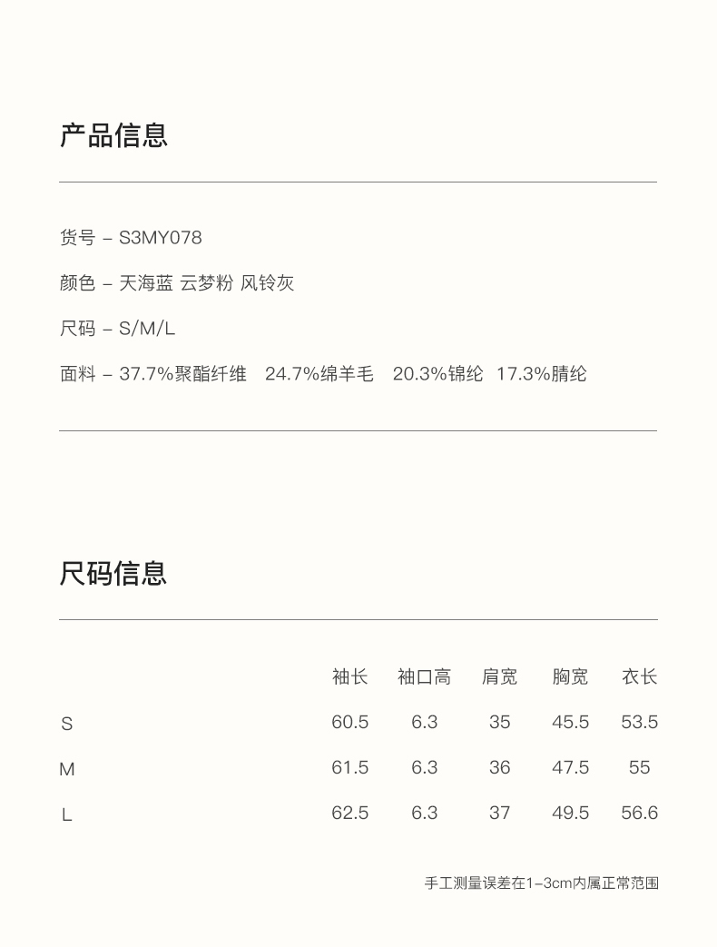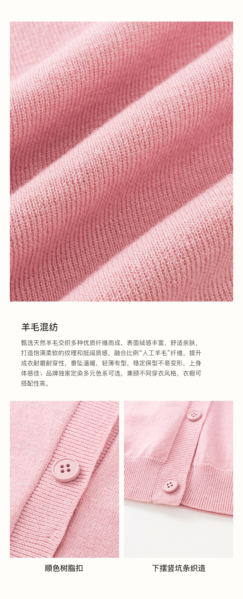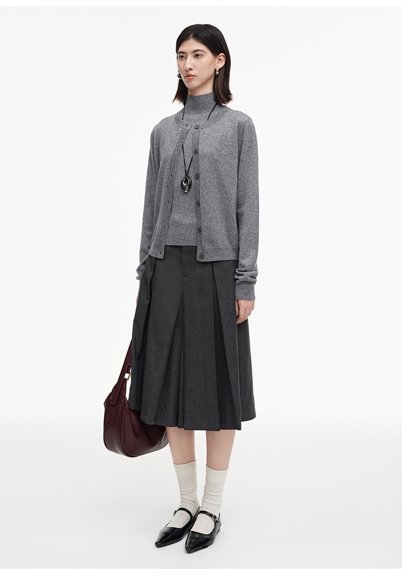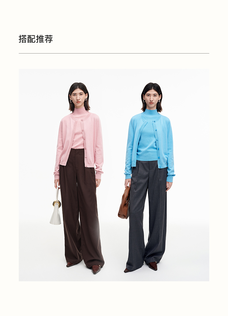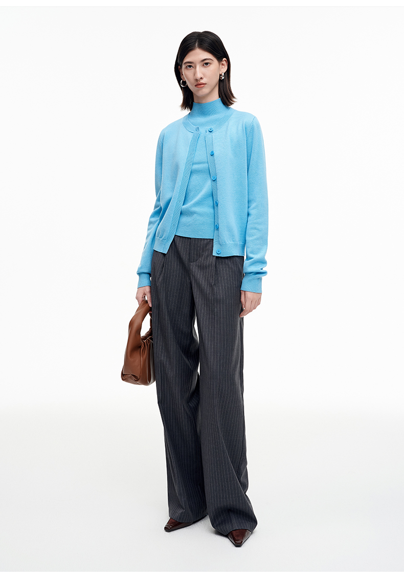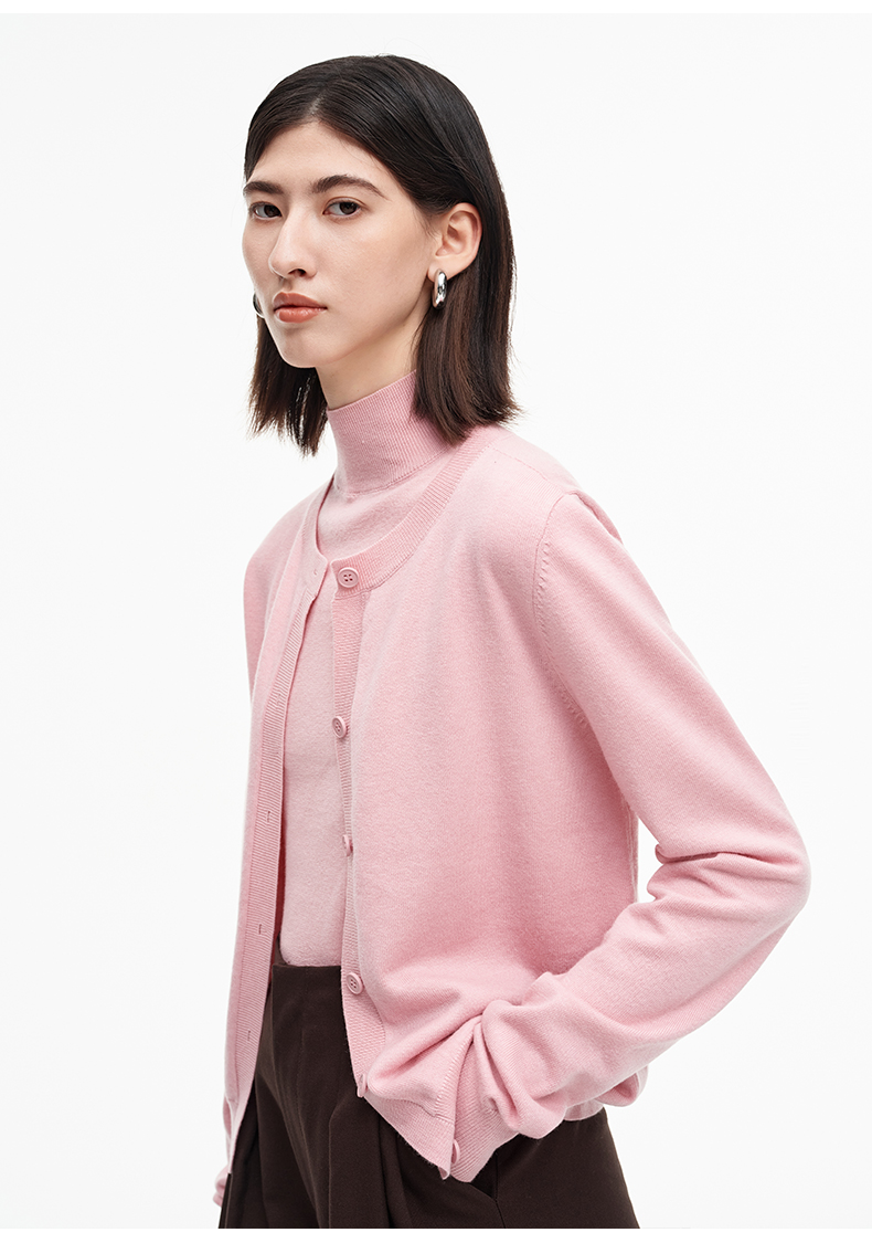 SELFWHO绵羊毛混纺经典圆领针织开衫女2025秋季新款宽松毛衣外套