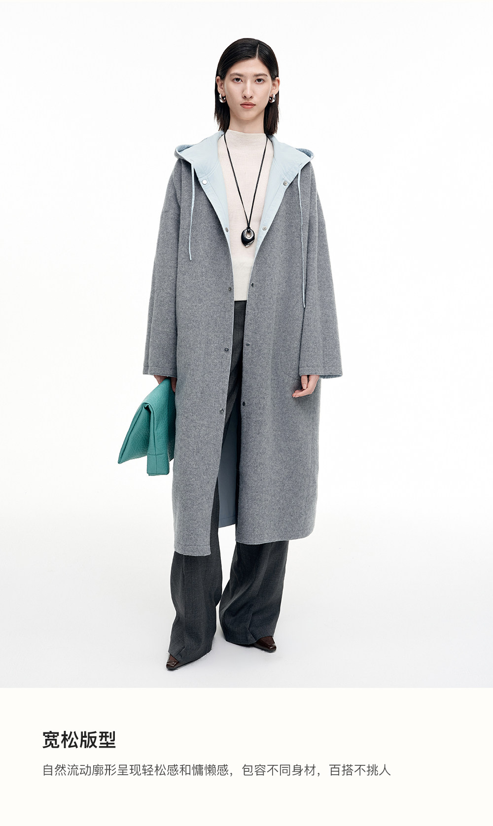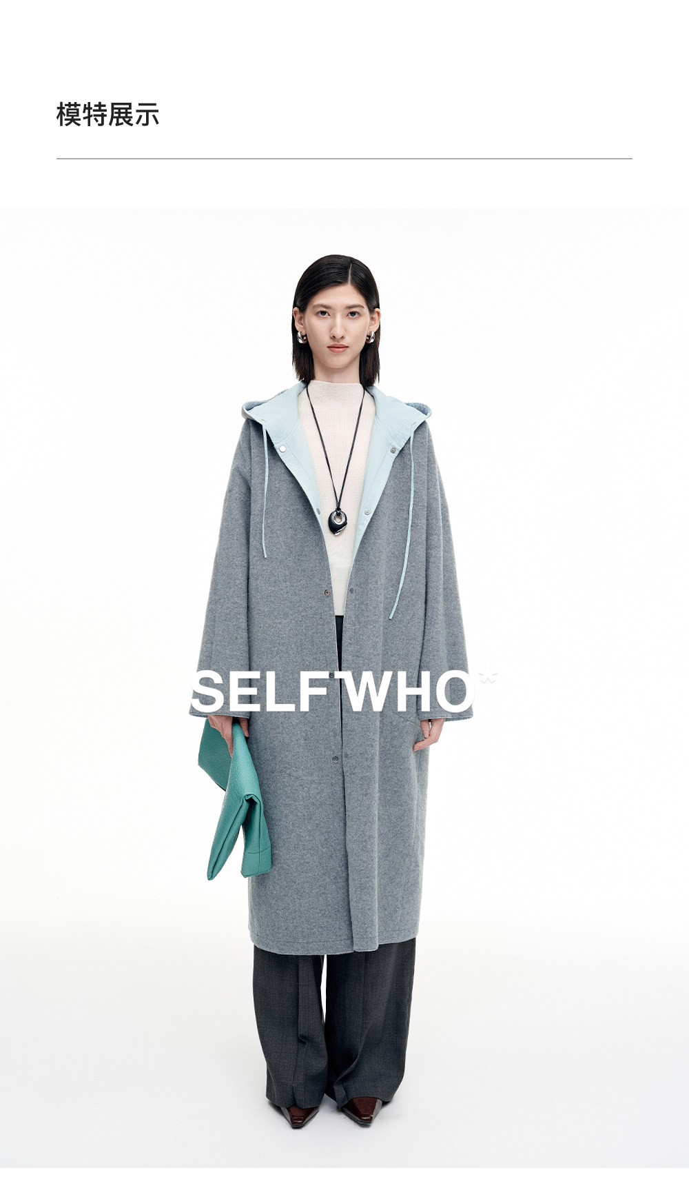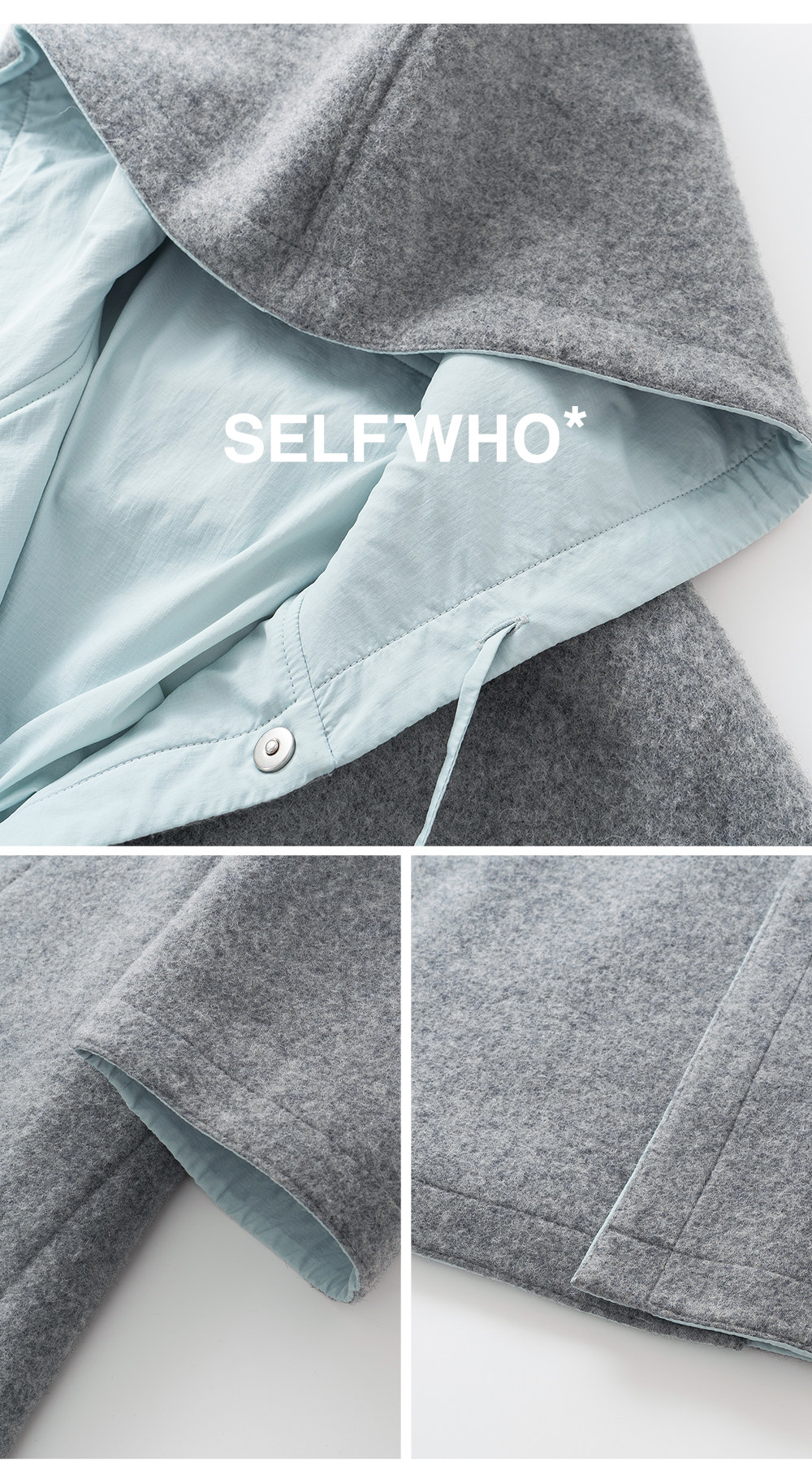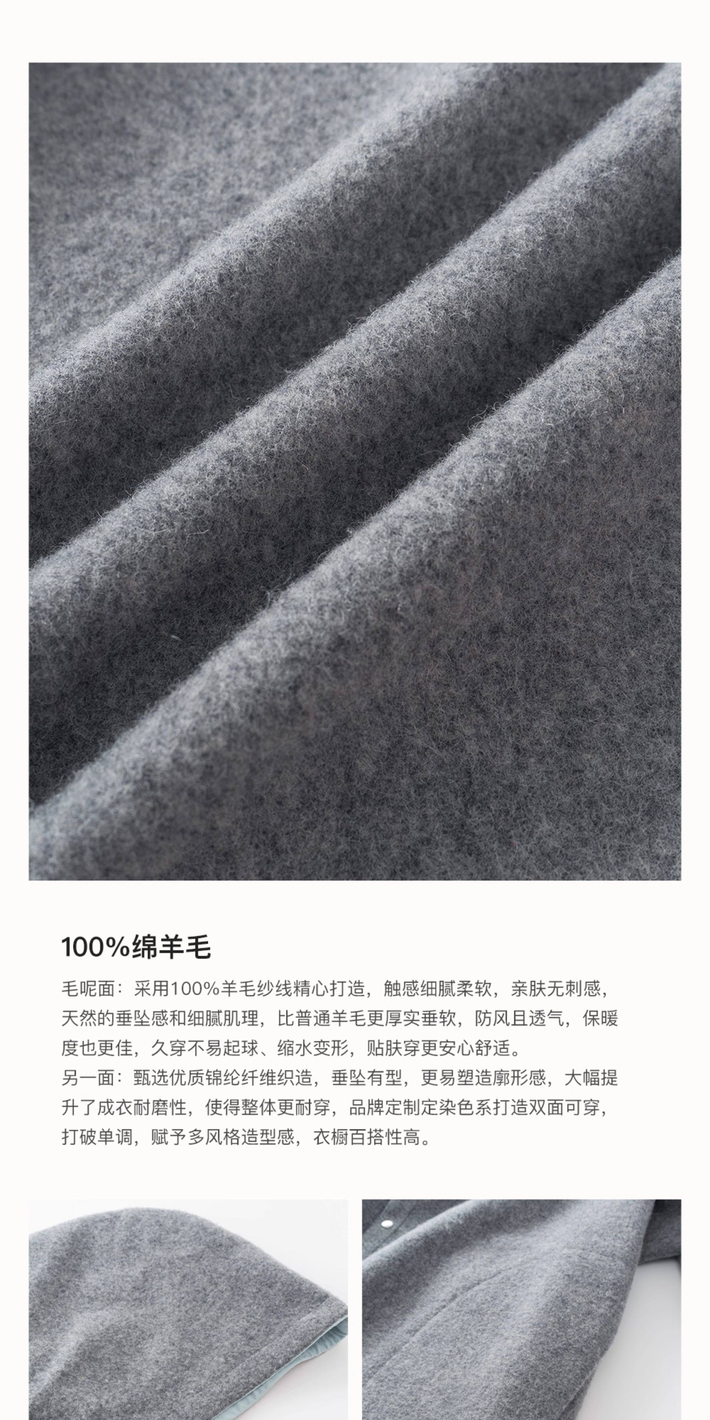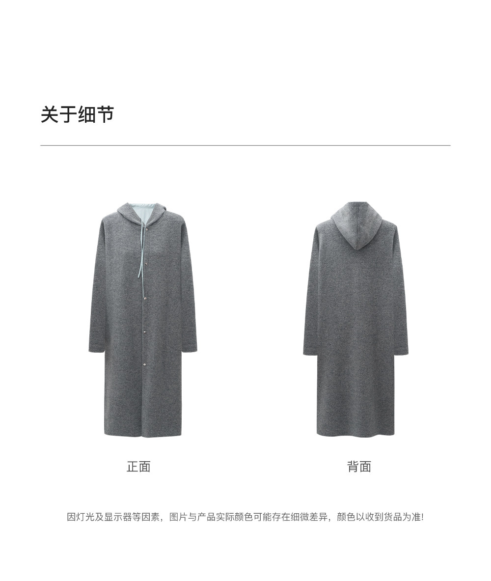 SELFWHO100%绵羊毛灰色双面穿外套女2026春季新款连帽抽绳大衣