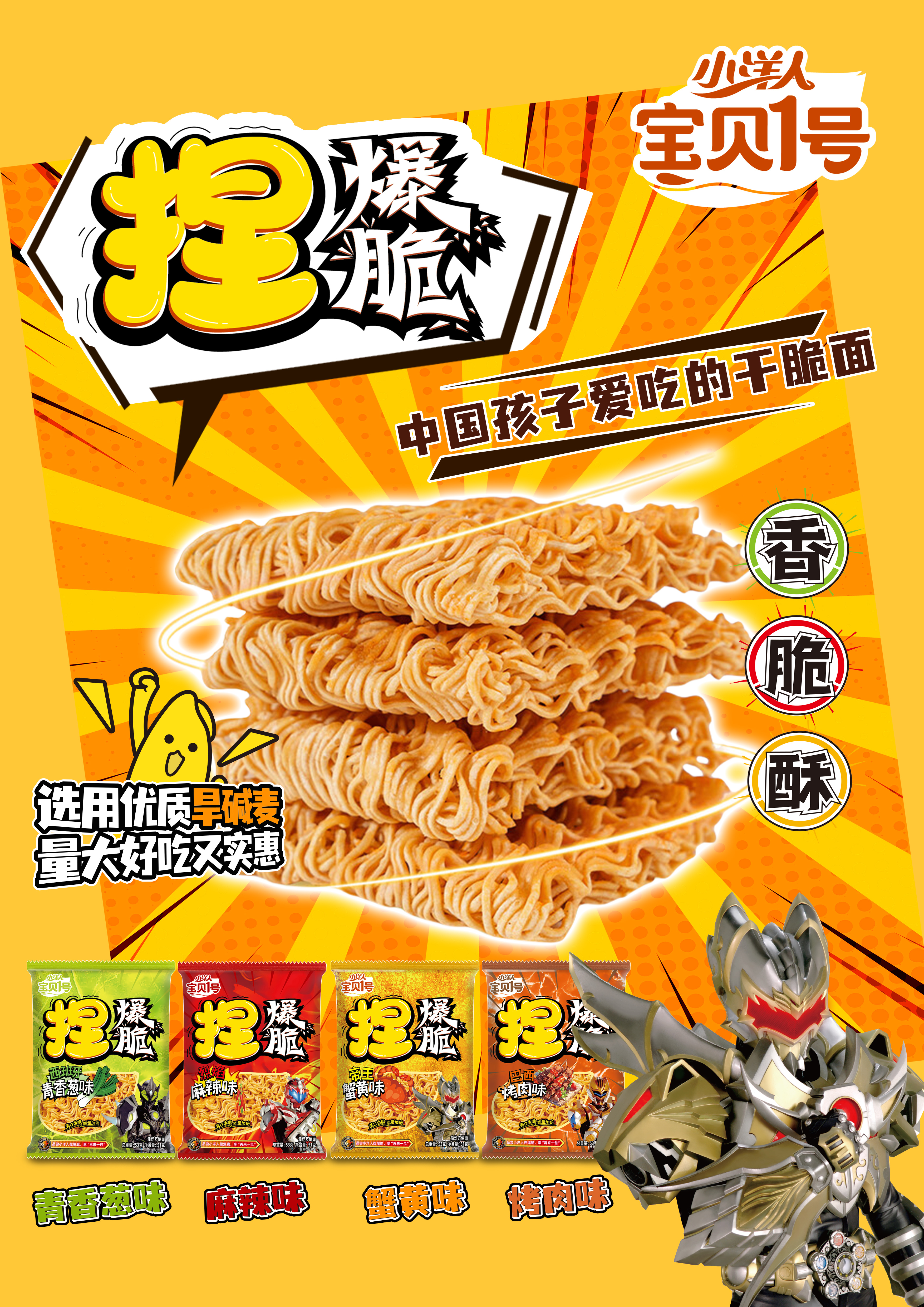小洋人宝贝1号捏爆脆干脆面 优质旱碱麦、量大好吃又实惠 21克*20袋