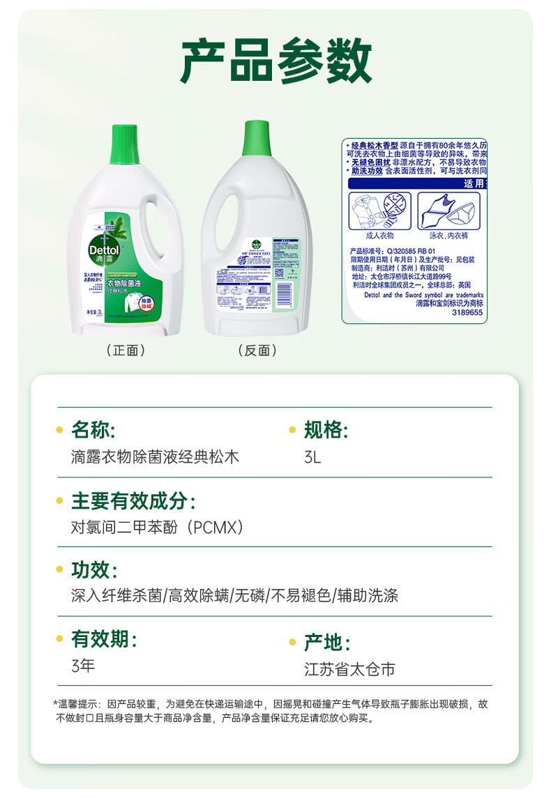 滴露(Dettol)衣物除菌液经典松木3L