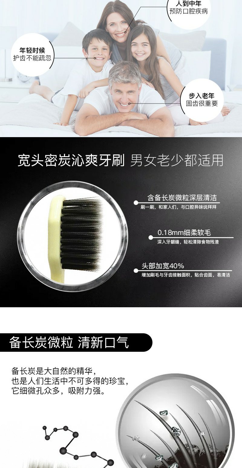 舒客 宽头密炭沁爽牙刷 4支 ZHS-KT04