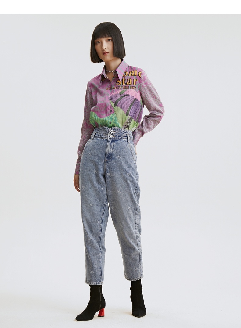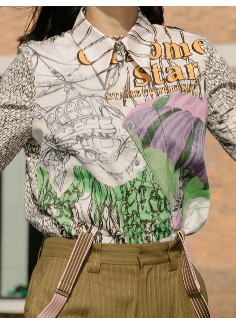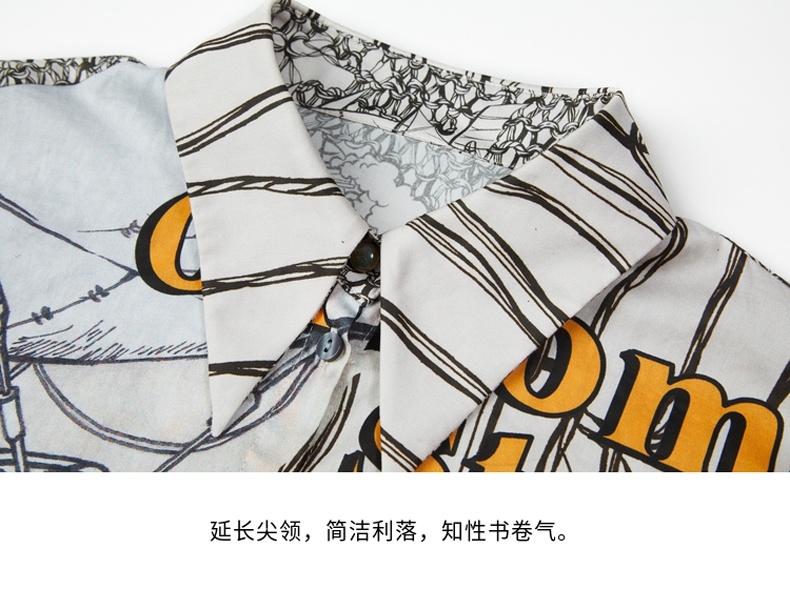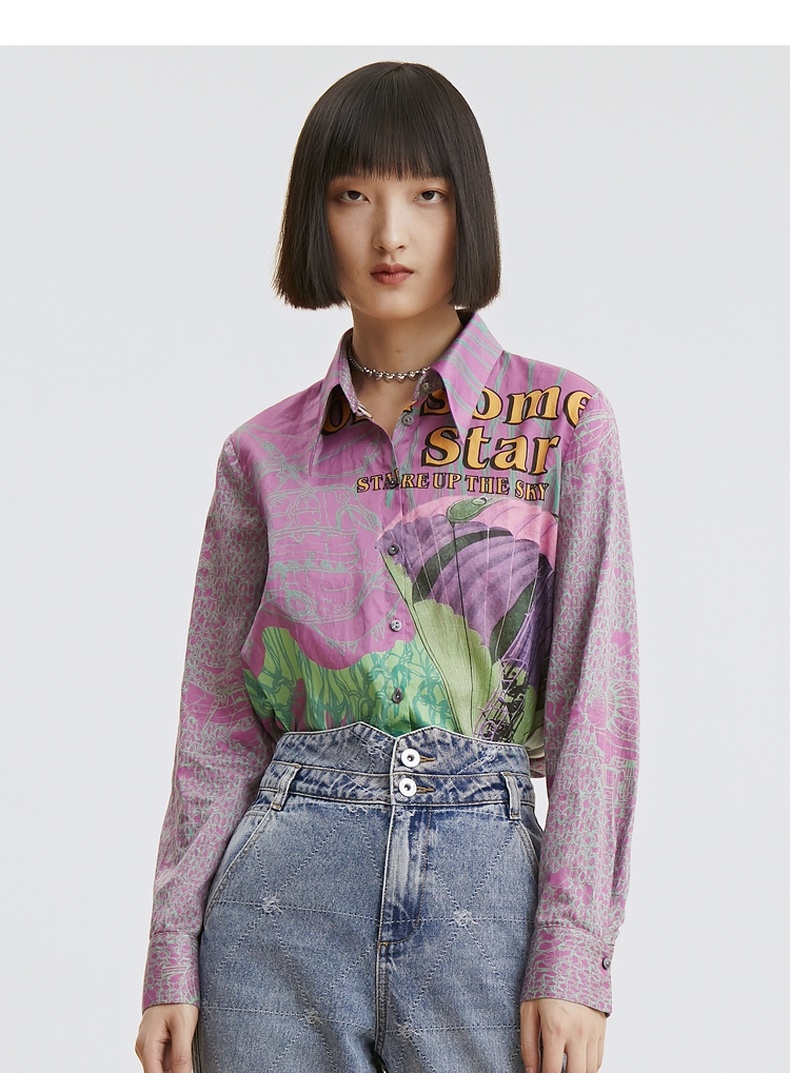 谜底纯棉衬衫2021秋季新款合体法式尖领长袖花上衣女213MC1786