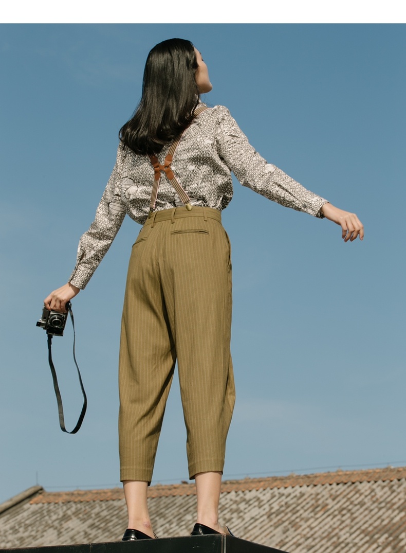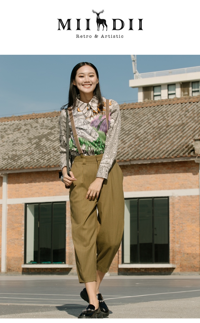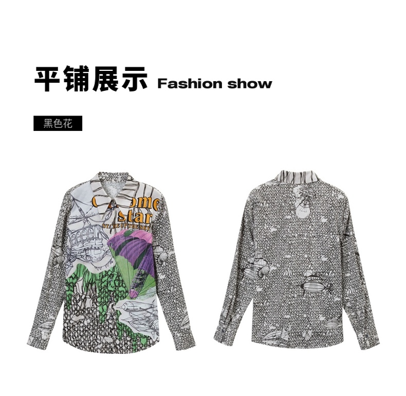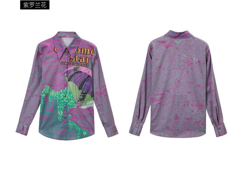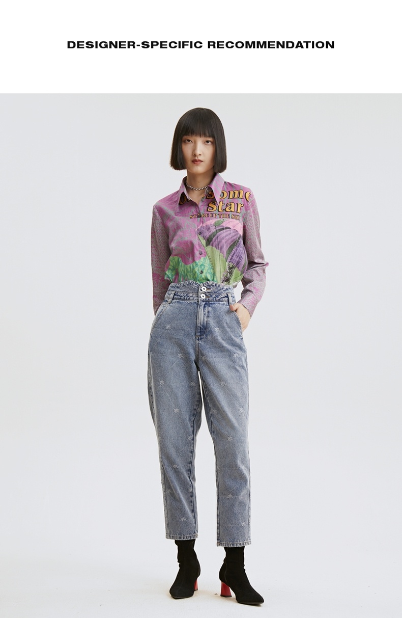 谜底纯棉衬衫2021秋季新款合体法式尖领长袖花上衣女213MC1786