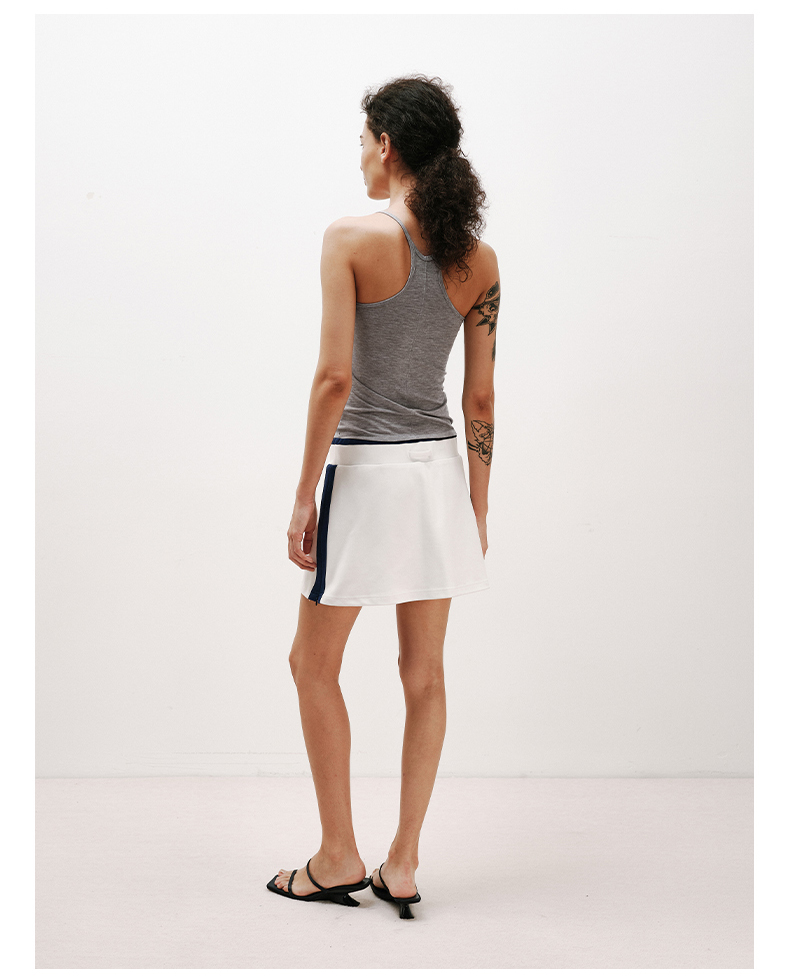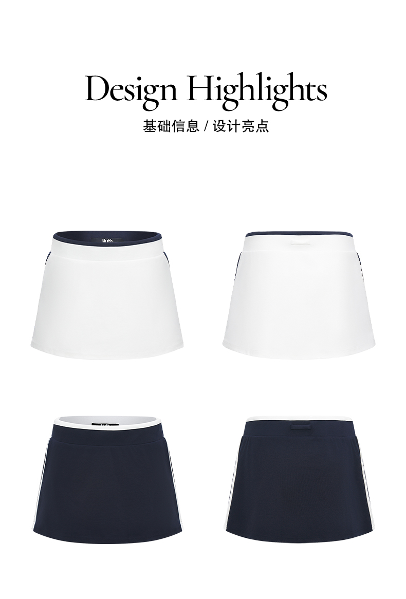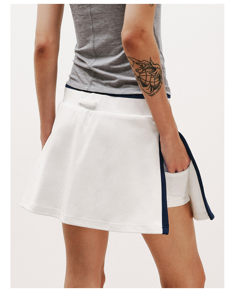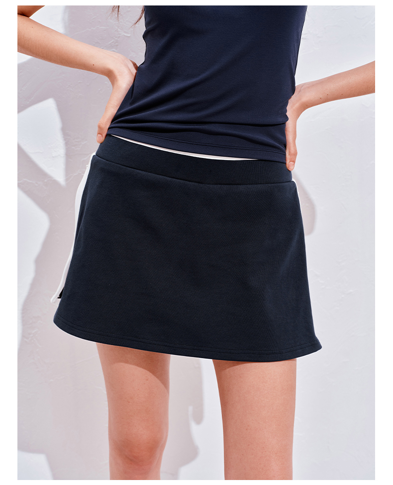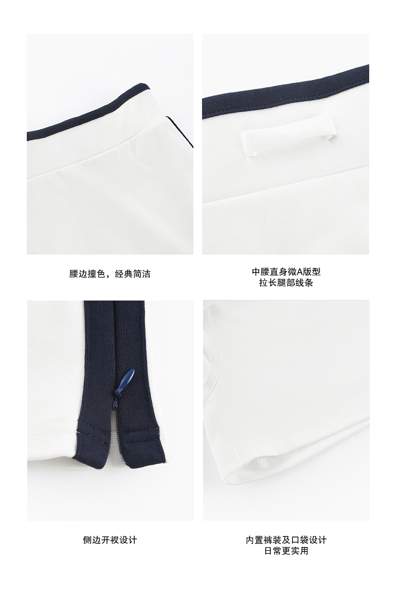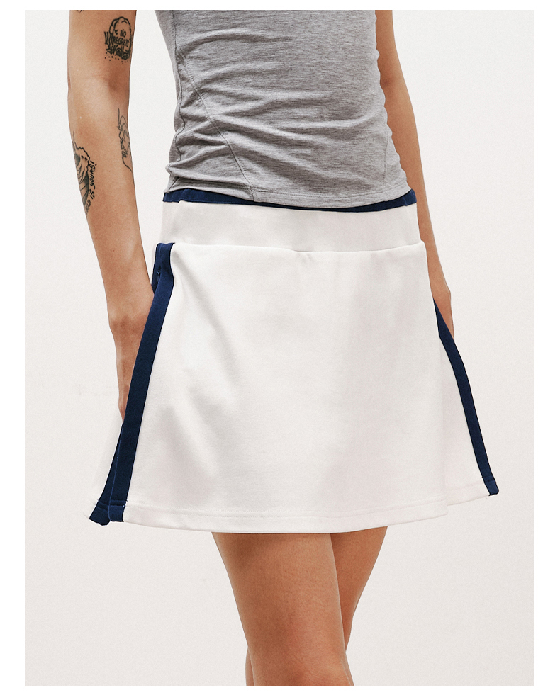 NUTHa字运动短裙半身裙撞色拉链开衩网球裙 深藏青/白色