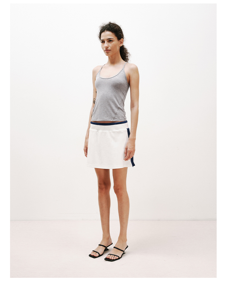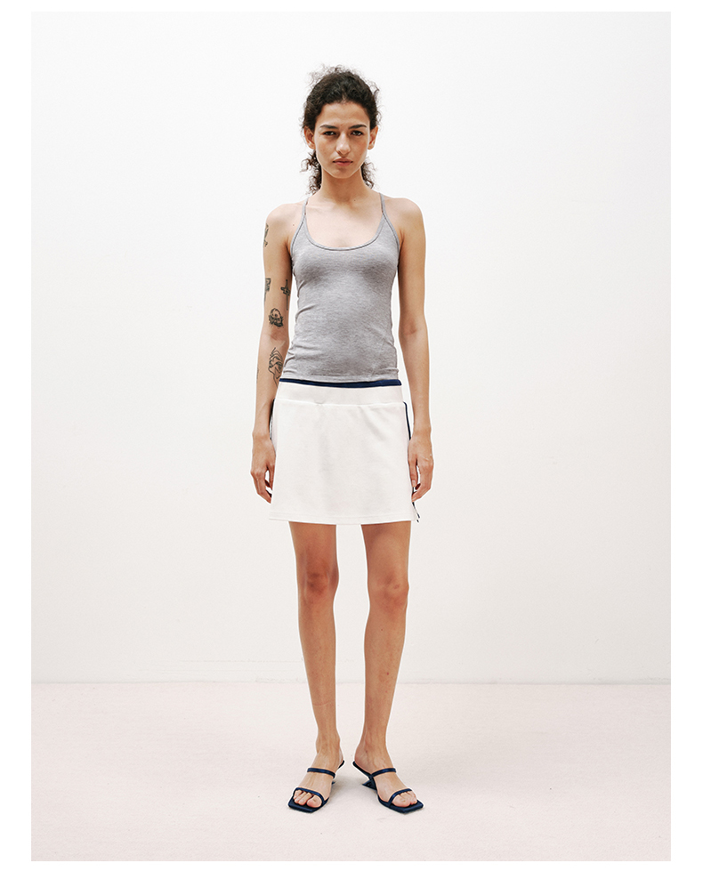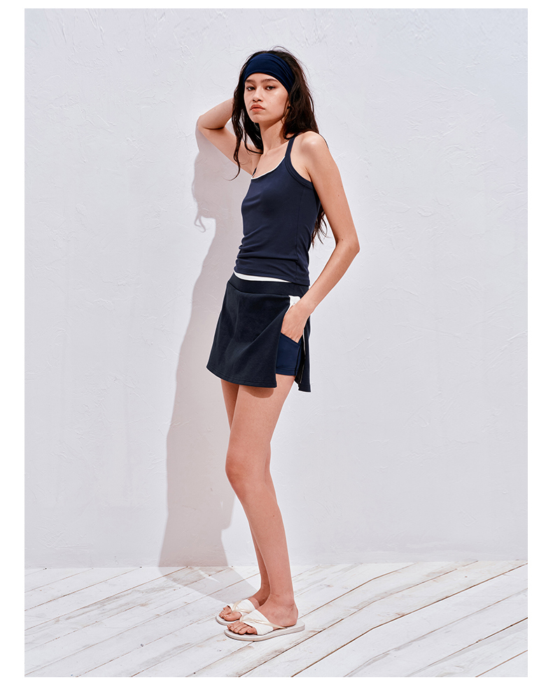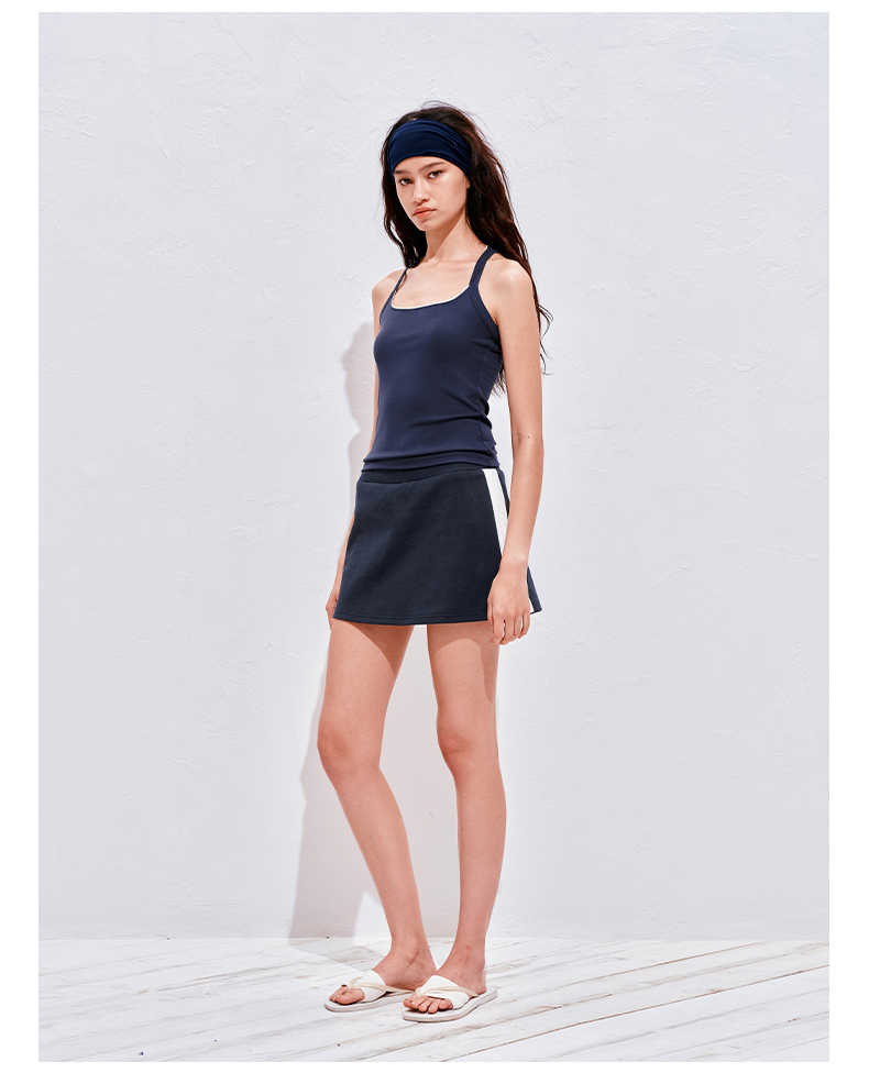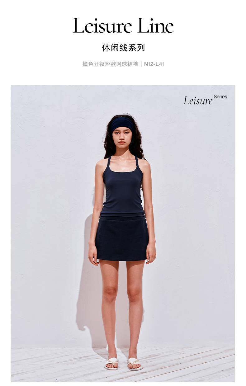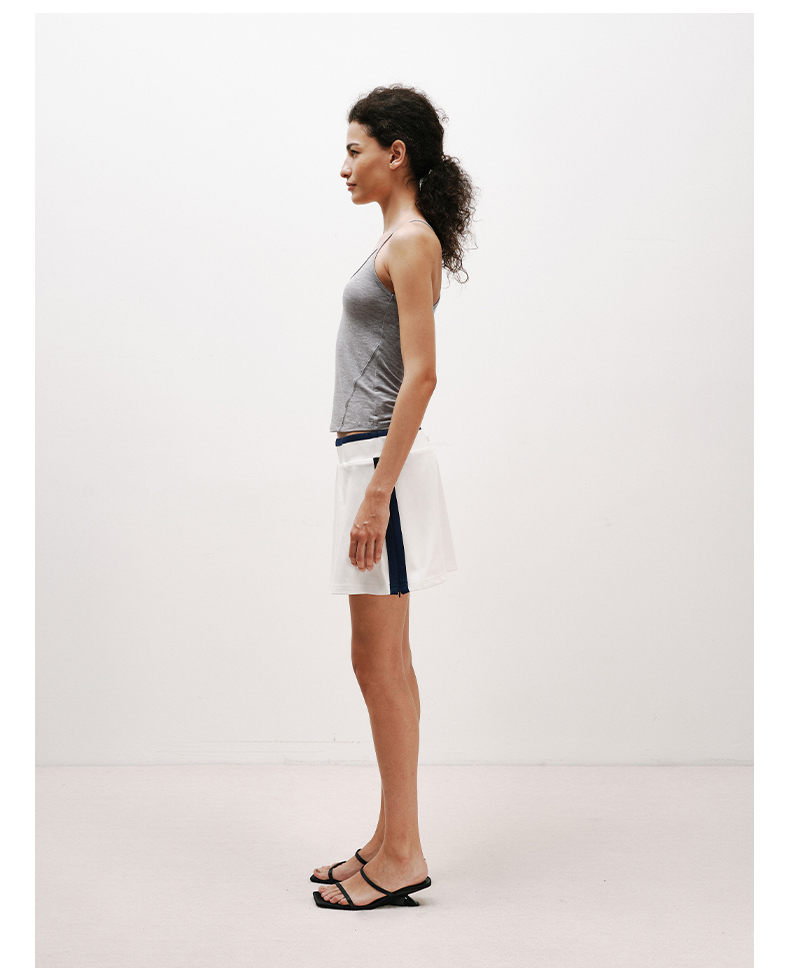 NUTHa字运动短裙半身裙撞色拉链开衩网球裙 深藏青/白色