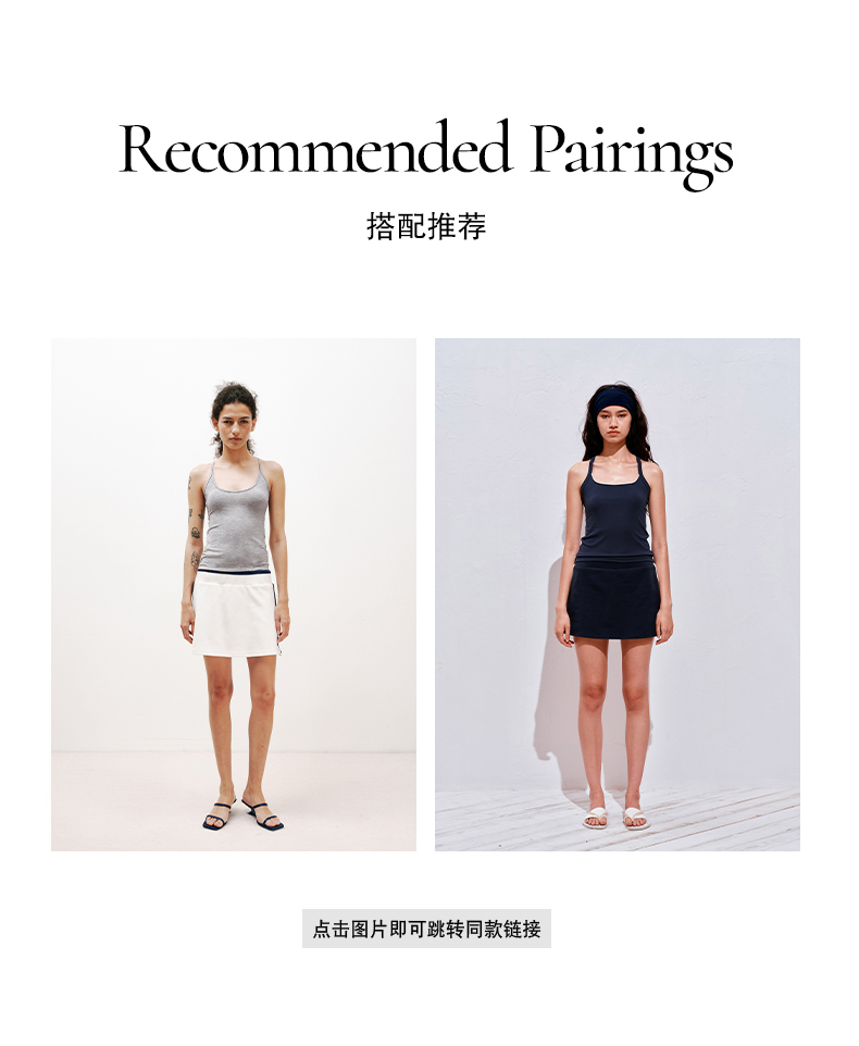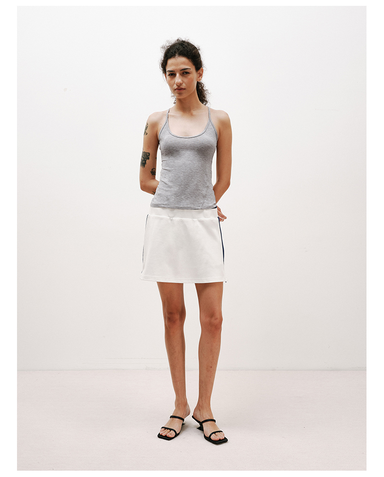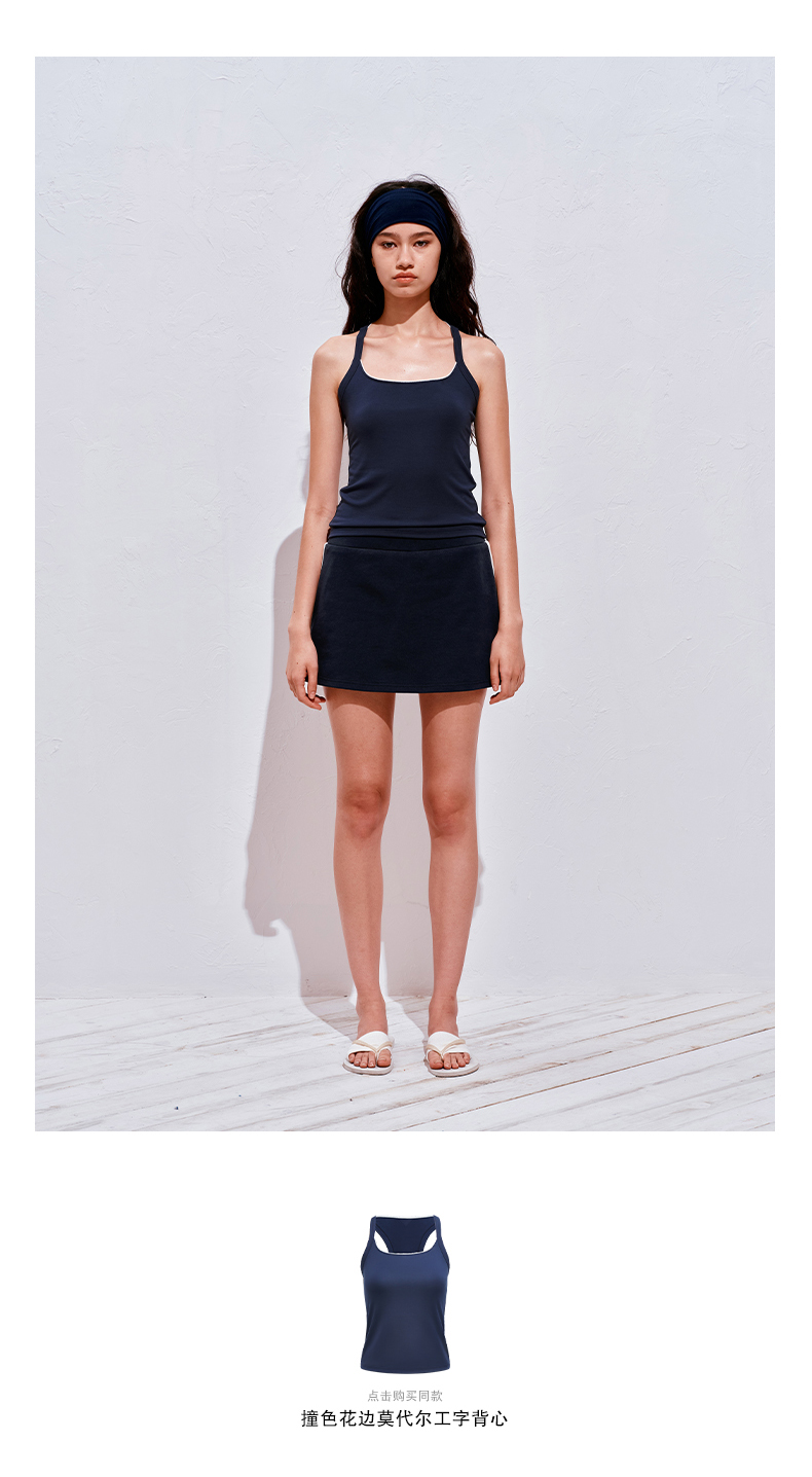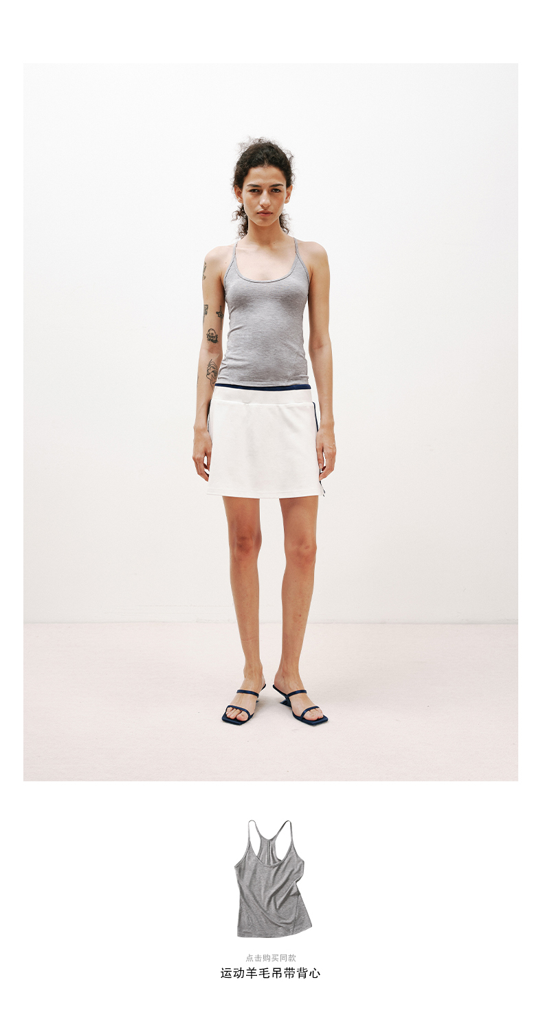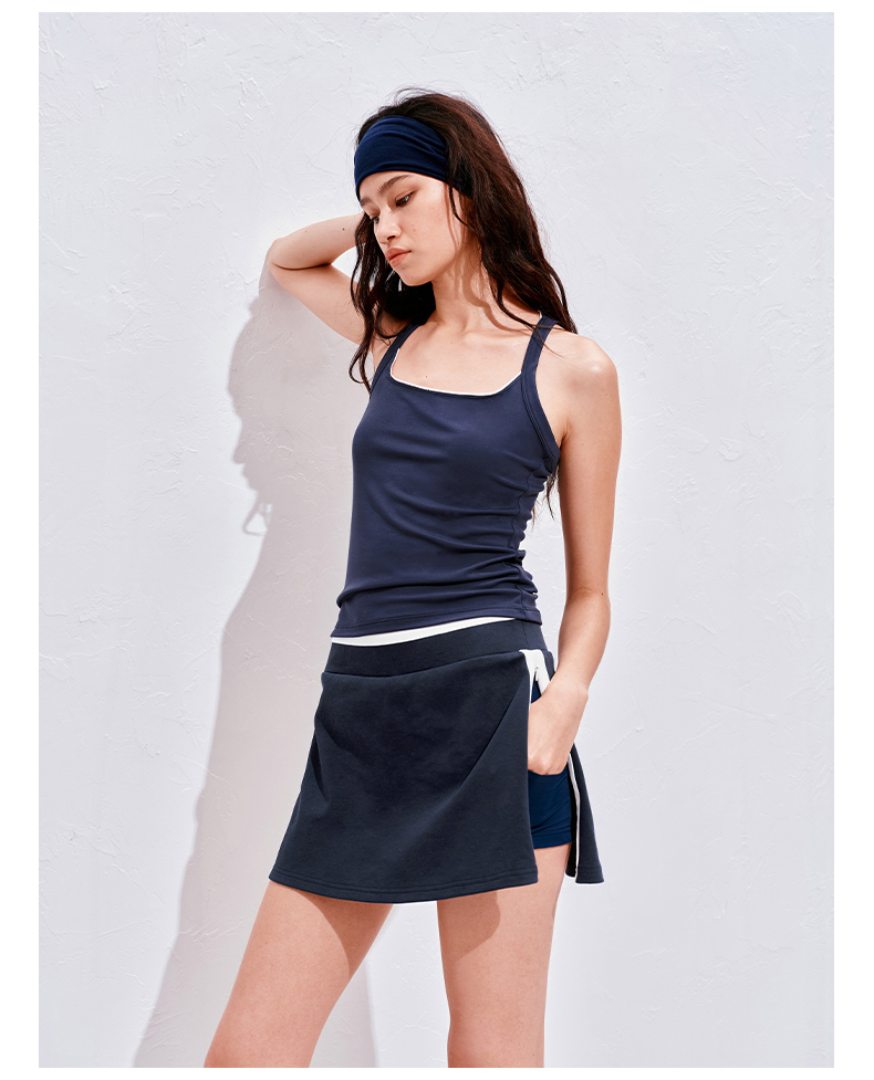 NUTHa字运动短裙半身裙撞色拉链开衩网球裙 深藏青/白色