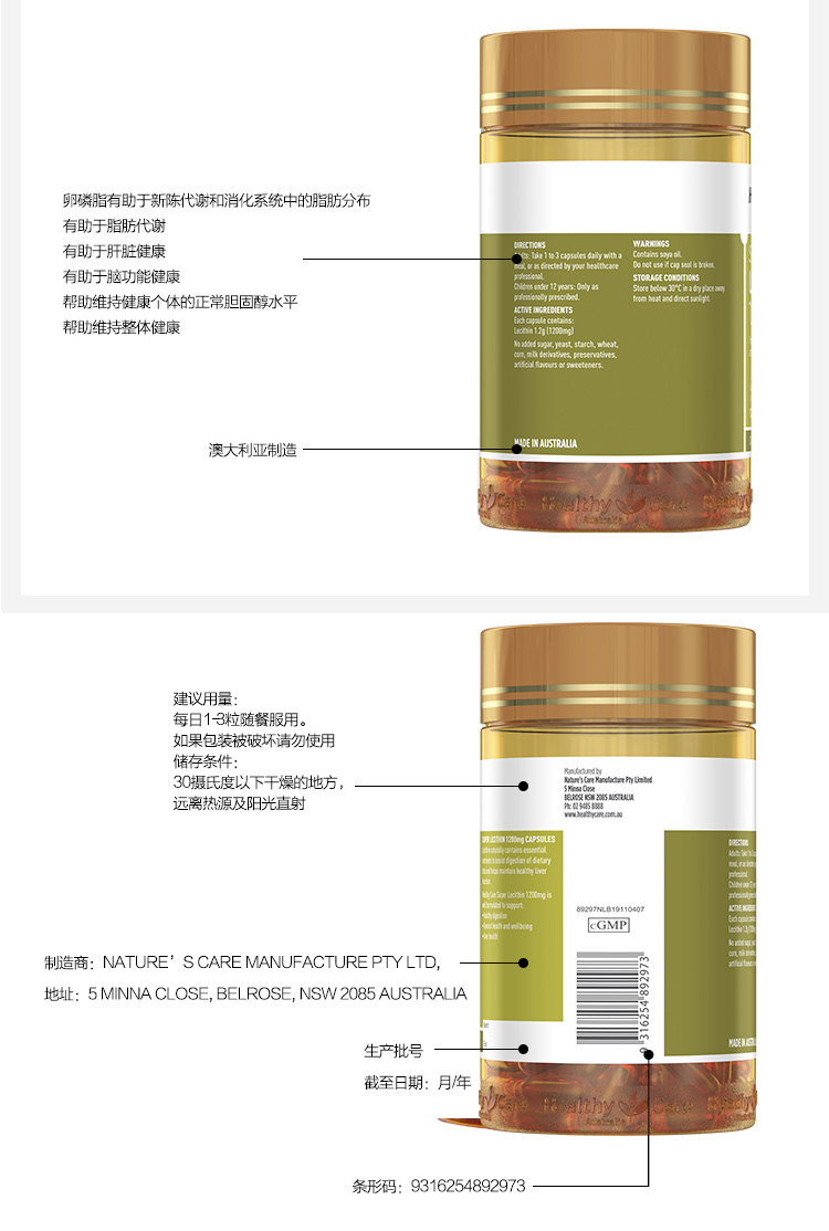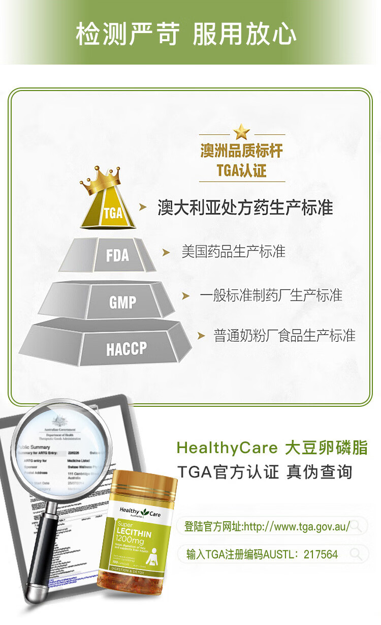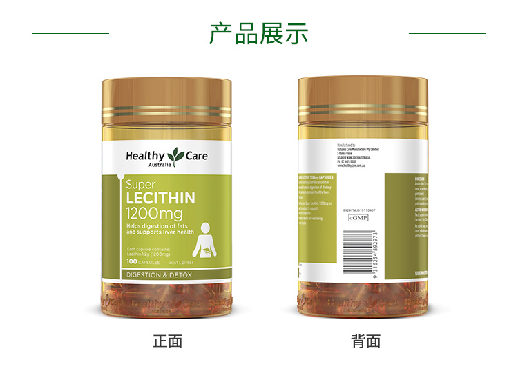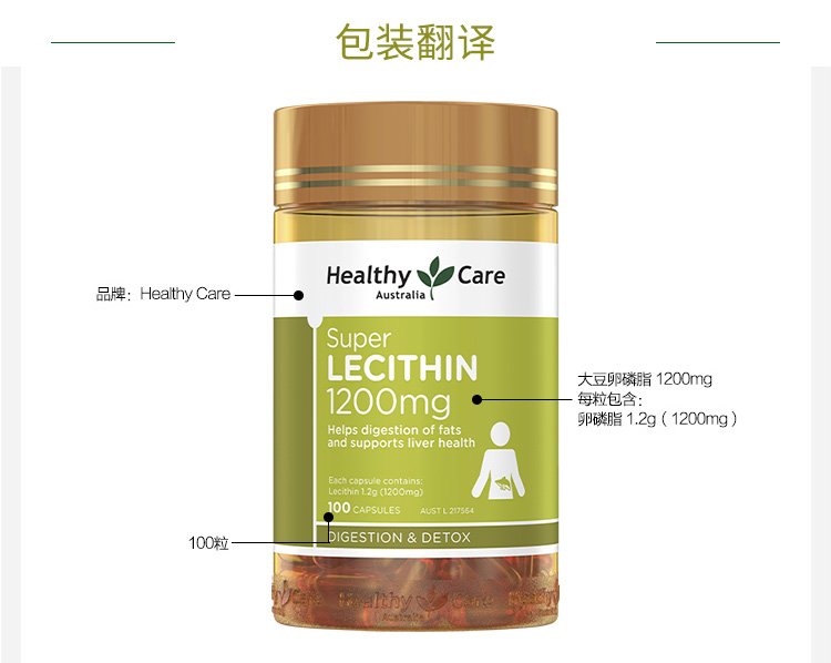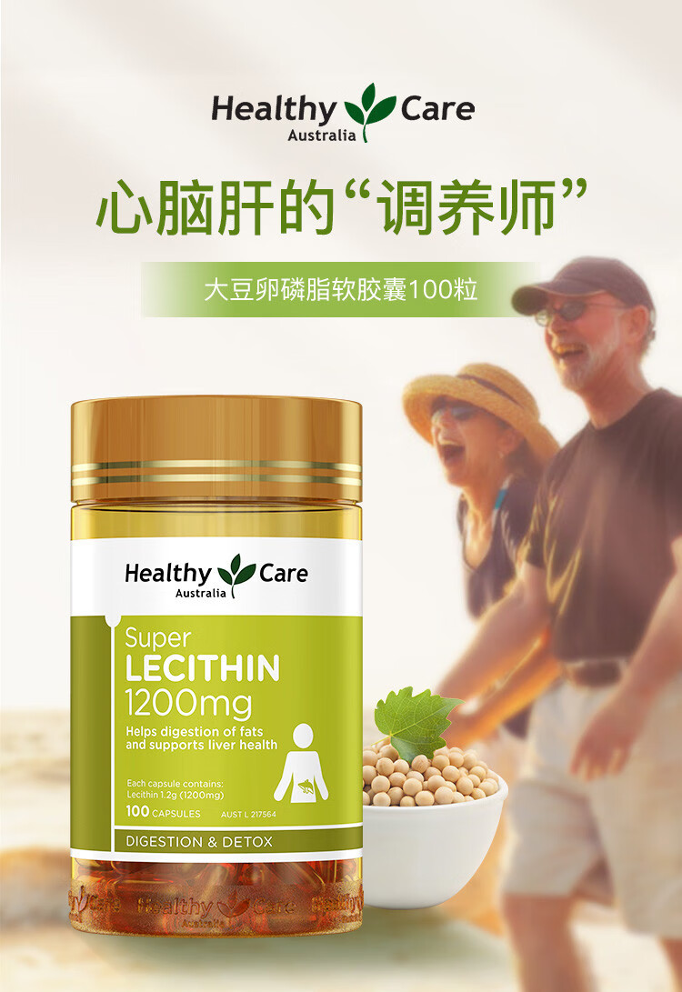 【保税仓】HealthyCare澳洲进口大豆卵磷脂软胶囊hc 软磷脂1200mg 100粒