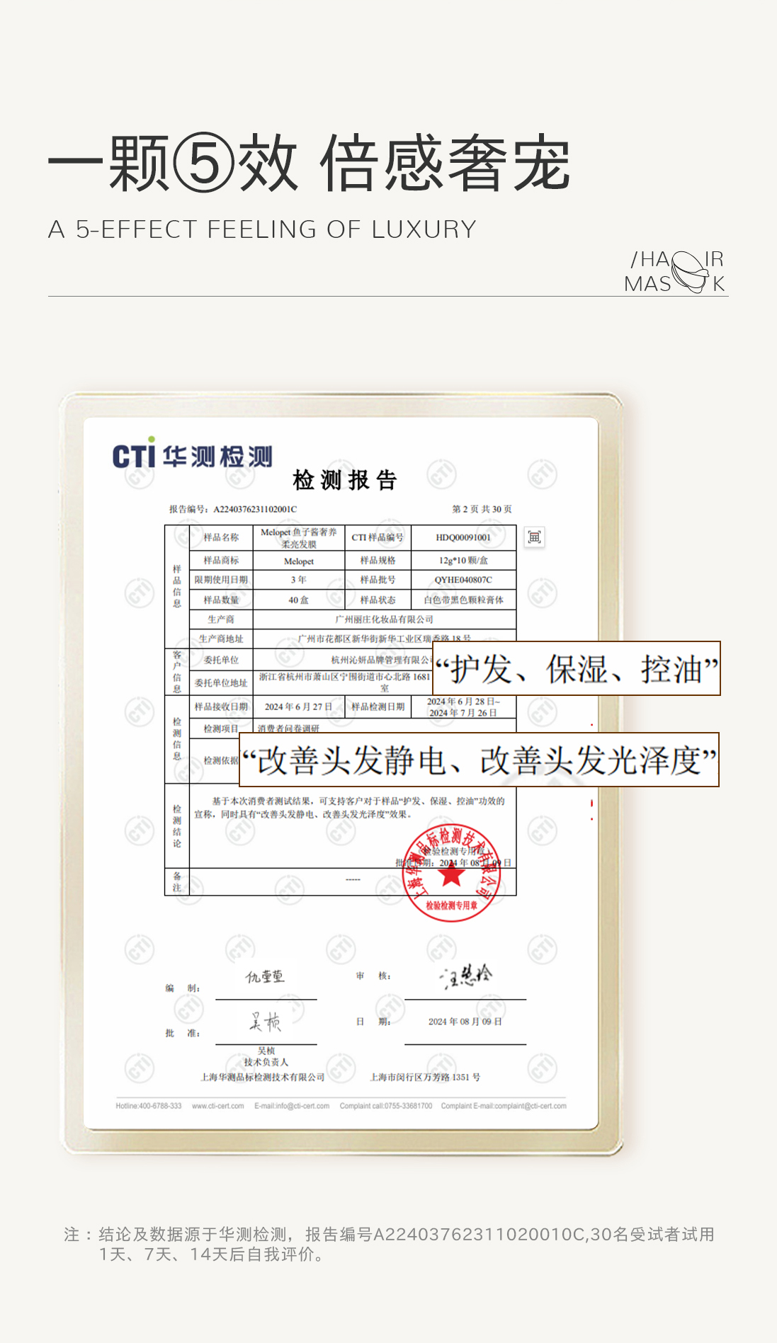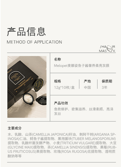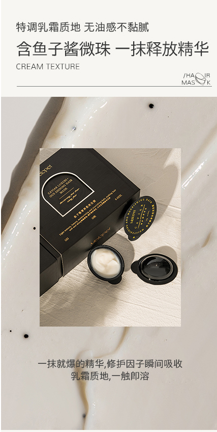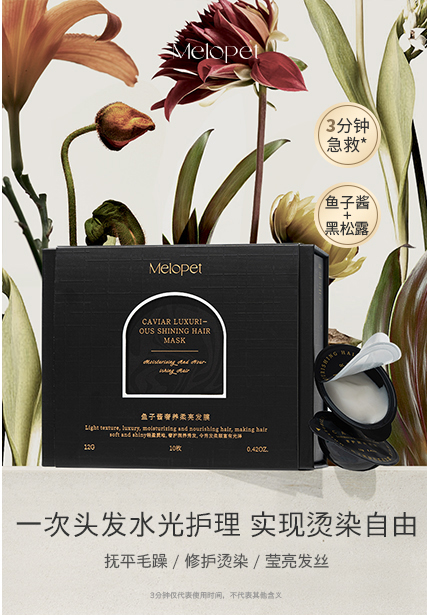Melopet鱼子酱发膜主要针对严重受损的发质,紧急修护