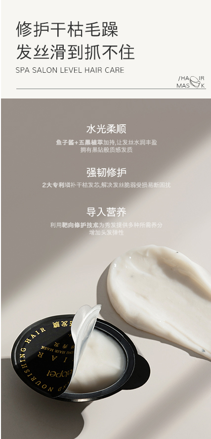 SPA级别的高级护理,能够真正修护发质的发膜,让头发一梳到底