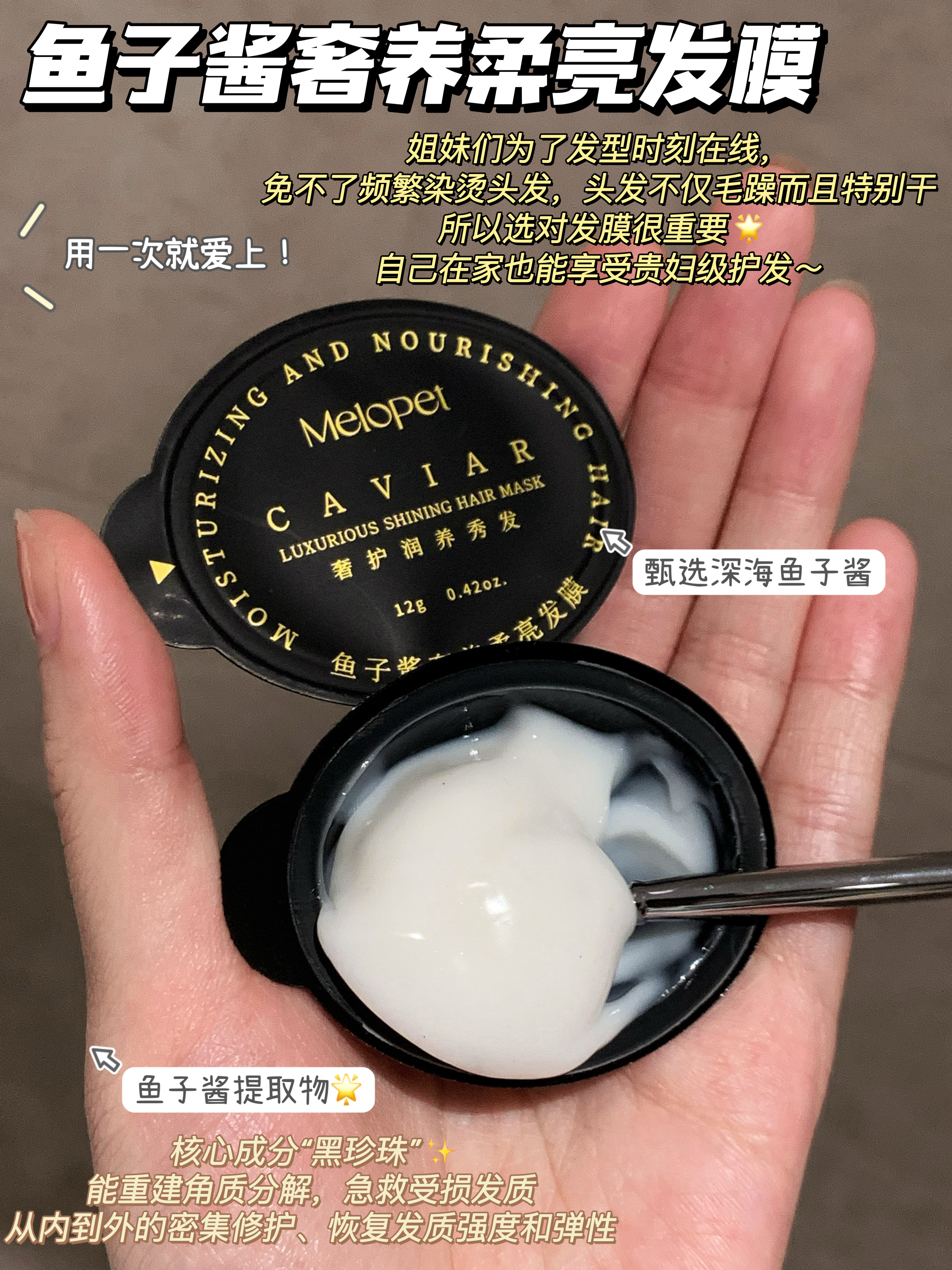 氛围感发丝神器【Melopet麦娜姿鱼子酱奢养柔亮发膜】💇♀️ 三分钟急救奢护!解决多种发丝问题〰️头发一夜回春