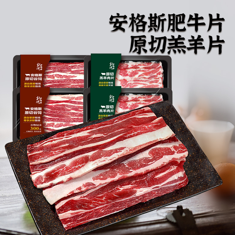 【北海湾】安格斯谷饲原切牛肉片/原切羔羊片 火锅烧烤组合6盒 冷冻