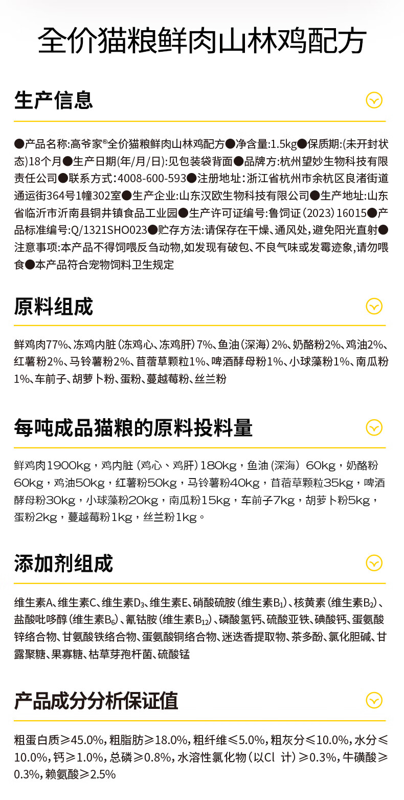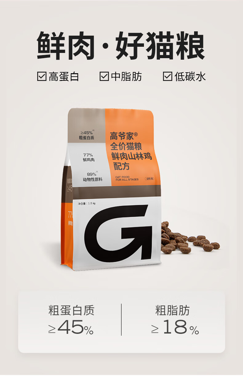 高爷家 鲜肉山林鸡款猫粮1.5kg