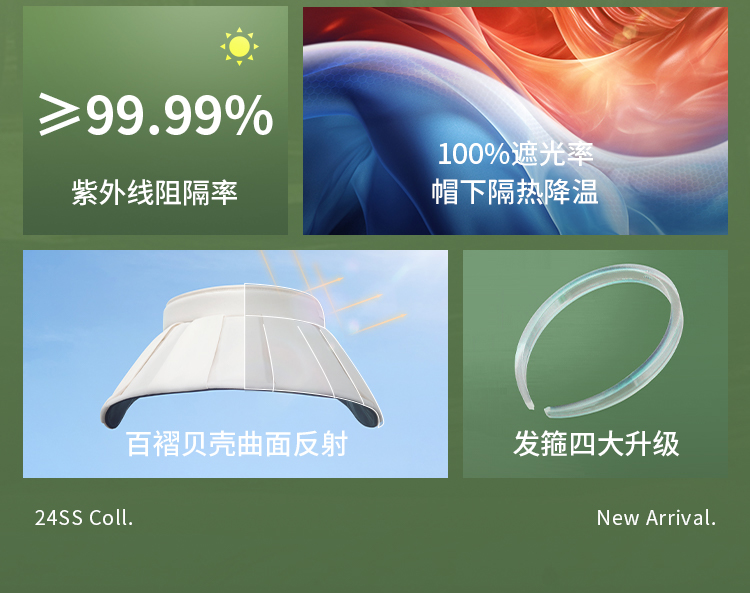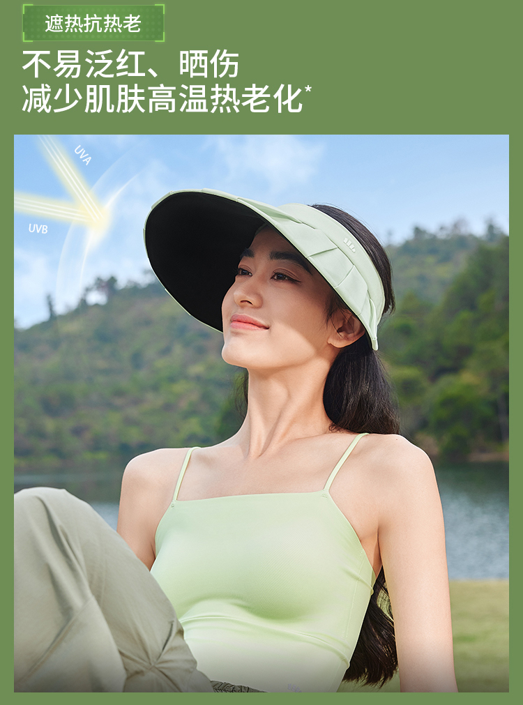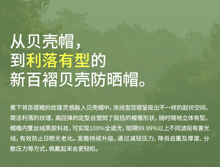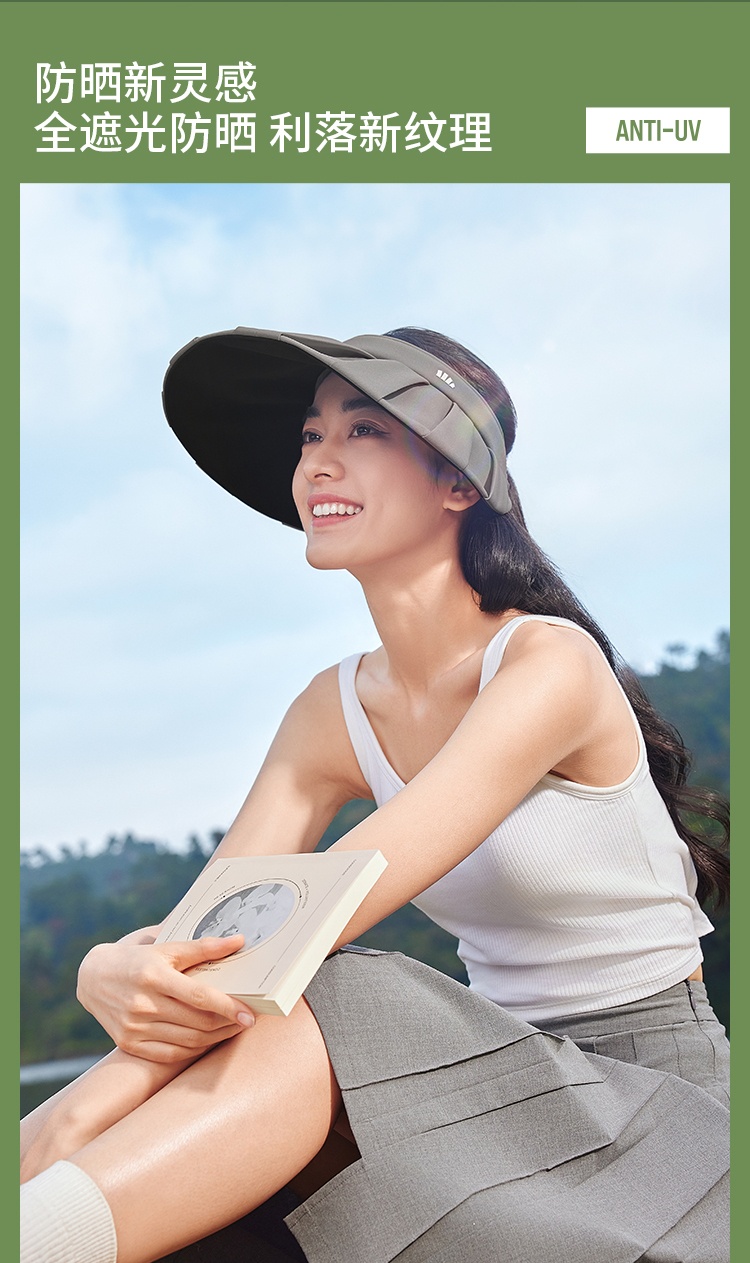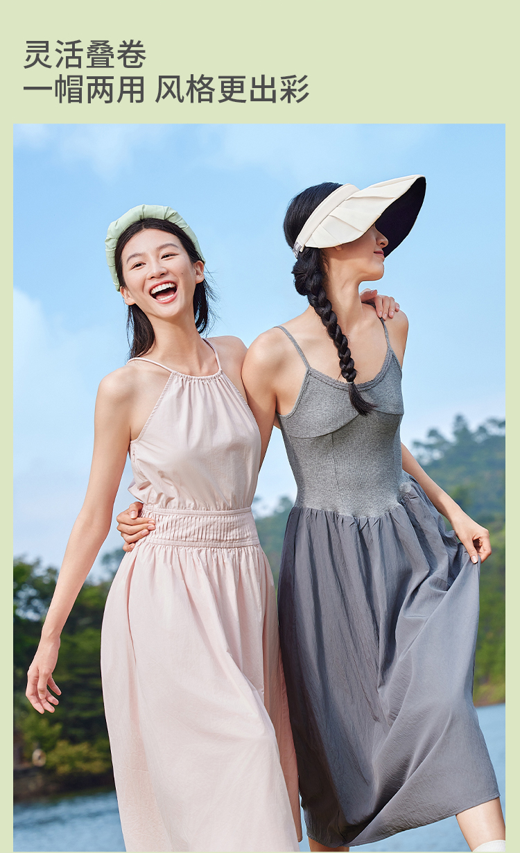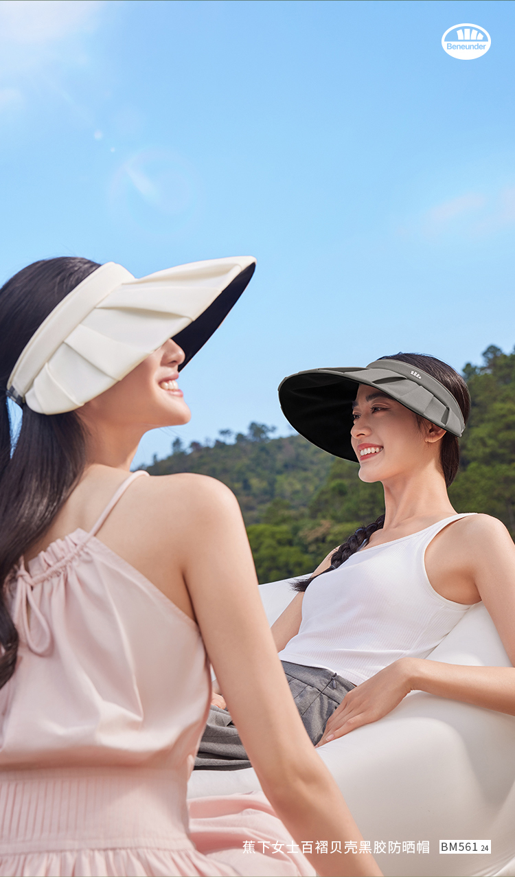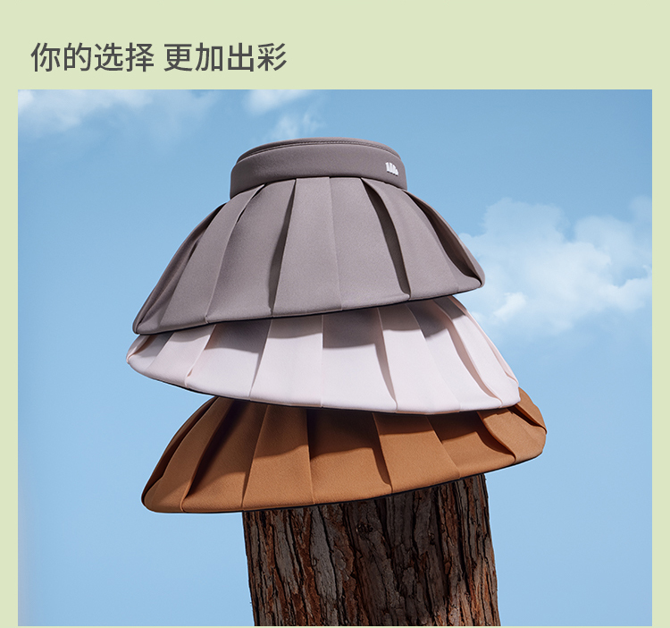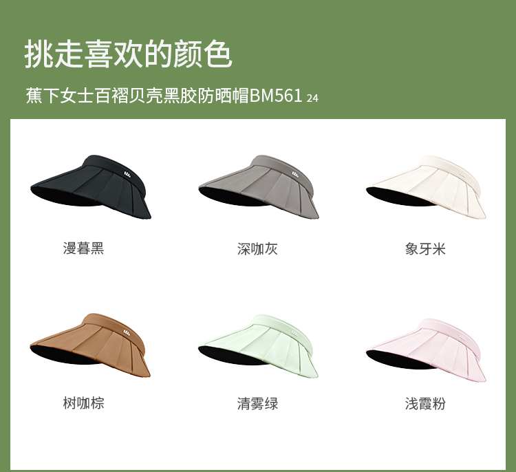 蕉下女士百褶贝壳黑胶防晒帽BM56124