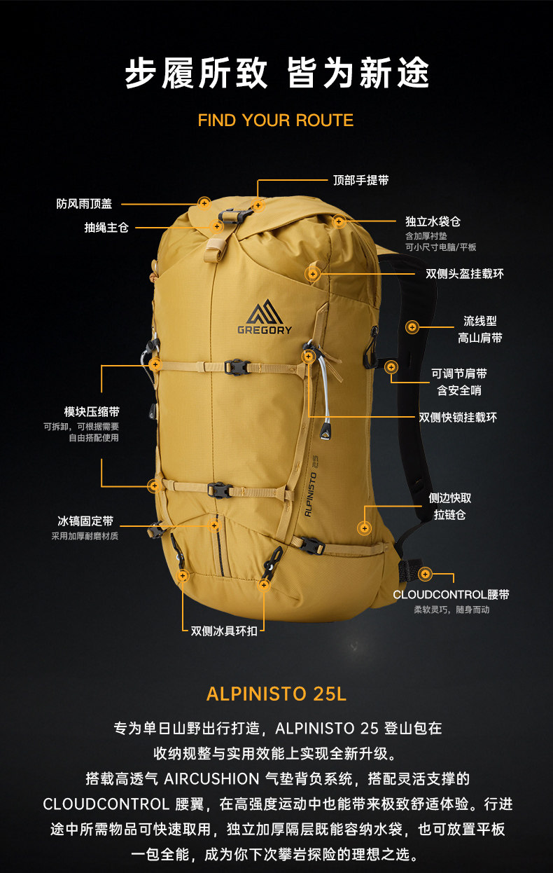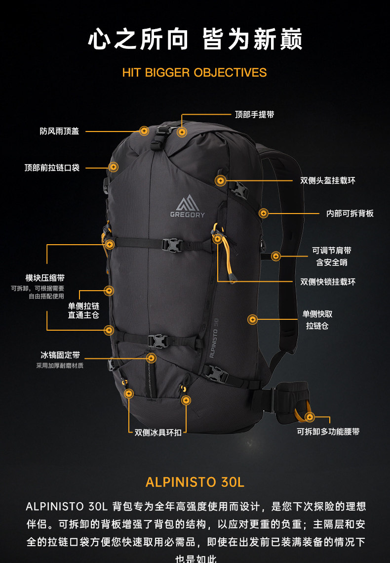 ALPINISTO山脊 GREGORY格里高利攀登攀岩滑雪专业户外徒步登山包