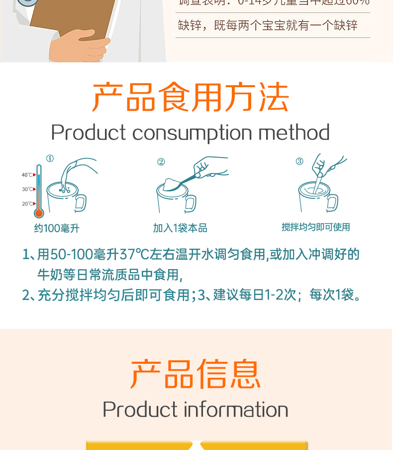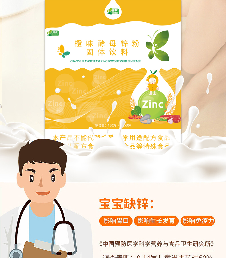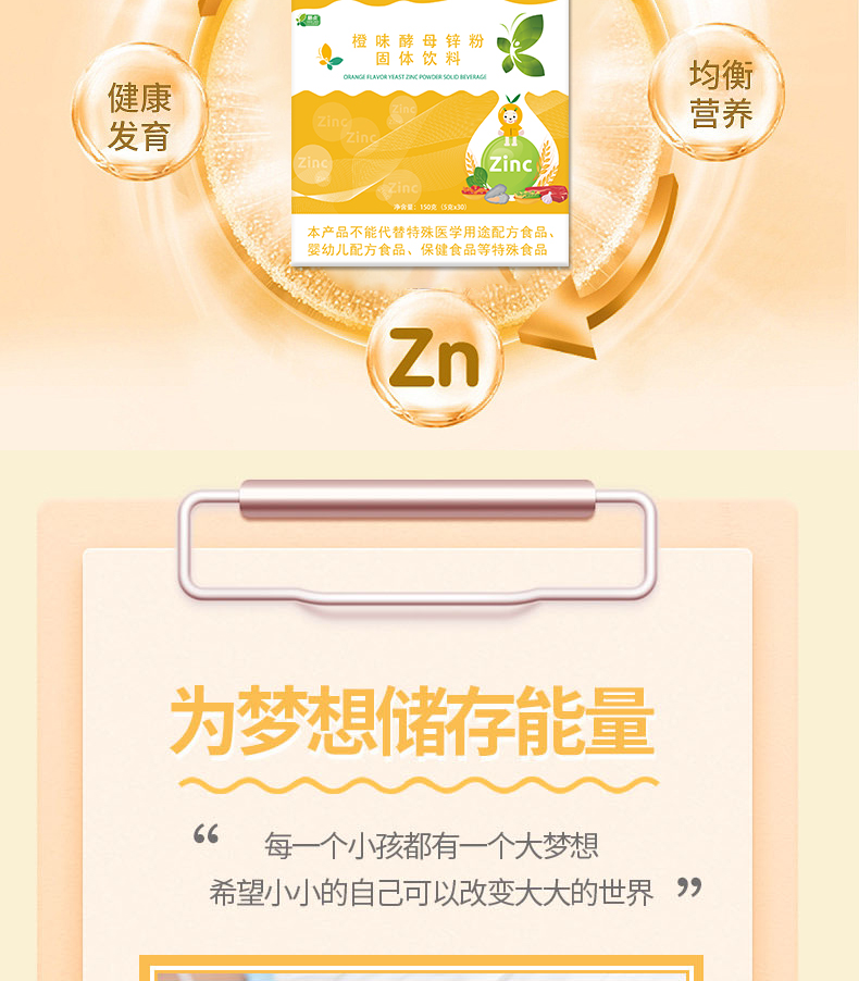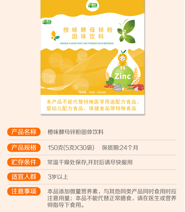 【一乐老师专属】橙味酵母锌粉5克*30袋 补锌 儿童老人最需要