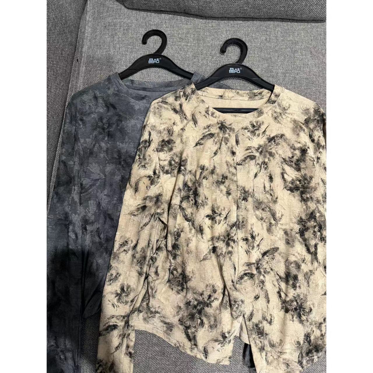 2024新品 佳佳同款【霜月长安】前开叉水墨印花设计感小上衣显瘦气质长袖时尚