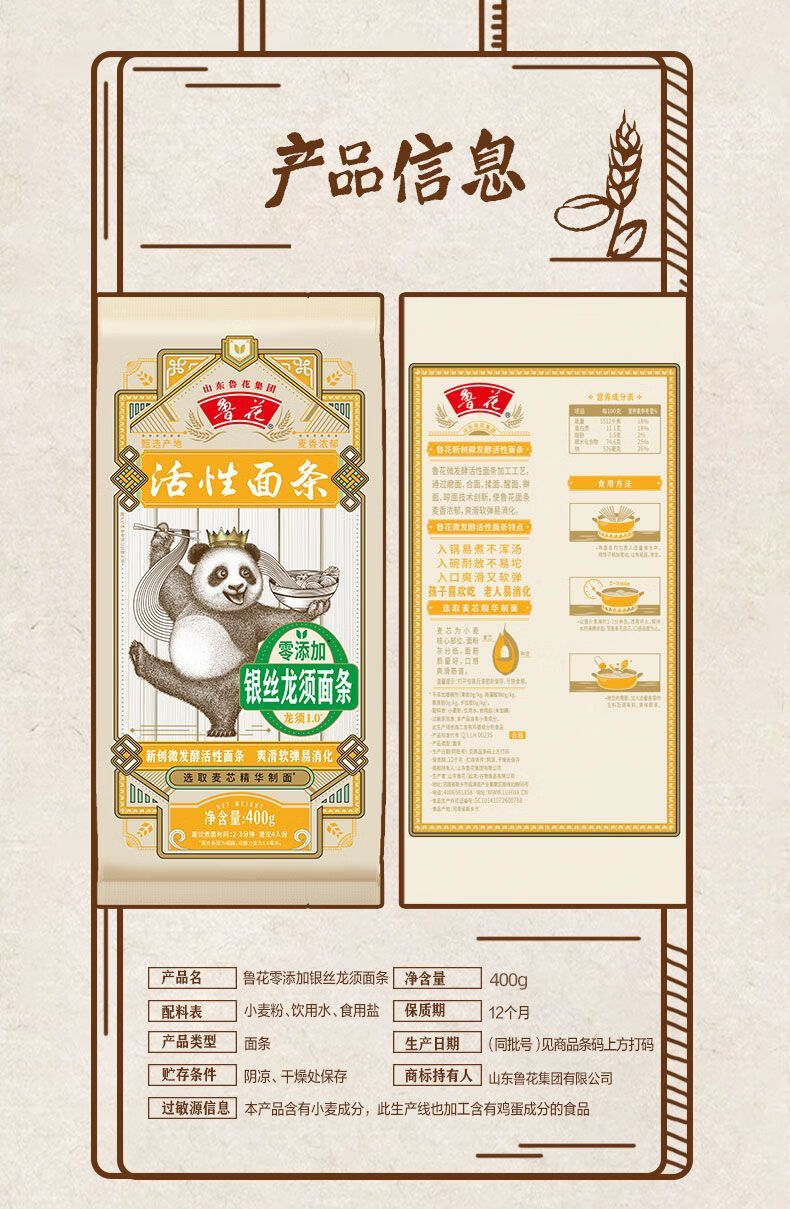 鲁花熊猫银丝龙须面条*2*400G