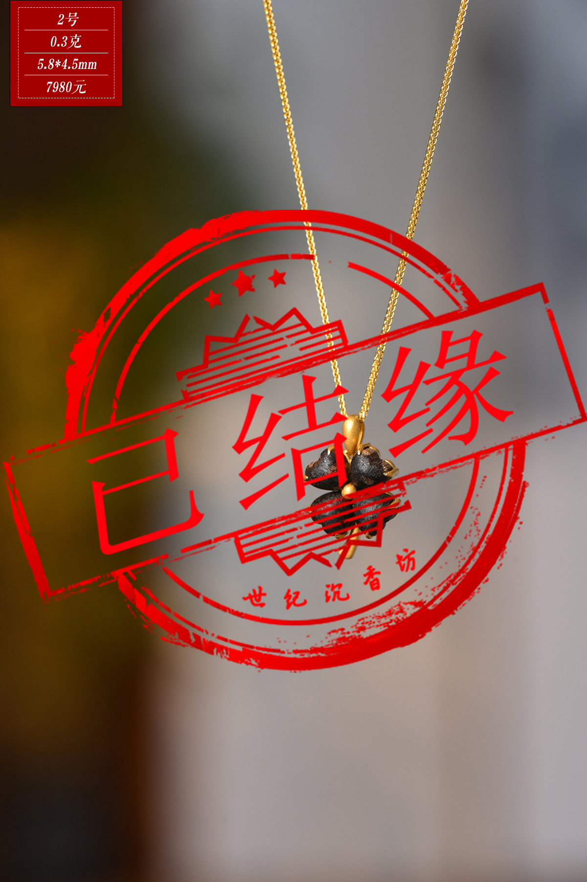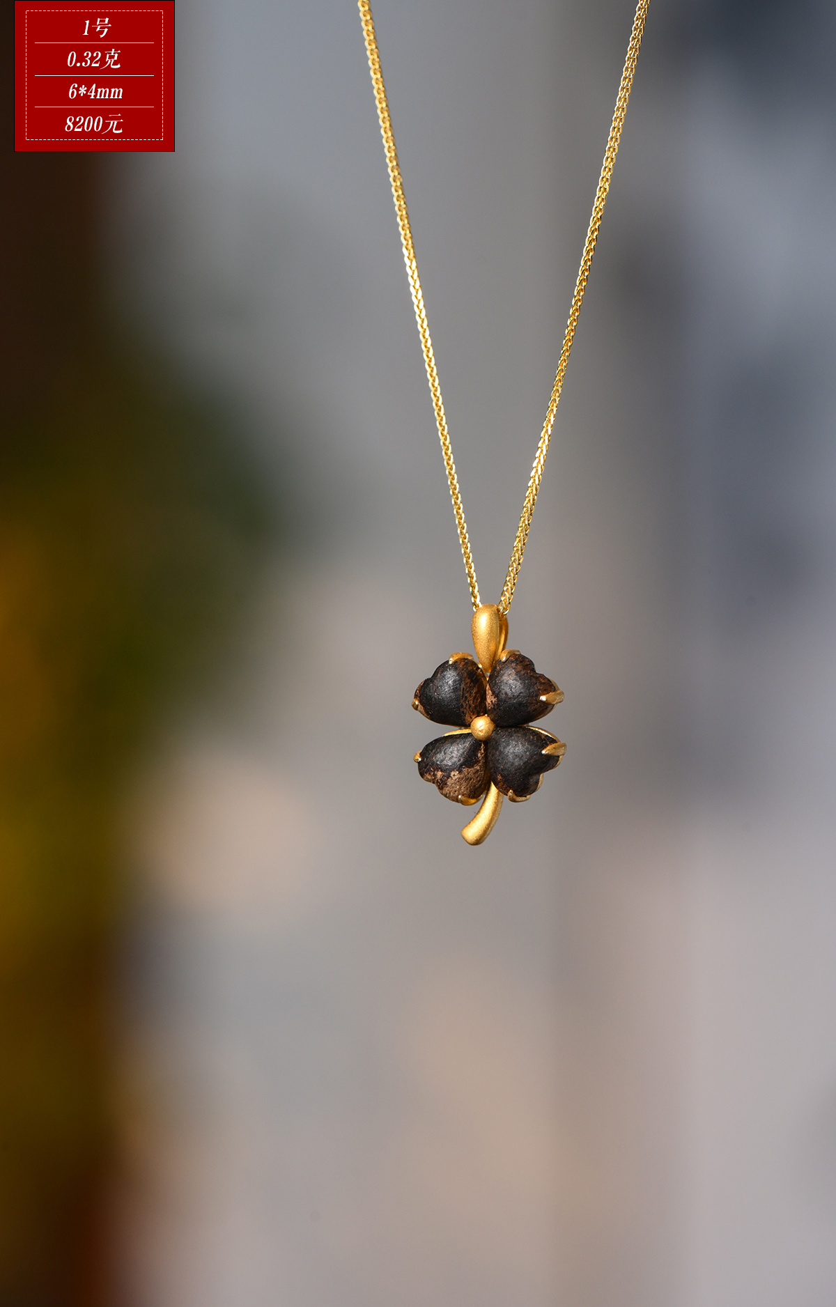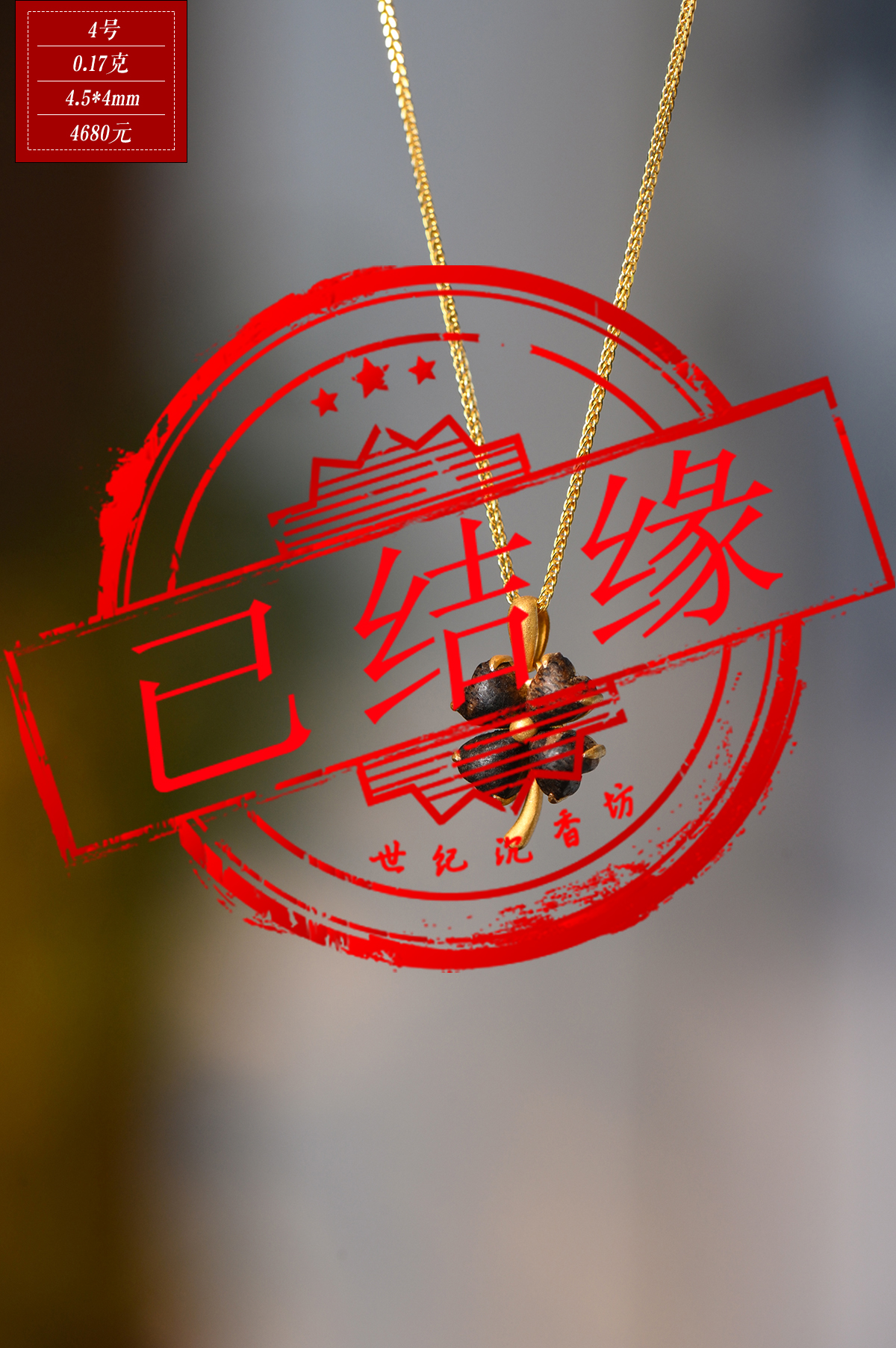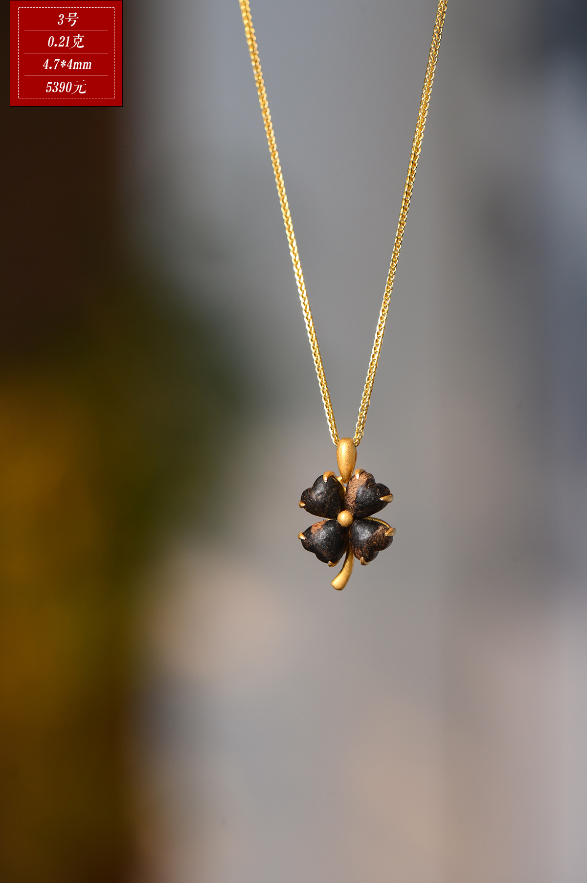 幸运·四叶草丨天然芽庄白奇楠包金吊坠 沉水级 SP11948
