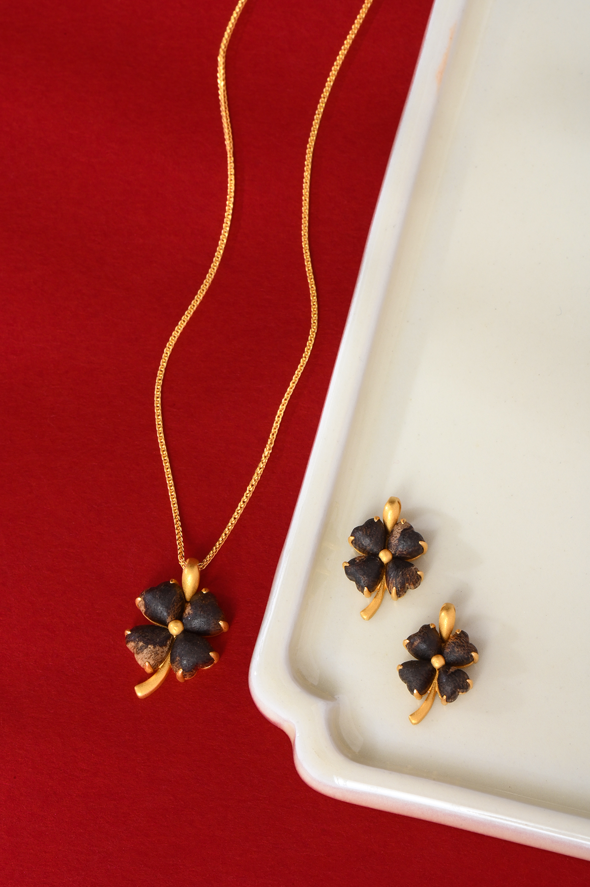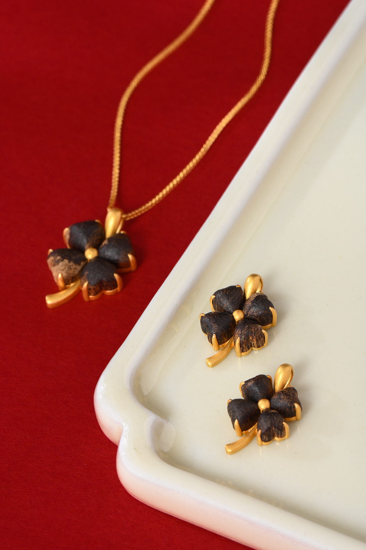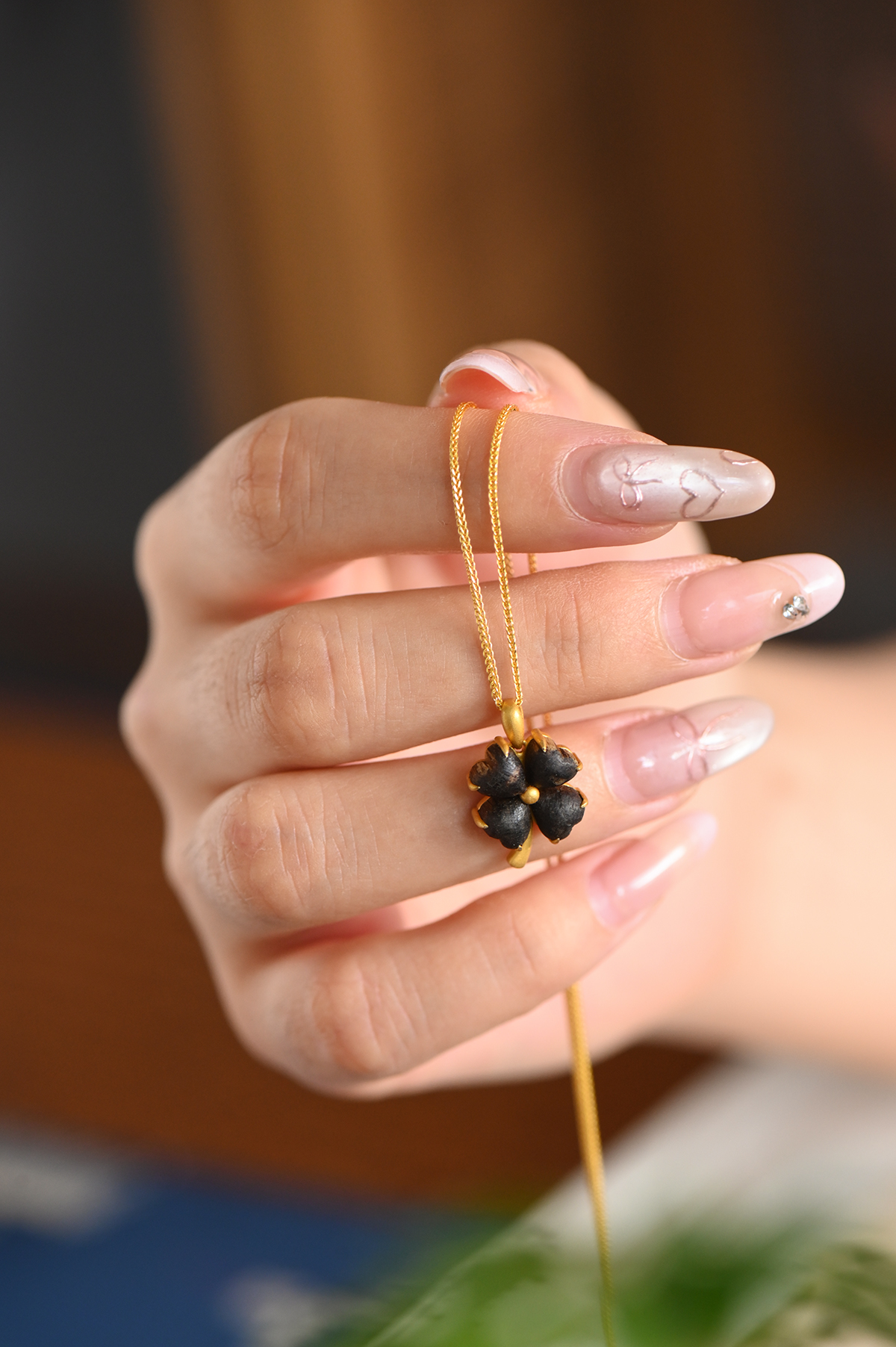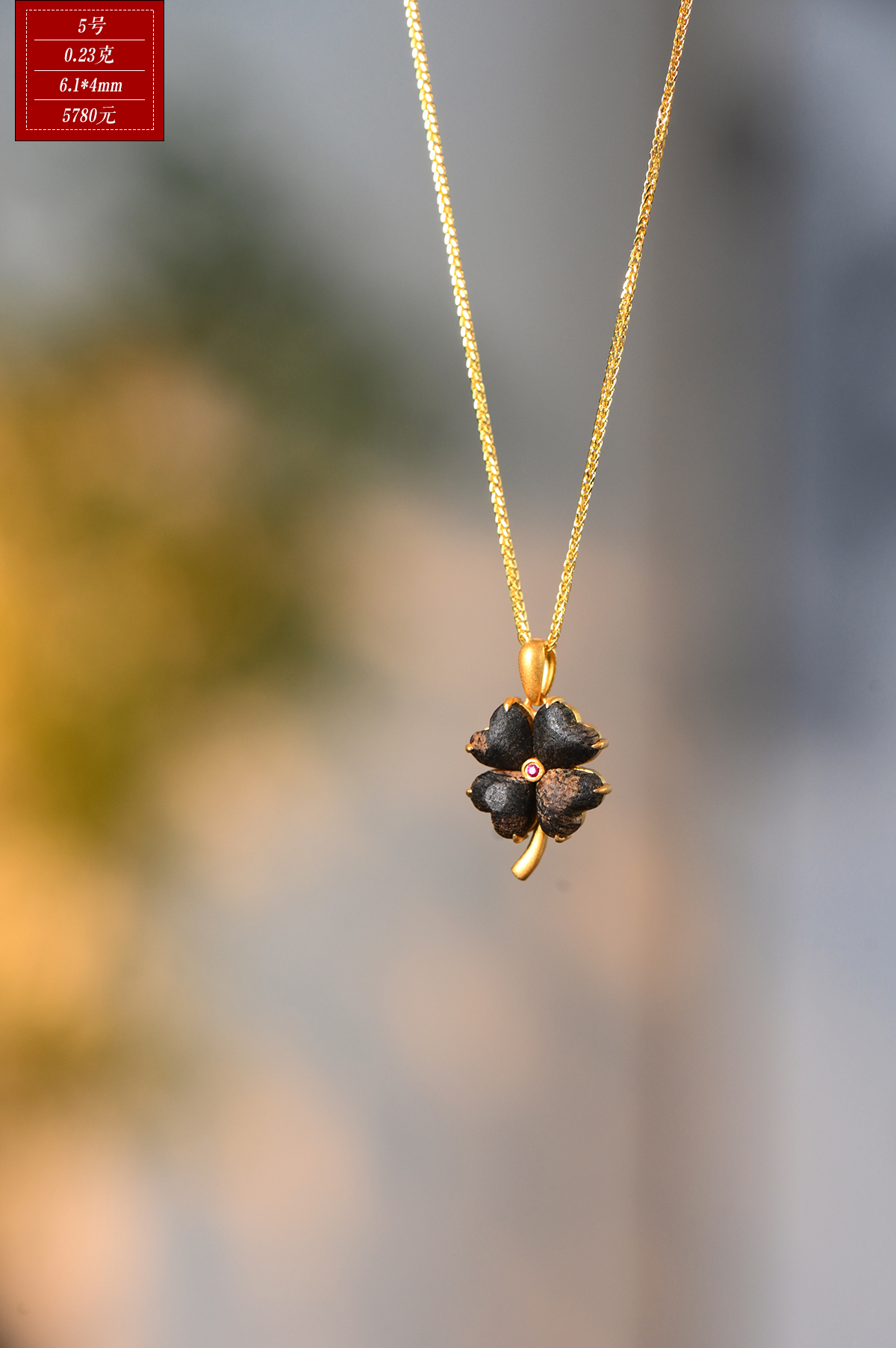 幸运·四叶草丨天然芽庄白奇楠包金吊坠 沉水级 SP11948