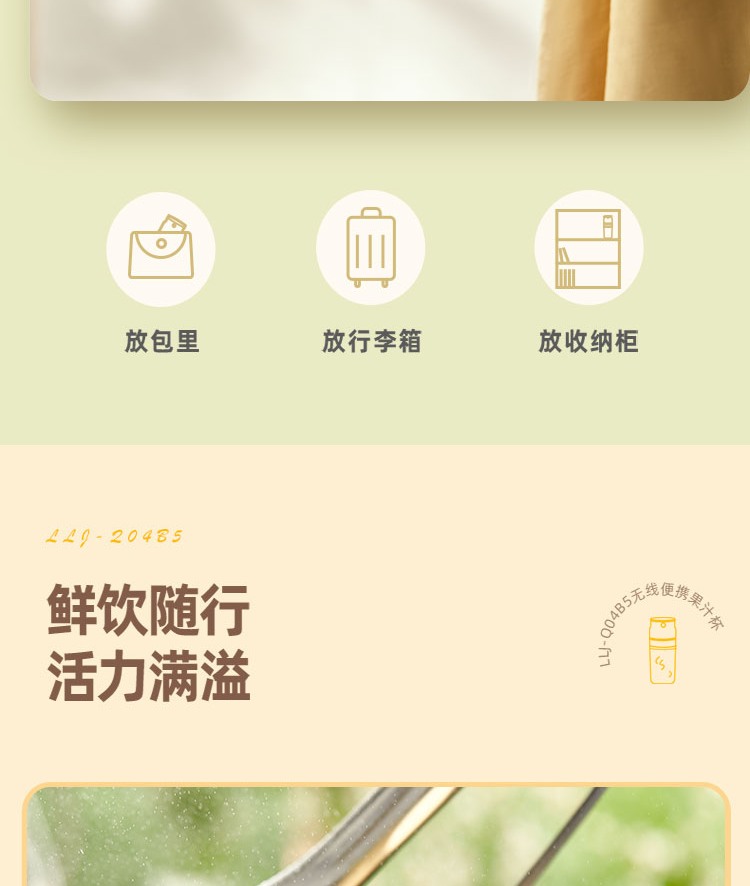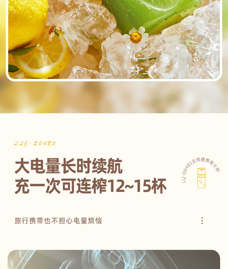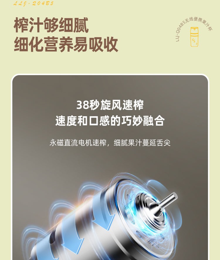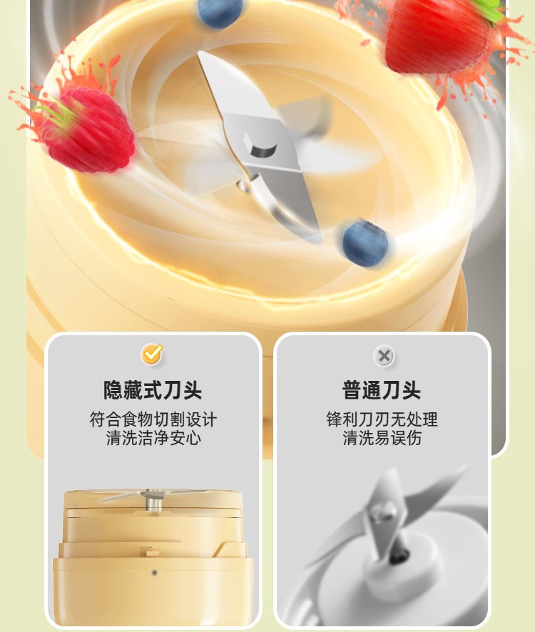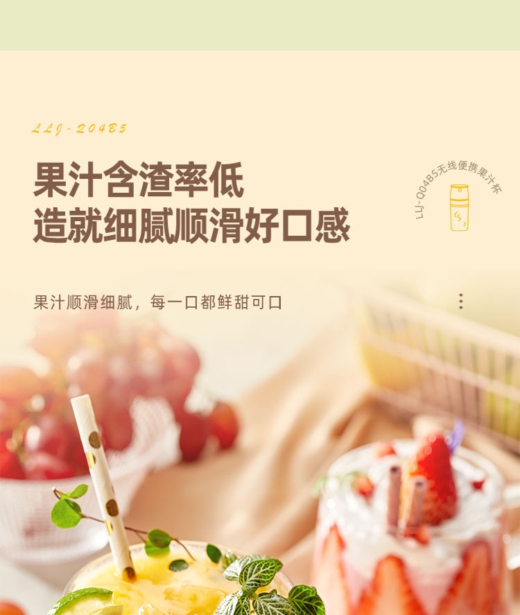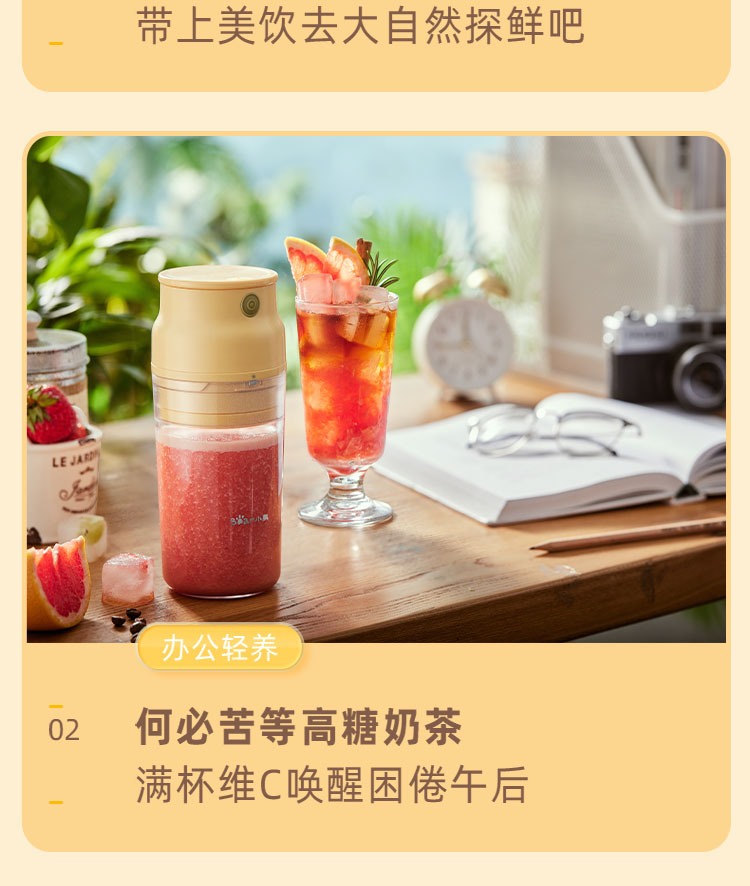 积分免费兑:小熊(Bear)便携式榨汁机家用水果小型充电迷你榨汁杯LLJ-Q04B5