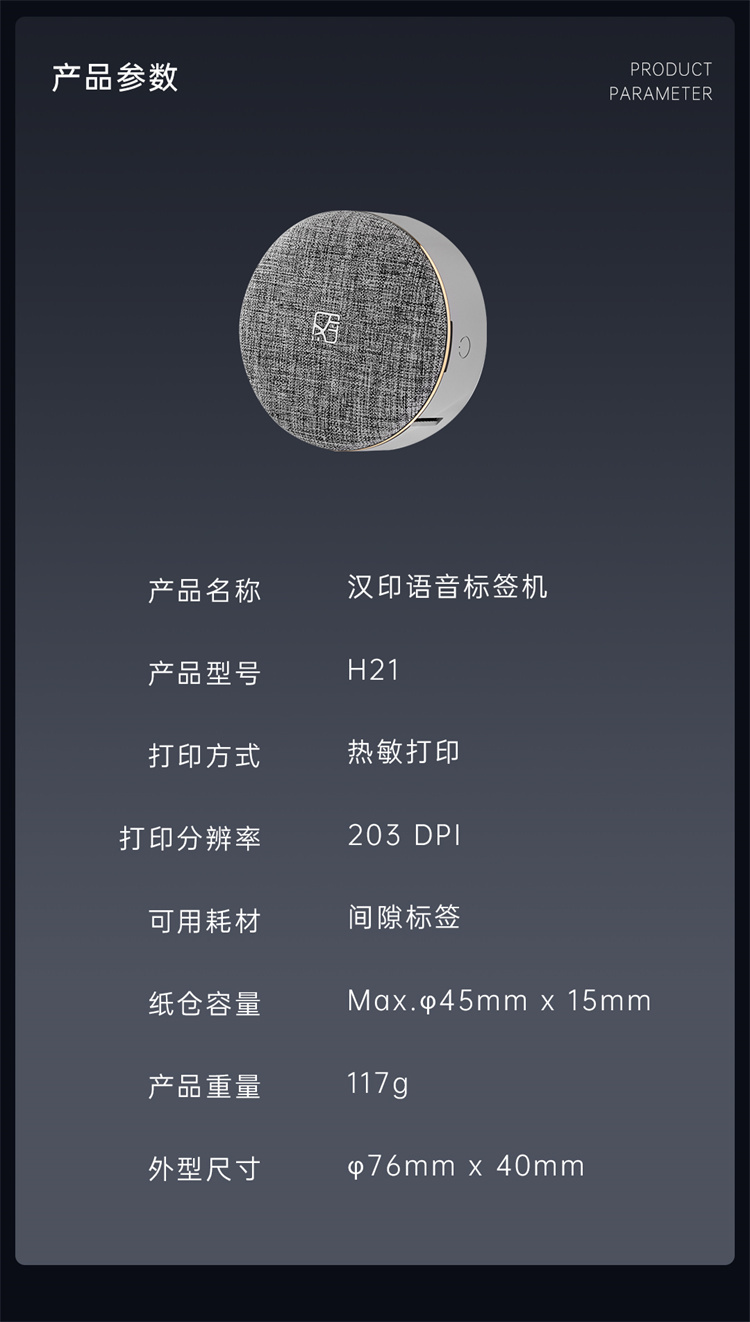 汉印 收纳便携语音标签打印机 H21(2卷标签纸)