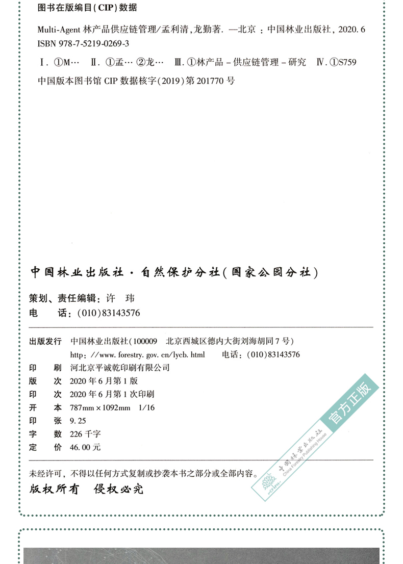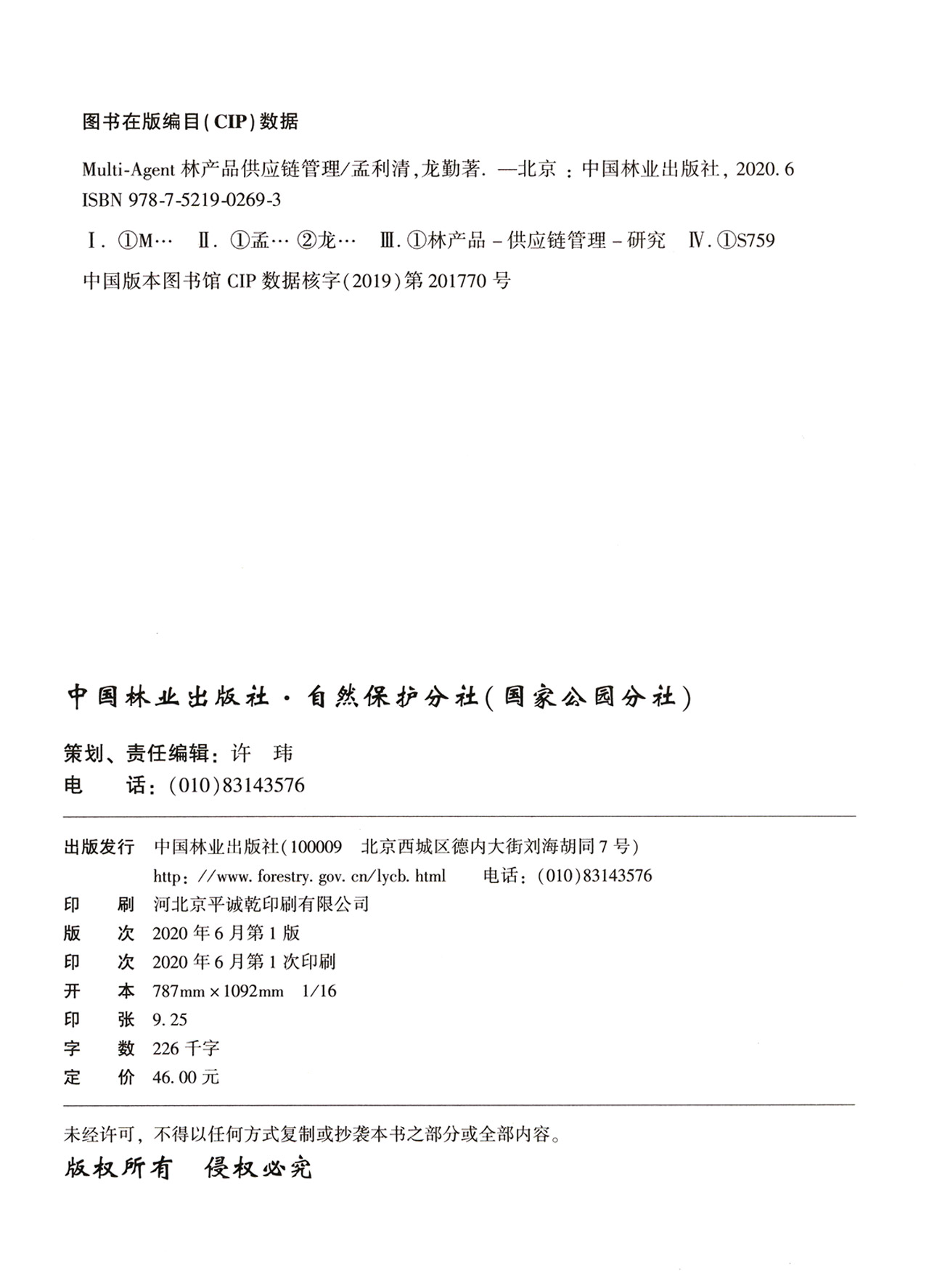 Multi-Agent林产品供应链管理 02693 孟利清 龙勤 中国林业出版社