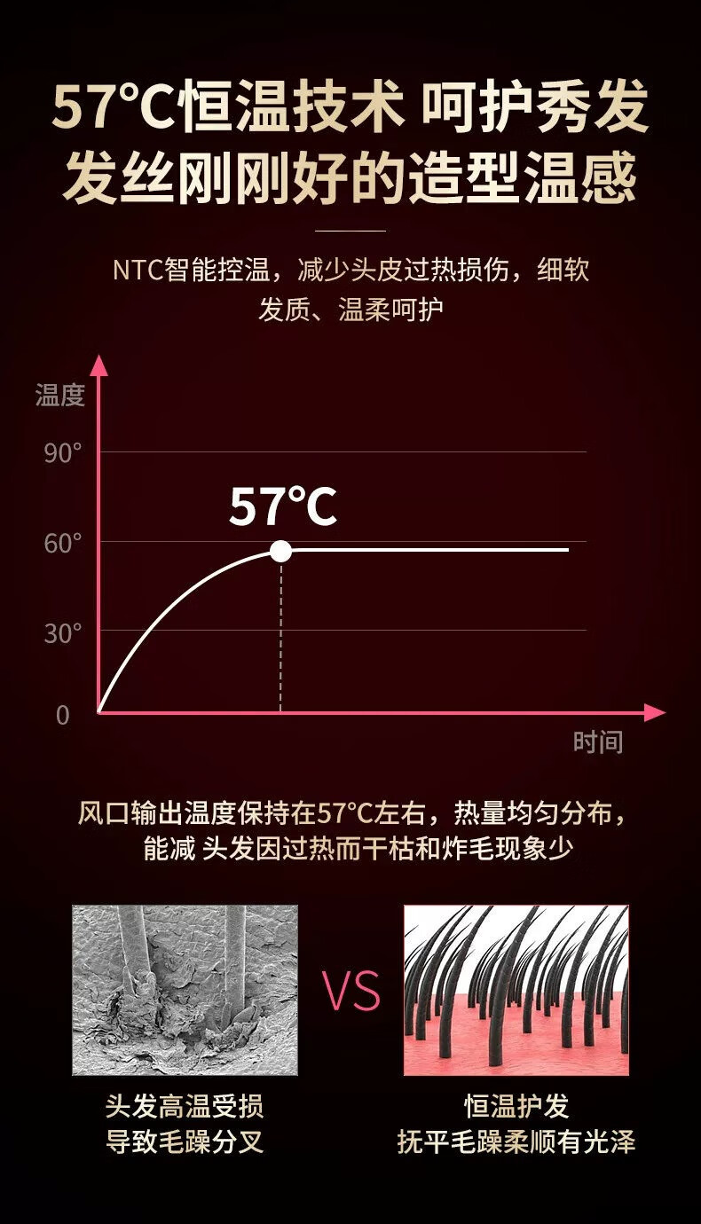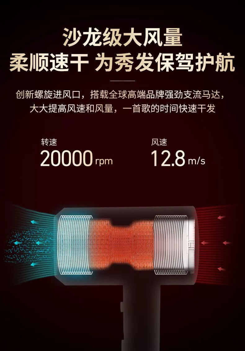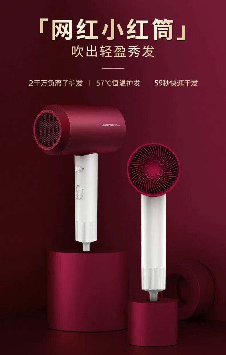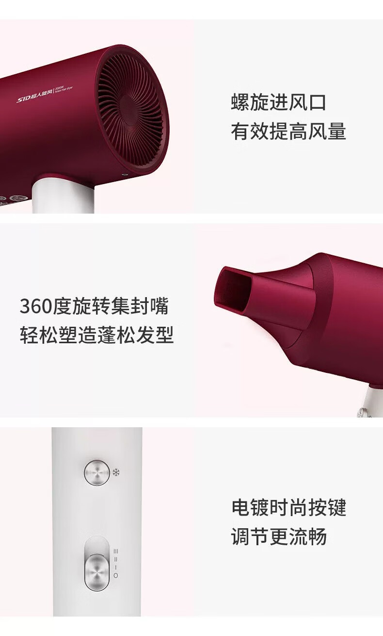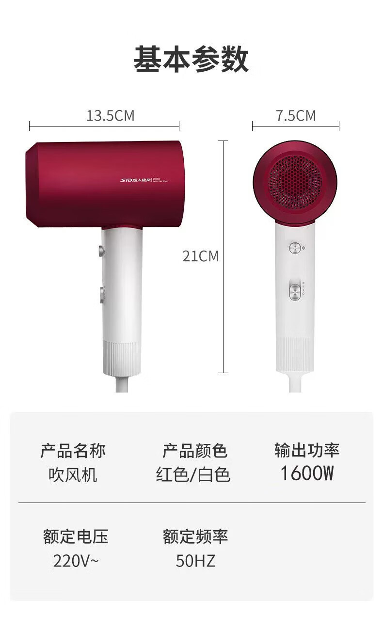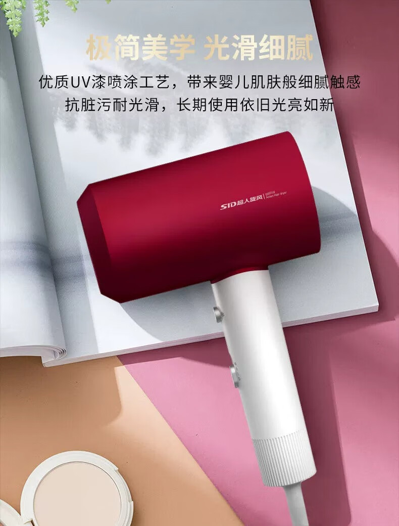 超人(SID)电吹风机家用大功率便携大风力负离子理发店吹风筒智能 RD7610红负离子1600W